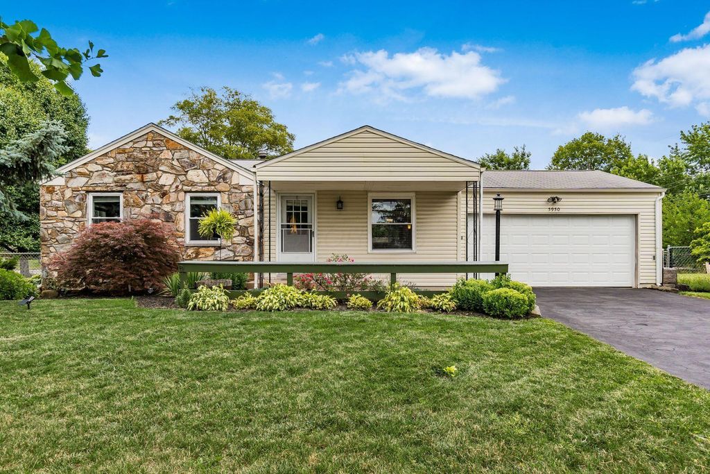 Welcome to 5950 Ambleside Dr., located at the gateway to the Devonshire community! This charming, well-maintained home boasts a blend of modern updates and timeless character, featuring beautiful original hardwood floors and elegant crown molding throughout. With 3 bedrooms, 1 full bath, and an additional 525 square feet of versatile basement space (not included in the listed square footage), this property offers endless possibilities for customization or immediate use. The home has undergone significant upgrades in the past five years. Recent updates include a new A/C unit (2023), water heater (2021), radon mitigation system (2020), electric panel (2020), updated kitchen cabinets, countertops, sinks, and dishwasher (all in 2020), and a newer garage door (2020). Additionally, newly installed solar panels (2023) make this property energy-efficient, with an average yearly energy cost of only $120 - most months you'll even receive credits from AEP for surplus energy! Situated on a generous corner lot, the outdoor space is just as inviting. The backyard features a newly installed partial fence and a privacy fence surrounding a covered patio, perfect for outdoor dining or entertaining. The property also includes a large attached two-car garage, a welcoming front porch, and thoughtfully designed landscaping that enhances its curb appeal. This home is move-in ready - don't miss this opportunity!