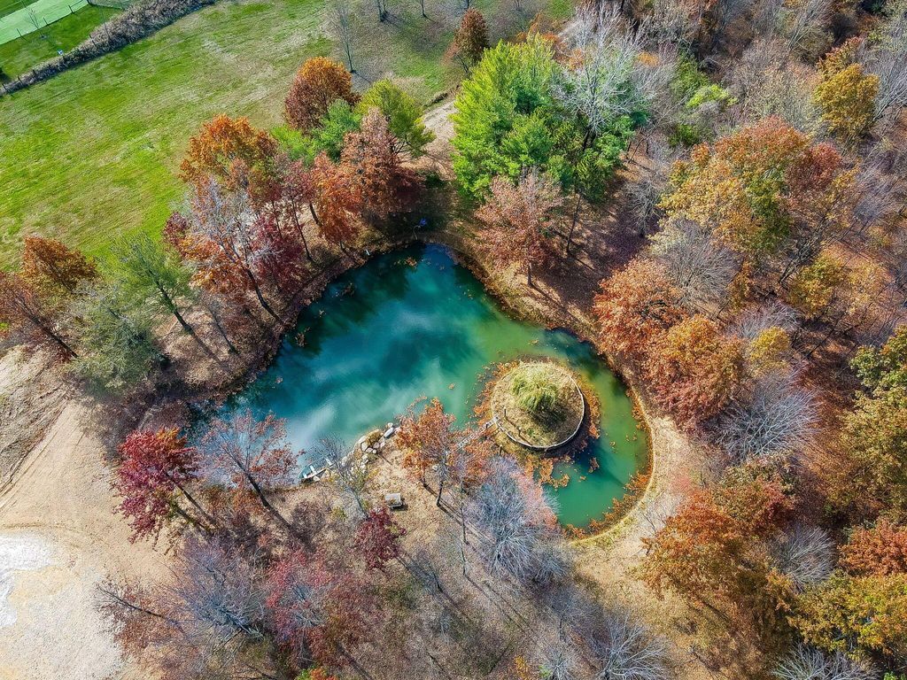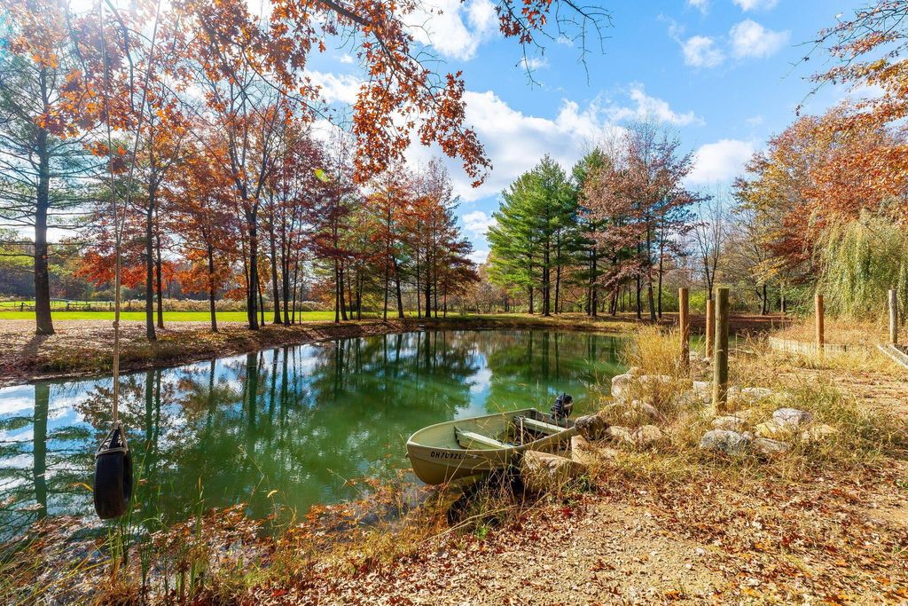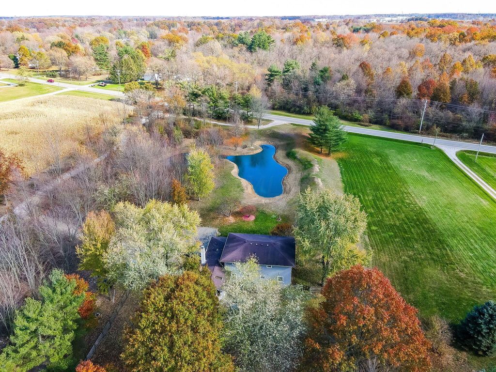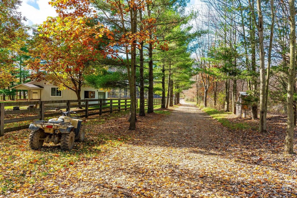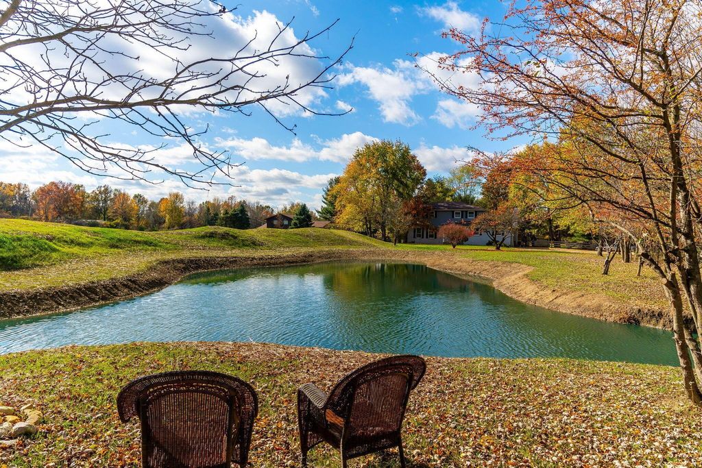 $100,000 Price Reduction! Motivated Seller. 12.218 acres in the City of New Albany offers a beautiful, serene, private setting with landscape berms, 2 ponds, a horseshoe drive, a mostly wooded lot, many mature trees, walking trails & a stream at the rear of the property. Nestled on the site is a 2 story, 4 bedroom, 2.5 bath home with 2,302 SF above grade with living, dining & family rooms, 4 season sunroom, eat-in kitchen, recreation/additional bedroom in the basement & attached 2 car garage and a 1.25-acre wood fenced rear lawn area off the rear of the house with a detached 720 SF (24'x30') outbuilding currently used as a small studio/game room with workshop/storage. Additionally, there is a separate 768 SF (24'x32') wood barn with loft. The lot is 343' x 1732' and backs up to New Albany Links golf course.