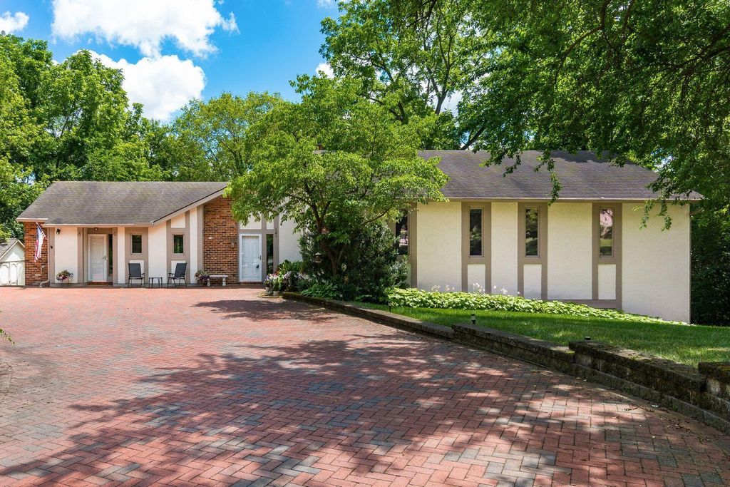 Perched high on a hill located on a majestic 1 acre lot you'll find this sharp mid century modern ranch home with a full walk-out lower level! This one owner home has been lovingly maintained and offers a versatile floor plan that would be perfect for multi-generational living. The first floor boasts many entertaining spaces, offering an expansive living room with multiple seating areas, dining room that comfortably seats 10+ and cozy library with built-ins. You'll love the exposed brick, custom built-ins, and lots of natural light with scenic views outside every window. The home offers 6 bedrooms; any of which could be used as home office(s), a workout area or flex space. The walk-out lower level is huge and includes a large family room, kitchenette, 3 beds, 2 baths, laundry & storage!
