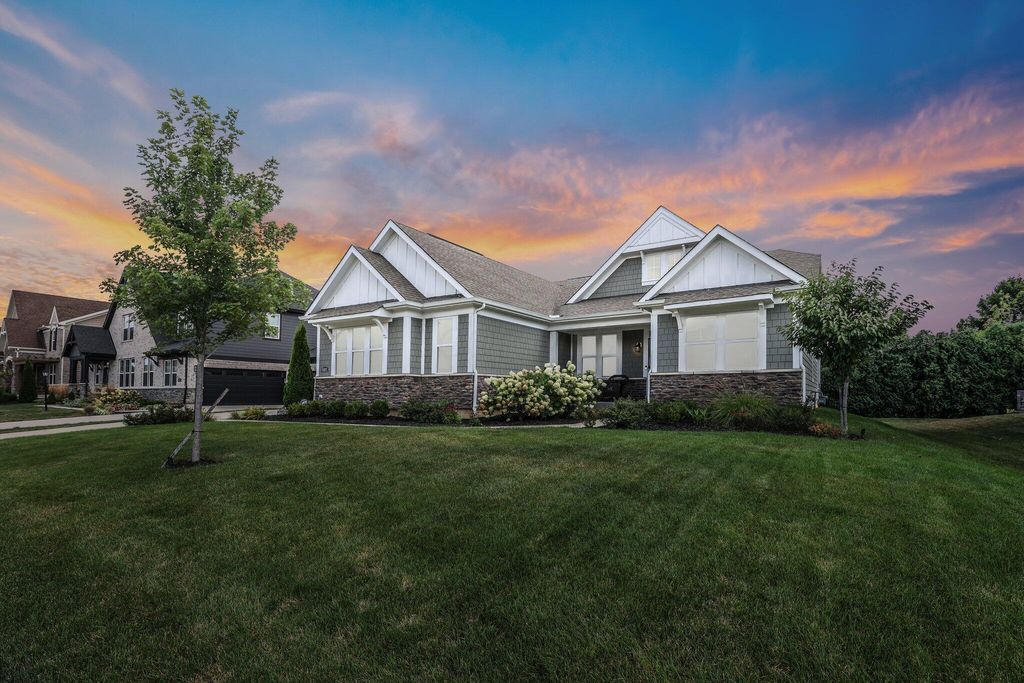 Welcome to this spacious home with 2234 sq feet on the main level. This home features 9ft first-floor ceilings, a private first-floor study with French doors, & formal dining room. The island kitchen is equipped w/stainless steel appliances, upgraded multi-height maple cabinetry, granite countertops, pantry, & morning room that opens to a 12x10 covered patio. The family room, with its gas fireplace & stone surround, creates warm & inviting atmosphere. The owner's suite boasts a tray ceiling, an en suite bathroom w/double bowl vanity, huge dual-head shower, & large walk-in closet. The first-floor laundry adds convenience, & the 3-bay garage offers ample storage space. The finished basement adds an additional 1900 sq ft of living space, featuring egress window & full bath. Enjoy fenced yard