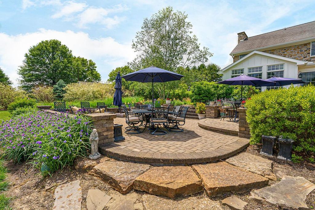 INCREDIBLE PRICE ADJUSTMENT! Nestled on over three acres of meticulously landscaped grounds, this quintessential stone farmhouse draws inspiration from the timeless charm of historic Eastern Pennsylvania residences. Inside, gorgeous hickory floors and crisp white painted woodwork create an inviting ambiance throughout. The exquisite, light-filled kitchen boasts incredible garden views and features a high-end appliance package, custom white painted cabinetry with striking dark gray accents on the two islands, all seamlessly flowing into the dining area, sunroom, and living room. Retreat to the first-floor primary suite, complete with a floor-to-ceiling granite surround fireplace and 2 dressing rooms, one that has recently been added. Convenience is key with two home offices, one of which offers a wet bar and full bath. The beautifully finished walk-out lower level provides an expansive kitchen/bar area, a game room, an entertainment space, and a full guest suite. Truly one of a kind in countless ways.
