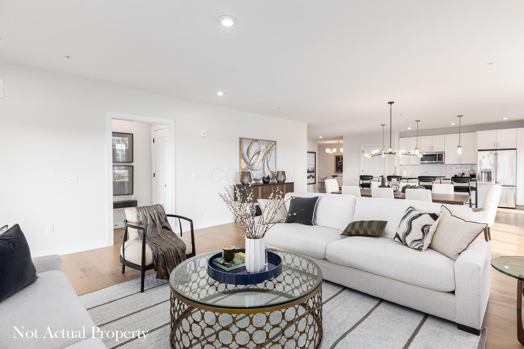 Builder credit of up to 3% of purchase price! 2nd floor Unit 201- HighPointe at Little Turtle offers premiere luxury living amidst the lush setting of the Little Turtle Golf Club. This 2nd floor condo offers open floor plan w/ 9-foot ceilings & oversized windows w/ magnificent views. Gourmet Kitchen includes upgraded stainless steel appliances, oversized center island, contemporary cabinetry w/ quartz countertops, massive walk-in pantry & hardwood floors throughout. Unit has 3 bedrooms & 2.5 baths, including primary bedroom w/ upgraded flooring, luxurious bathroom w/ floor to ceiling tile & rain shower-head, & private office space. This condo includes an impressive private balcony, w/ stunning sunsets & sweeping views of Columbus, Blendon Woods Metro Park, & Little Turtle Golf Course. 2 below ground, secure parking spaces included.