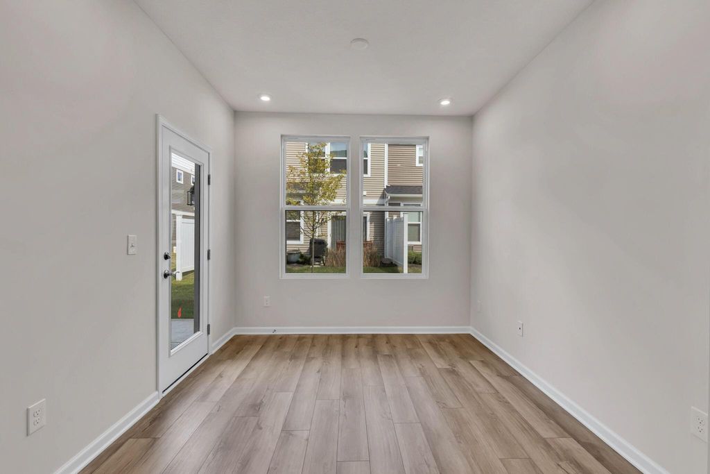 Beautiful, new construction, END UNIT, 2 story townhome with over 2,000 square feet ready for move in NOW! 3 bed, 2.5 bath, spacious floor plan including a kitchen island with granite counters and single bowl SS sink, SS appliances, LVT flooring and upgraded carpet throughout. Additional living space included with first floor heated sunroom as well as a concrete patio out back, perfect for both entertaining or relaxing. Upstairs, the primary suite boasts an additional sitting room/den, walk in shower, dual sinks with quartz counters and a walk in closet. 2 additional bedrooms, 1 full bath and laundry complete the upper level.