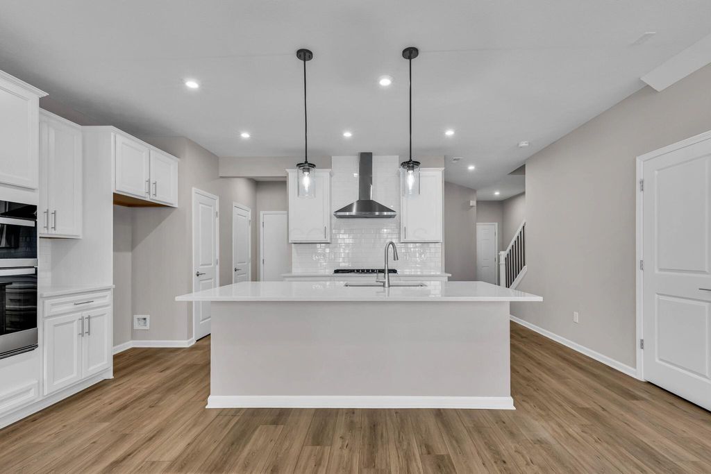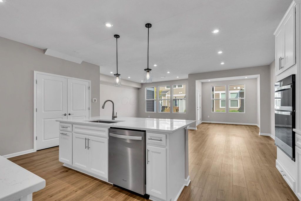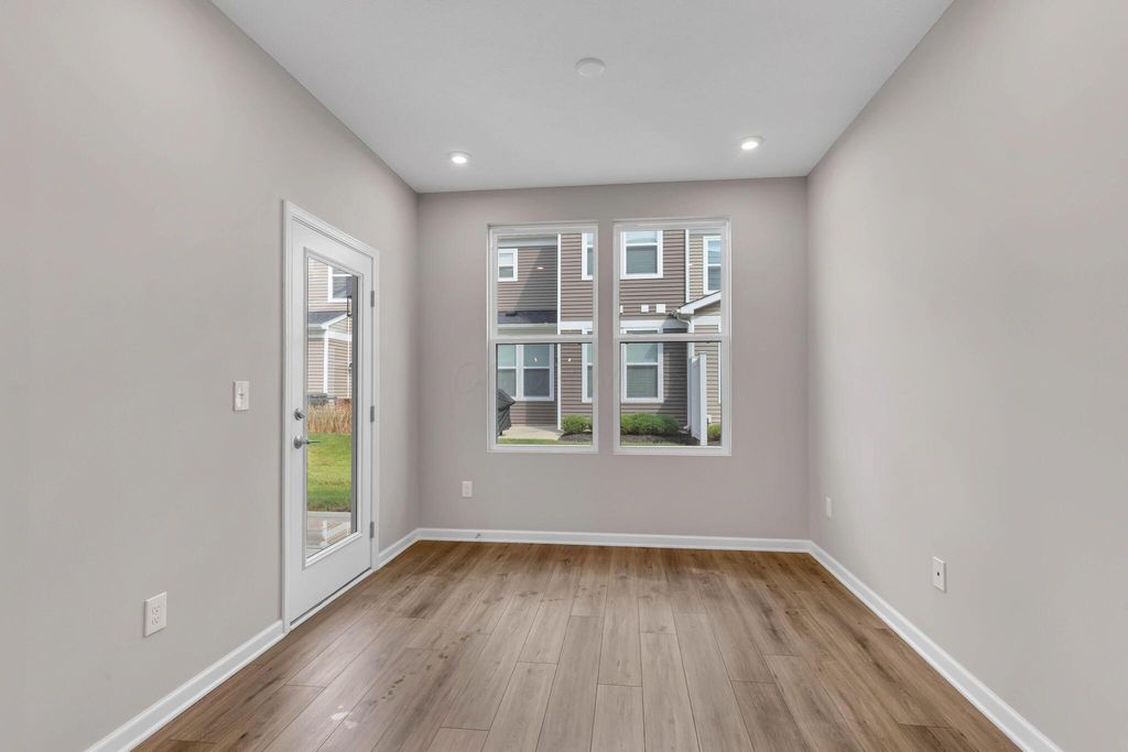 Welcome to your new construction, 2 story,3 bed/2.5 bath townhome in Abberley Park, ready for move in NOW! This home includes over 1,900 square feet of living space with an open floor plan, popular white kitchen with center island, quartz counters, single bowl SS sink, upgraded SS appliances, LVT floors and upgraded carpet throughout. Enjoy the heated sunroom toward the rear of the home as well as concrete patio out back; perfect for relaxing or entertaining. The primary suite on the second story includes a walk in closet, walk in shower and dual sinks with quartz counters. An additional 2 beds, full bath and laundry complete the upper level.