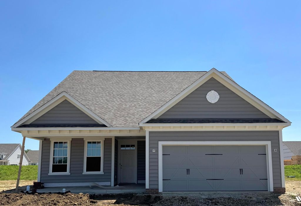 ESTIMATED COMPLETION BY THE END OF SEPTEMBER. This is a wonderful new 3 bed 3 bath home in Nottingham Trace. The kitchen has built-in stainless gas appliances, dana greyhound pure style cabinets with a convenience package and - 42'' uppers, under cabinet lighting, lyra quartz counters with catch ice gloss tile backsplash, upgraded steelstone gray composite single bowl sinkwith a sleek moen faucet, a spacious island with room for seating, a pendant light package, butler pantry and a walk in pantry for storage. The first floor primary suite has a large walk-in closet and a private bath with a double bowl vanity, lyra quartz counter, comfort height cabinet, and a warm gray walk-in tile shower. An add'l entry level bed, full bath, eating space off the kitchen, a great room, den, laundry room with tilden purestyle white cabinets, handspun chestnut laminate counter and a sink, a sunroom, extended 2 car garage with tandem storage space and a patio. The 2nd floor living space has a bed, full bath and a loft that will be perfect when friends or family come to stay. Dorian gray rail and wrought iron spindles. Smart home package. Luxury vinyl tile flooring throughout the main level. Interior photos are from a model, not the actual home.