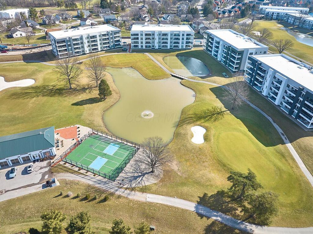 Amazing almost new modern condo overlooking Little Turtle Golf Course and very close stroll to the Little Turtle Country Club with great amenities. Incredible location with great 270 access, close to Blendon Woods park, Easton, Airport, downtown New Albany and Hamilton Quarter. Wide open 3BR 2.5BA condo with really sharp finishes, an awesome Kitchen, with huge island and updated appliances, casual seating and dining spaces leading to large great room overlooking covered porch , including outside roller blinds. Excellent master suite with spa bath, large walk in closet. All closets have new California Closets. Custom drapes and plantation shutters. BR 2 has custom office built in for office flex room. Super sharp and move in ready.