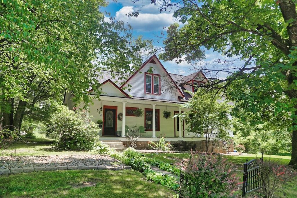 Character filled home located on the edge of town, charming older home situated on .57 of an acre, features include 3 bedrooms and 2 full baths, inviting entry foyer with open staircase, large formal living room with hardwood flooring and gas fireplace, adjoining formal dining room, cabinet filled kitchen with appliances, breakfast nook and back staircase, second living room with wood burning stove, main level laundry and bath, relaxing rear deck space, fire pit, covered front porch, detached 2 car garage, lovely and well cared for home, priced to sell at $275,000.