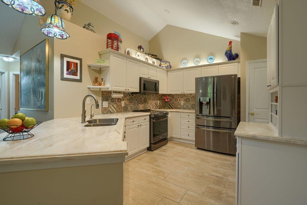 Desirable Epcon built Canterbury model in popular Windsor Bridge at the Preserve. This beautiful condominium offers an open floor plan with cathedral ceilings throughout, 3 bedrooms, 4-seasons room, 2 full bathrooms and a 2-car attached garage. Newer features include a new roof in 2023, new HVAC system in 2023, newer windows, new carpeting in primary bedroom and newer flooring in other areas. The beautiful kitchen features white cabinetry, tile back splash, SS appliances, additional cabinetry with matching counter top and a newer sink & faucet. The open living room features a gas fireplace with mantel ledge, newer tile hearth and tile foyer and a lighted ceiling fan. The 4-seasons sunroom features french doors, a lighted ceiling fan, engineered flooring and custom shades. Other features in this home include upgraded baseboards, custom window treatments, california closets in primary bedroom closet, barn door added to bathroom entry, heated floors in primary bath, Corian sinks and counter tops. Exterior features include a paver patio with newer fence, and access to community walking paths. Community amenities include a clubhouse, swimming pool and fitness center. Schedule your showing today!