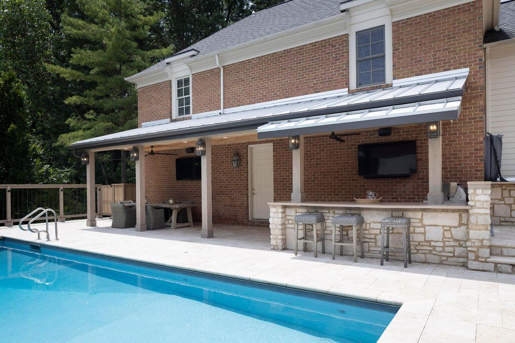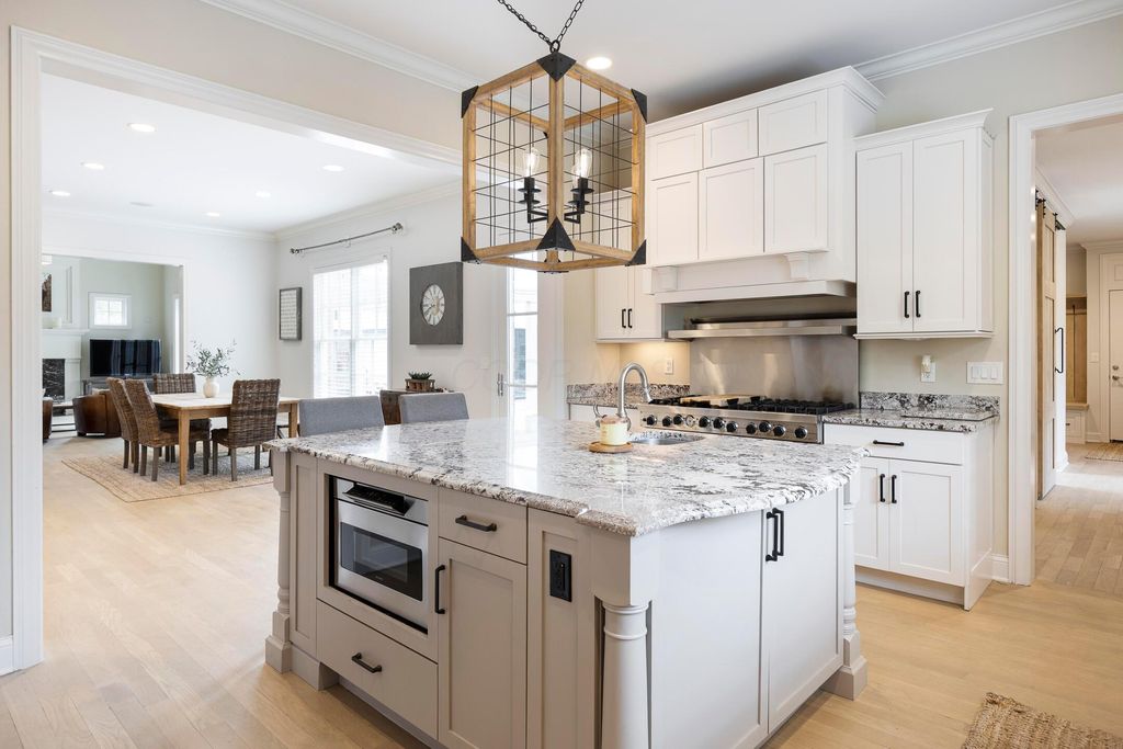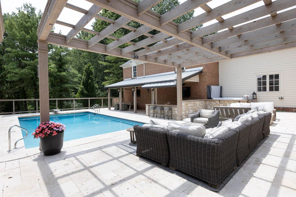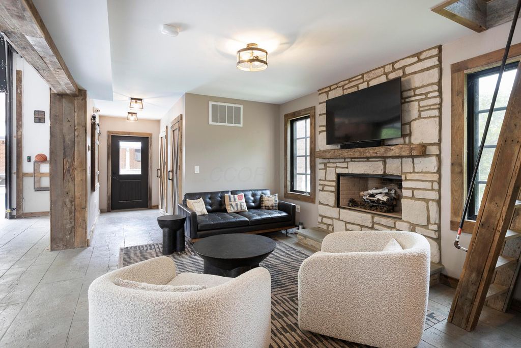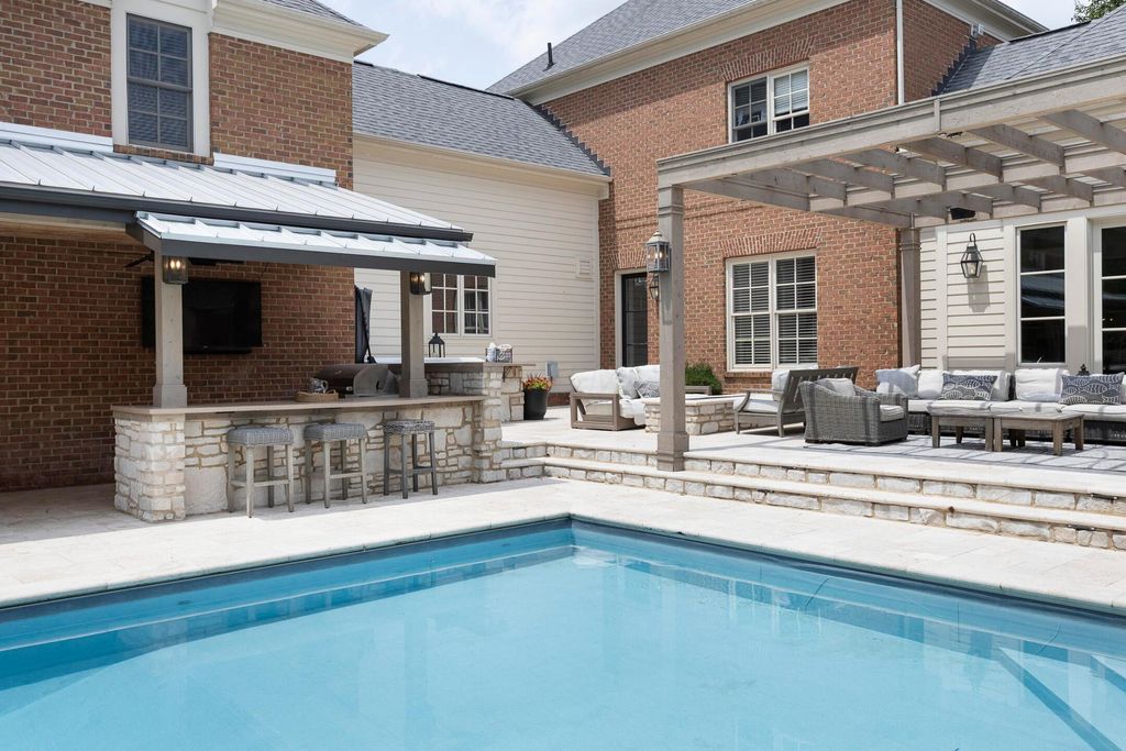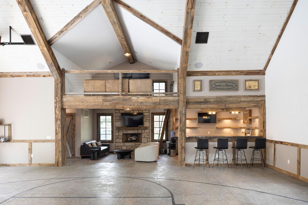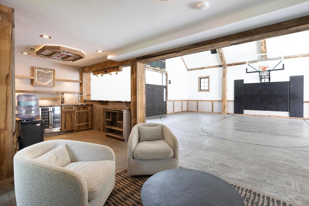Situated on a private, wooded lot in one of New Albany Country Club's most exclusive enclaves, this one-of-a-kind property offers a rare opportunity to enjoy both the elegance of country club living and the fun of a private retreat"”right in the heart of New Albany. Plenty of living space throughout including a newly constructed entertainment barn, 6 spacious bedrooms, 5 full and 2 half baths, this home is thoughtfully designed for both everyday luxury and effortless entertaining. The heart of the home is the cook's kitchen"”anchored by an oversized granite island, professional-grade appliances, and abundant custom cabinetry. Fresh interior paint, new white oak flooring, and a fully integrated sound system throughout the entire home. A separate carriage suite provides a private retreat with its own kitchen and family room, while the finished lower level includes a full bedroom, bath, and flexible entertaining space. The newly constructed entertainment barn is a true showstopper"”complete with a full indoor basketball/pickleball court, kitchen, half bath, and a lofted lounge area ideal for guests or gatherings. A beautifully landscaped backyard featuring a pool with automatic cover, hot tub, covered patio with pergola, outdoor fireplace, brick pizza oven, fire pit, full outdoor grill station, projector screen, in-ground trampoline, and a turf play space.