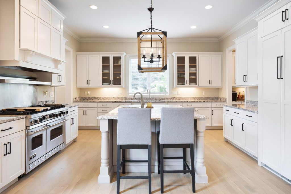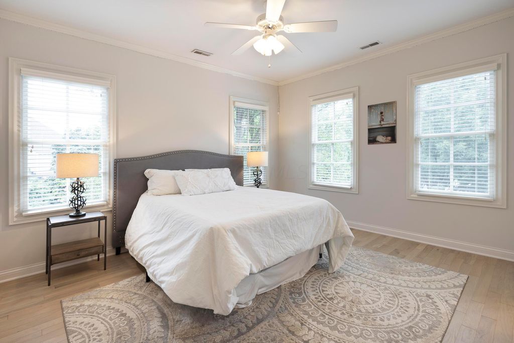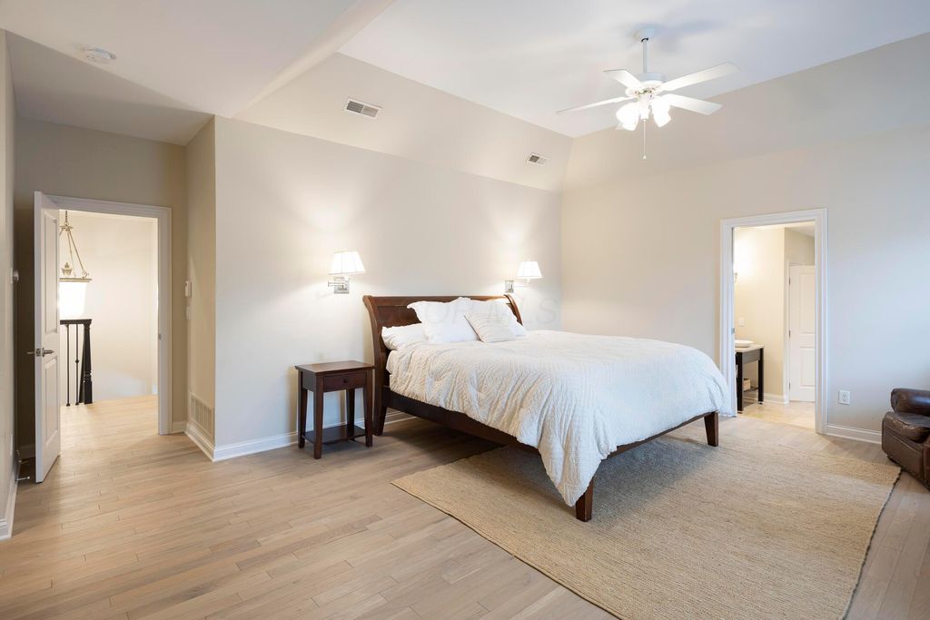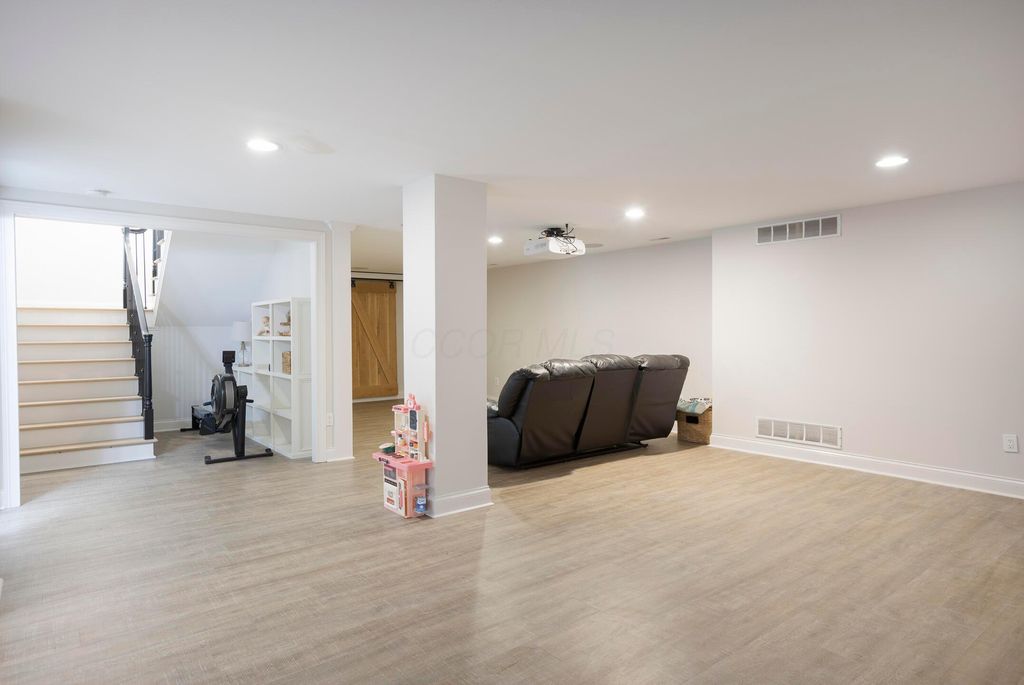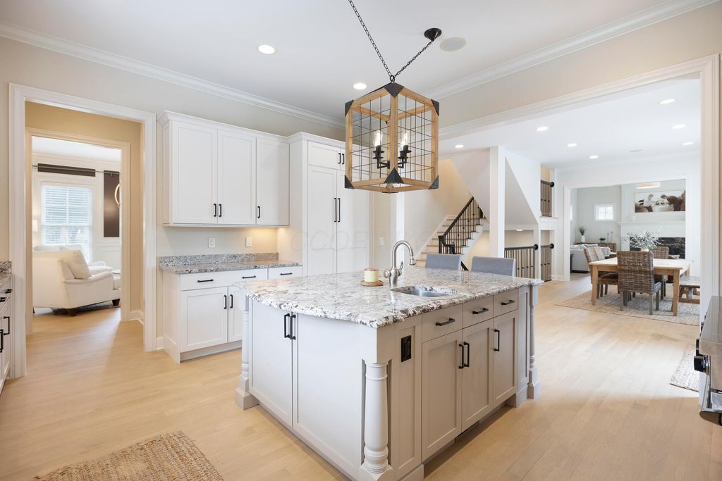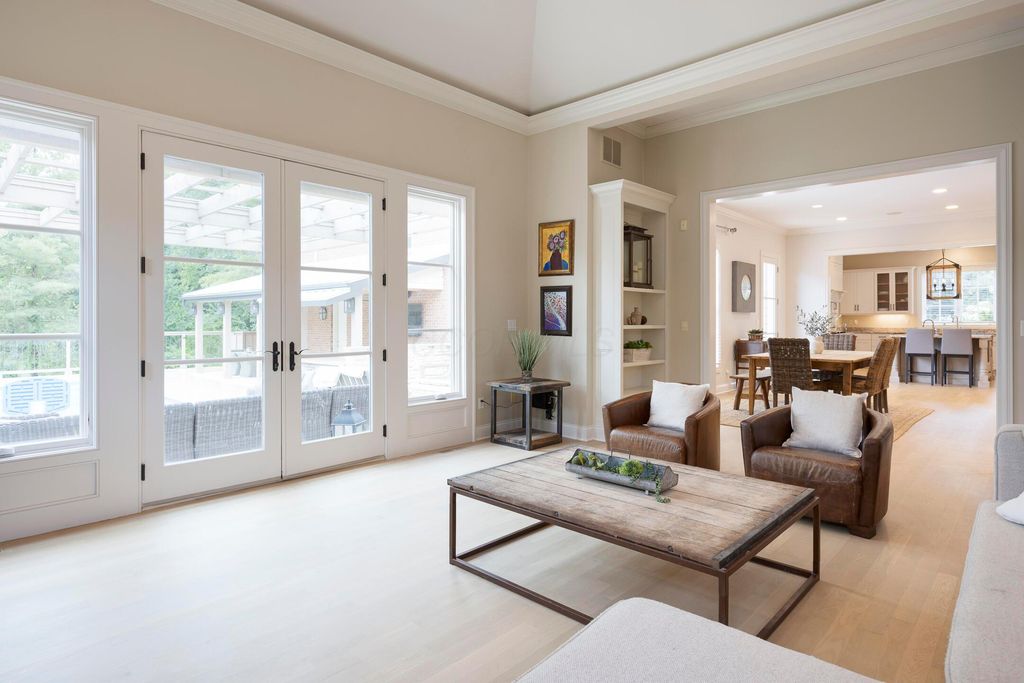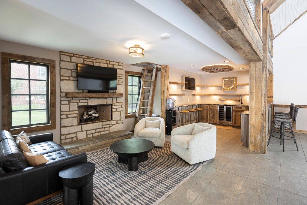 Situated on a private, wooded lot in one of New Albany Country Club's most exclusive enclaves, this one-of-a-kind property offers a rare opportunity to enjoy both the elegance of country club living and the fun of a private retreat"”right in the heart of New Albany. Plenty of living space throughout including a newly constructed entertainment barn, 6 spacious bedrooms, 5 full and 2 half baths, this home is thoughtfully designed for both everyday luxury and effortless entertaining. The heart of the home is the cook's kitchen"”anchored by an oversized granite island, professional-grade appliances, and abundant custom cabinetry. Fresh interior paint, new white oak flooring, and a fully integrated sound system throughout the entire home. A separate carriage suite provides a private retreat with its own kitchen and family room, while the finished lower level includes a full bedroom, bath, and flexible entertaining space. The newly constructed entertainment barn is a true showstopper"”complete with a full indoor basketball/pickleball court, kitchen, half bath, and a lofted lounge area ideal for guests or gatherings. A beautifully landscaped backyard featuring a pool with automatic cover, hot tub, covered patio with pergola, outdoor fireplace, brick pizza oven, fire pit, full outdoor grill station, projector screen, in-ground trampoline, and a turf play space.