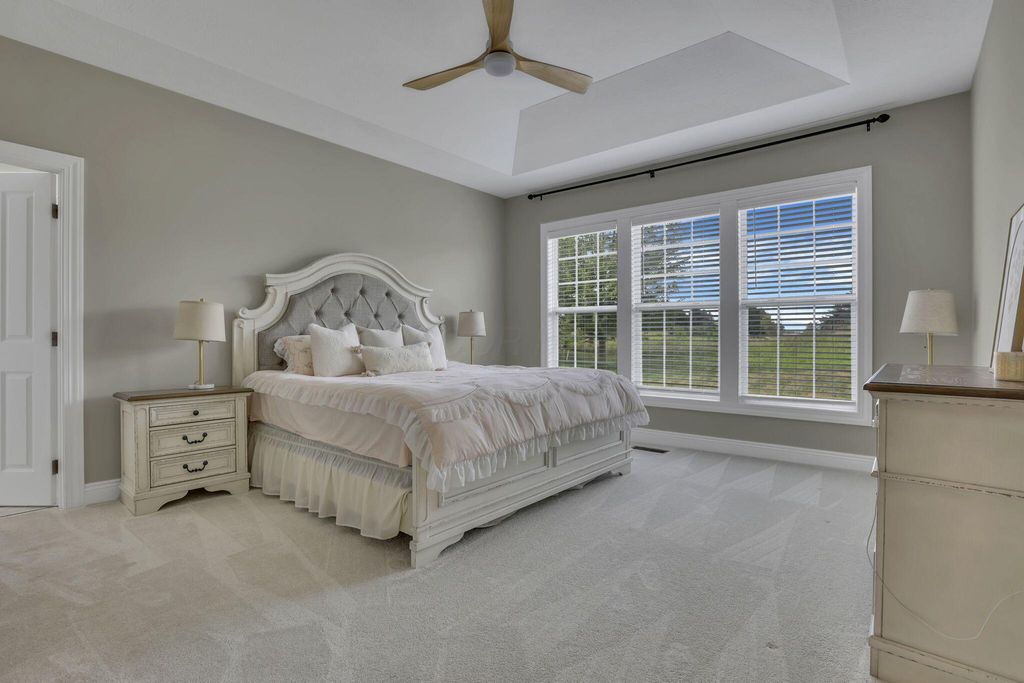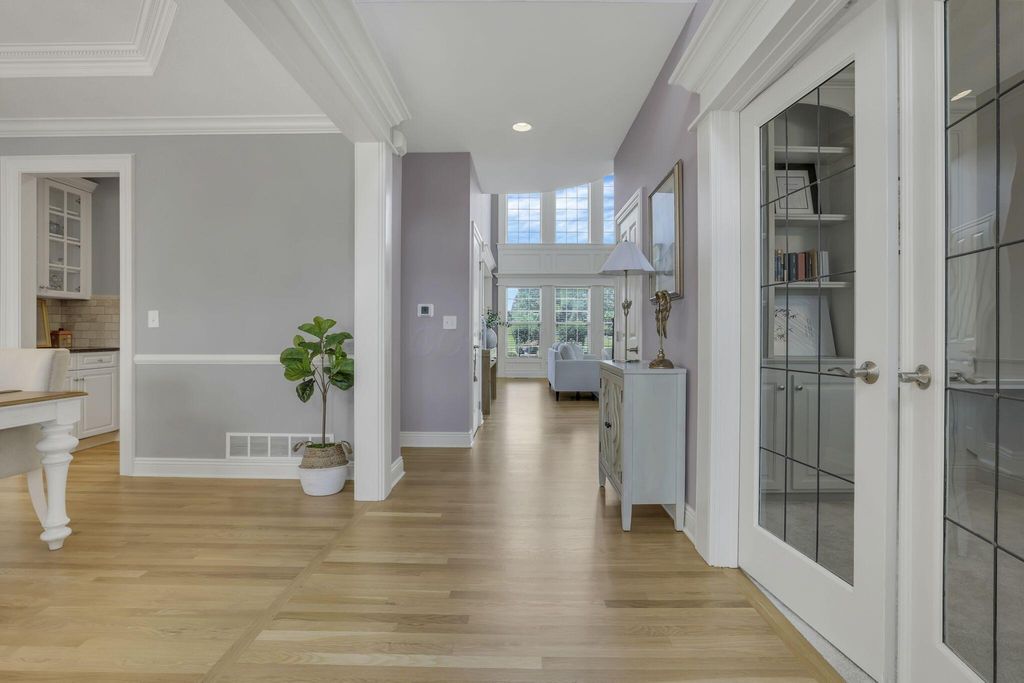 Welcome to this exquisite Romanelli & Hughes residence in the highly sought-after New Albany Links community. Offering 5 bedrooms, 3.5 bathrooms, and over 4,200 sq. ft. of beautifully designed living space, this home blends elegance, comfort, and modern updates with a prime location along a serene golf course and pond. This move-in ready home features extensive updates: new roof, sump pump, garage opener, paint, and garbage disposal (2025), new microwave (2024), furnace (2023), and AC (2022)"”assuring peace of mind for years to come. The main level showcases bright, open living spaces with white oak floors throughout, a dramatic 2-story great room, formal dining room, morning room, and a dedicated home office with French doors. The chef's kitchen boasts white cabinetry, stainless steel appliances, granite countertops, and a new garbage disposal (2025) and microwave (2024). The spacious first-floor primary suite offers a marble and quartz bathroom with a large walk-in closet, creating a luxurious retreat. Upstairs, 3 expansive bedrooms provide a refined sense of comfort, each featuring abundant natural light and generous closet space, making the upper level as stylish as it is functional. The fully finished basement expands your options with a private bedroom with an egress window and new full bath"”ideal for guests or multi-generational living"”as well as space for a home gym, media room, or play area. Outside, enjoy a private backyard paver patio, 3-car garage with basketball hoop, and beautiful golf course views. Perfectly located, residents enjoy convenient access to New Albany Links Club, Bevelhymer Park, Market & Main dining and shopping, top-rated New Albany Schools, and quick routes to Highways 161 & 270. Don't miss your chance to own this exceptional New Albany Links home where comfort, style, and convenience meet. Schedule your private showing today!