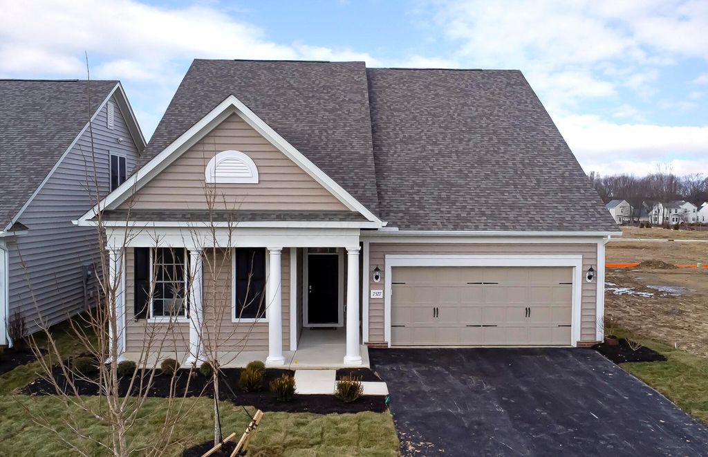 **OPEN HOUSE SAT 12/6 & SUN 12/7 1PM-4PM. This is a wonderful new 2 bed 2 bath ranch home in Nottingham Trace. The kitchen has built in stainless gas appliances, dana white pure style cabinets with 42'' uppers, miami vena quartz counters, catch fawn gloss tile backsplash, an upgraded stainless legend single bowl sink with a sleek moen faucet, a spacious island with room for seating, a winslow pendant light package and a walk in corner pantry for storage. The owners suite has a large walk-in closet and a private bath with a comfort height double bowl vanity, white zeus quartz counter, a beautiful white tile walk-in shower with seat and an enclosed toilet area. An add'l bed, full bath, eating space, great room, den with doors for privacy, a gorgeous sunroom, laundry, boot bench at entryway and a 2 car garage with extra space for storage. Smart home package included. Upgraded flooring throughout including beautiful luxury vinyl tile flooring. Brushed nickel finishes and fixtures. Front porch...a great spot to relax on. Enjoy the clubhouse with fitness facility, outdoor bocci ball and pickle ball, stocked fishing pond, scenic bike/walking paths and much more. Low maintenance living with the lawn care and snow removal included. This beautiful home is ready for your visit today.