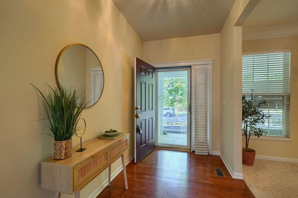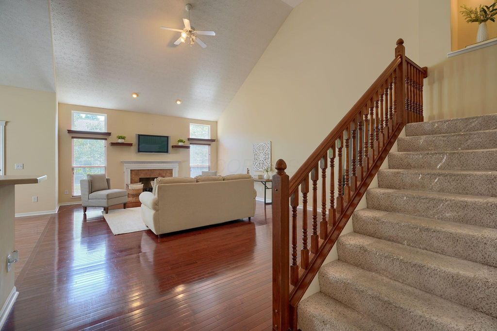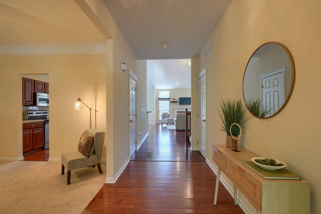 Welcome to this 5-bedroom, 2.5-bath home in Preserve North, offering 2,842 sq ft of living space and a 3-car garage. The two-story great room with a wall of windows opens to an updated kitchen and vaulted dining area that leads to a private patio. The first-floor owner's suite features a walk-in closet and spa-like bath, while upstairs provides four additional bedrooms. Recent updates include roof, gutters, water heater, flooring, and furnace motor. Conveniently located across from a pond and reserve, near Thompson Park, New Albany schools, Market Square, Easton, and the airport.