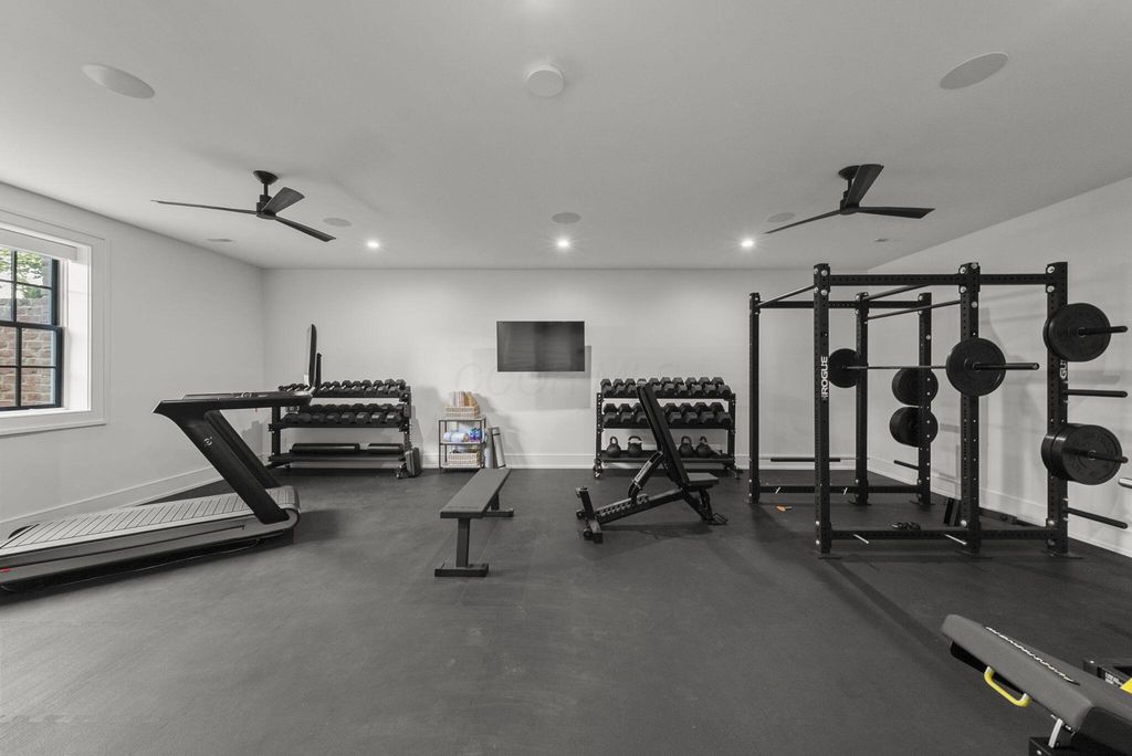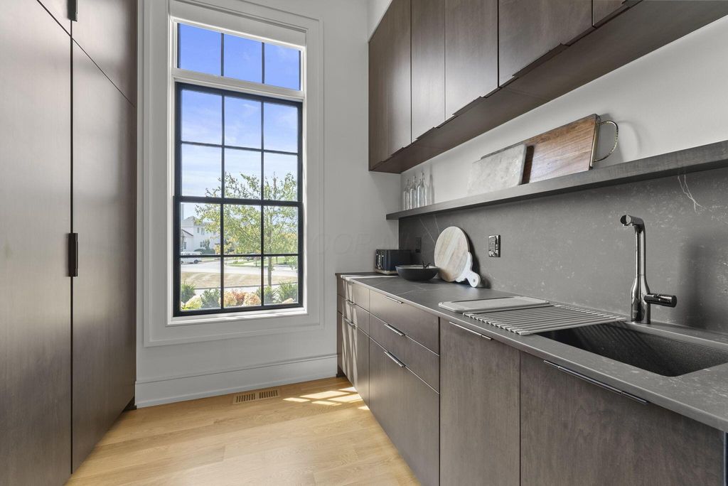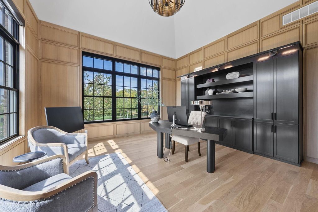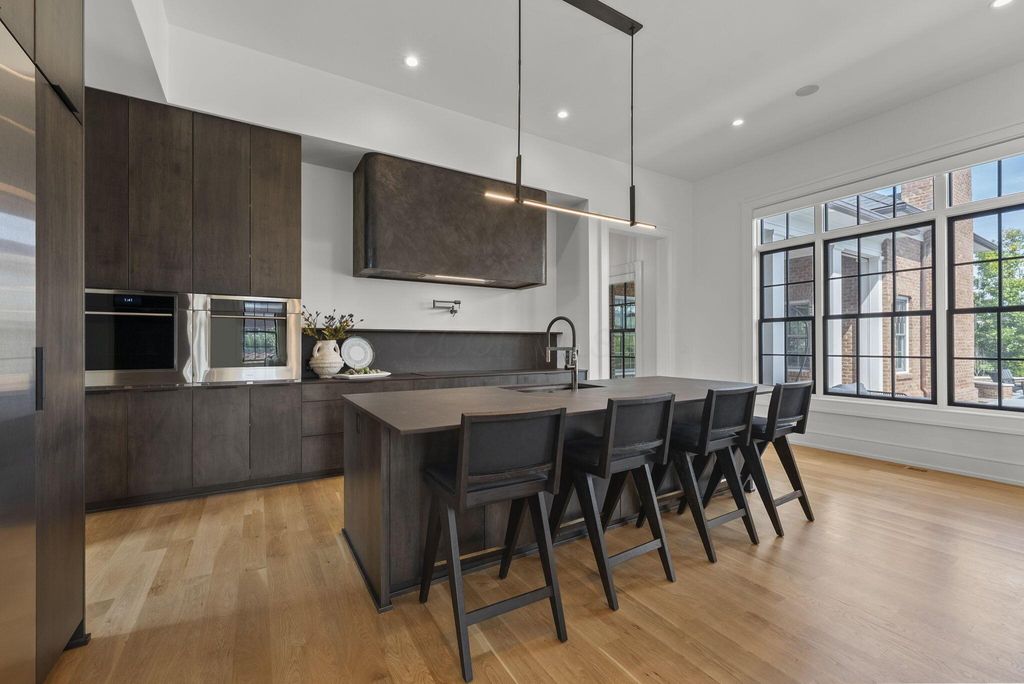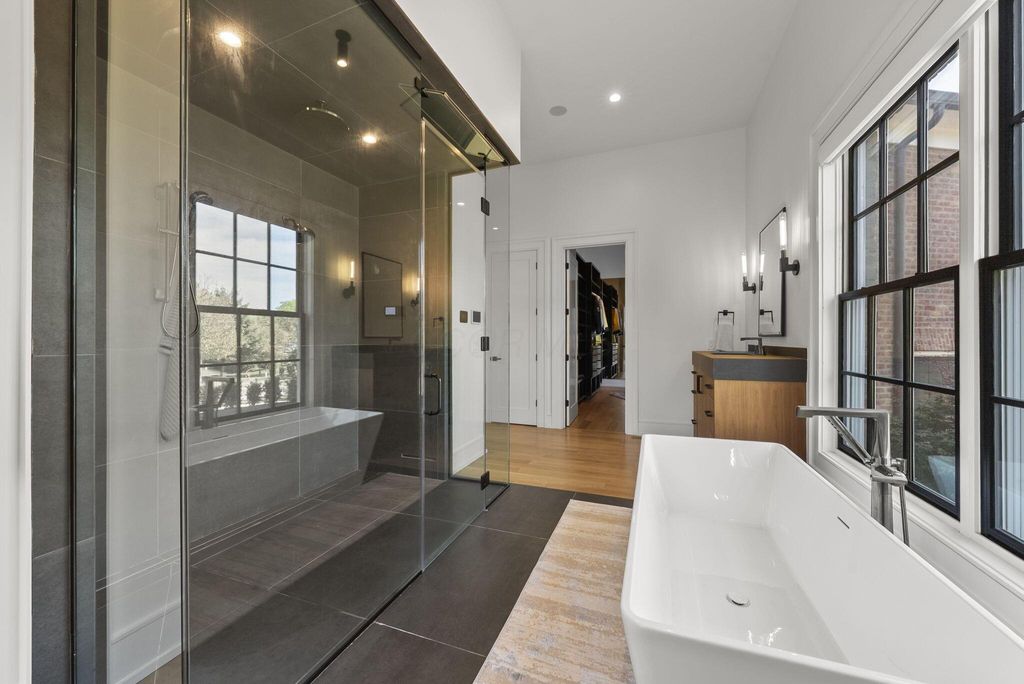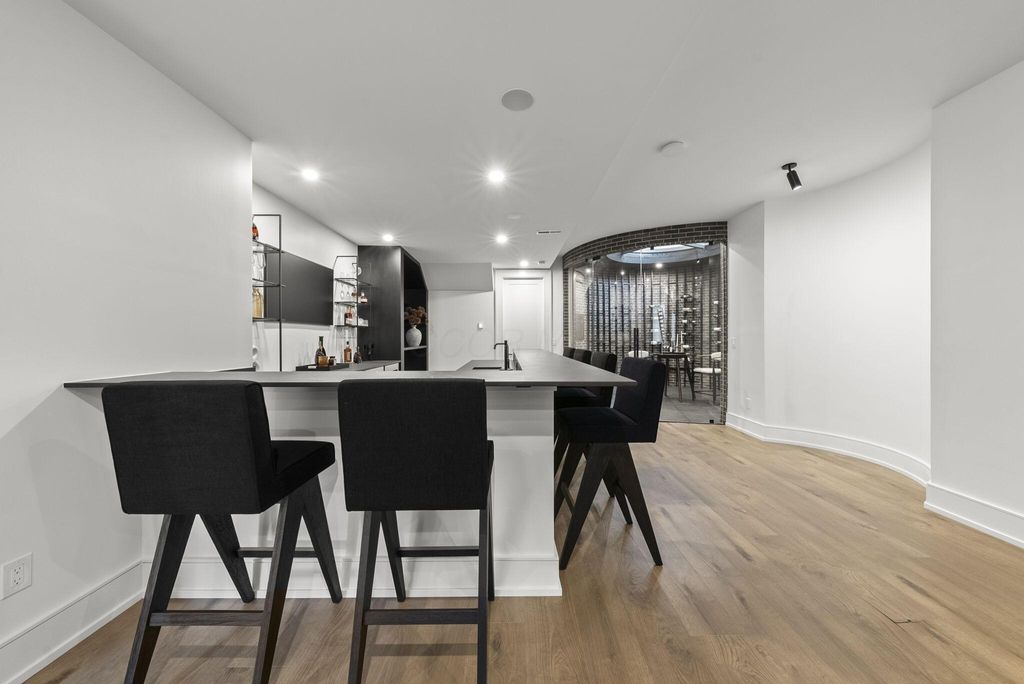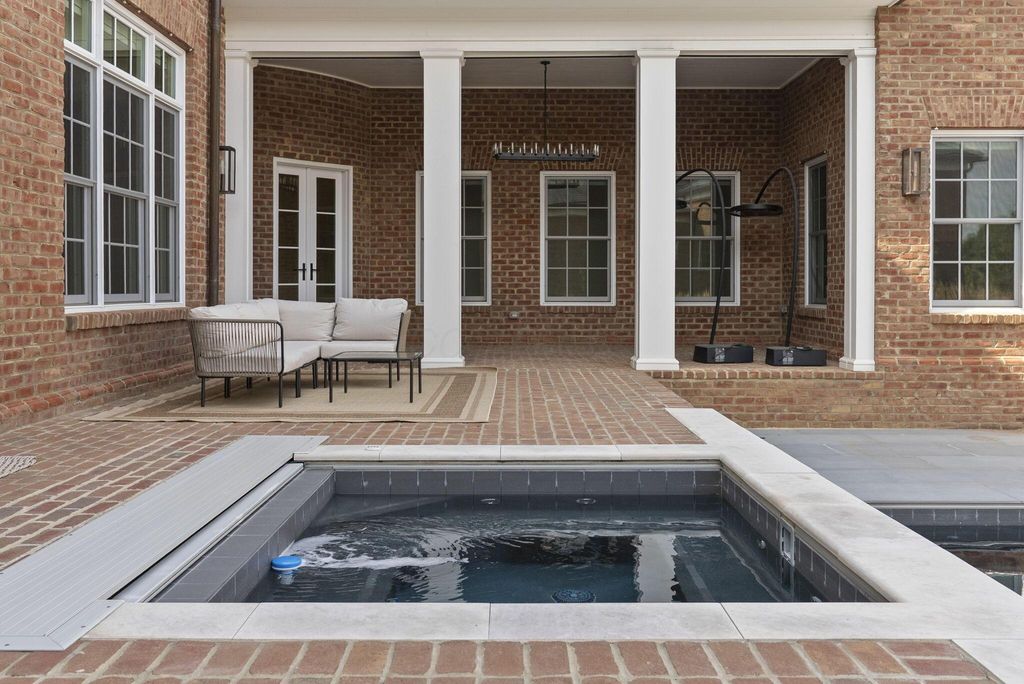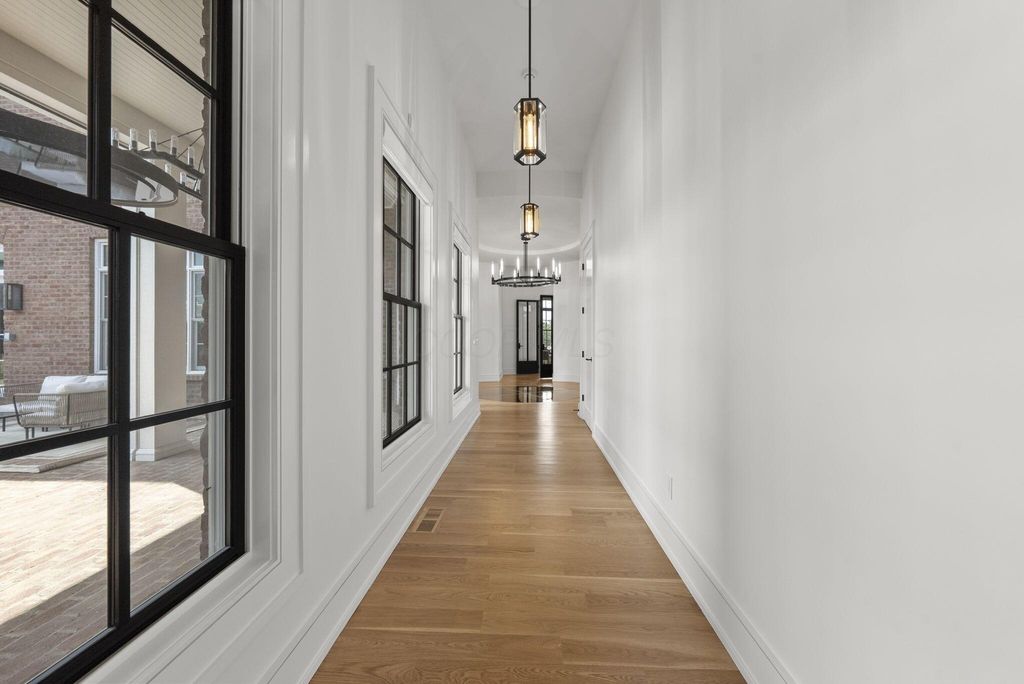 Experience timeless elegance with modern sophistication in this spectacular Georgian Manor, thoughtfully designed for both grand entertaining and everyday comfort. Completed in 2024, the residence offers a resort-style lifestyle with incredible outdoor living: pool, spa, full outdoor kitchen, and a dedicated pool house with half bath. A heated driveway and walkway provide ease of living during winter months, keeping snow and ice at bay. Inside, the home's expansive layout welcomes you with soaring ceilings and wide-open great room, dining, and kitchen spaces. The sleek chef's kitchen is outfitted with Wolf and Sub-Zero appliances, an oversized island, and a hidden scullery. A dramatic transition hall showcases a circular glass floor looking down to the temperature-controlled wine cellar, leading to a private office crowned by a vaulted cupola ceiling. Tucked away, a hidden bourbon room adds a unique touch of sophistication. The first-floor owner's suite is a private retreat with its own fireplace, spa-inspired bath, and a custom walk-in closet. Upstairs, three spacious bedrooms each feature their own en suite baths. The lower level is designed for entertainment and wellness, featuring a rec/media area with fireplace, a full theater room, bar, climate-controlled wine cellar, and a professional-grade gym with abundant storage. Perfectly situated on a picturesque lot overlooking a tranquil pond and the 18th fairway of New Albany Country Club, this home offers walkable access to the club's world-class amenities. A rare blend of architectural beauty and modern luxury, this is resort living at its finest.