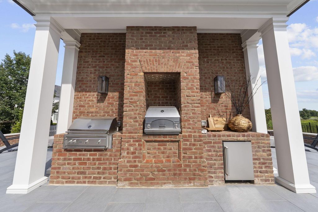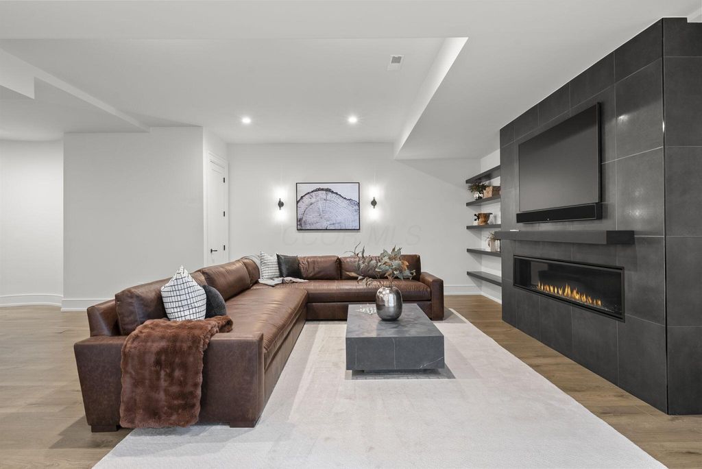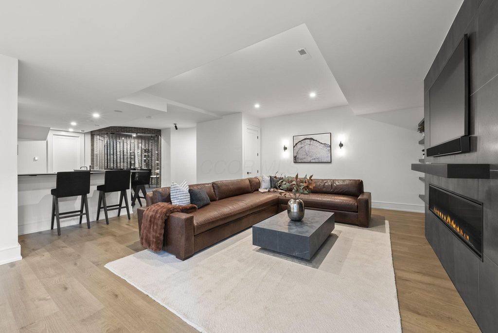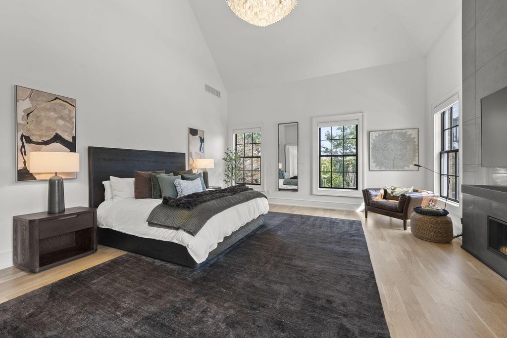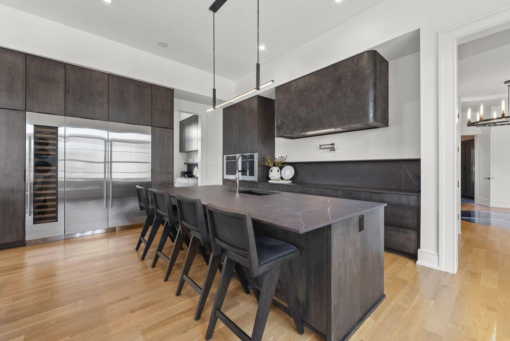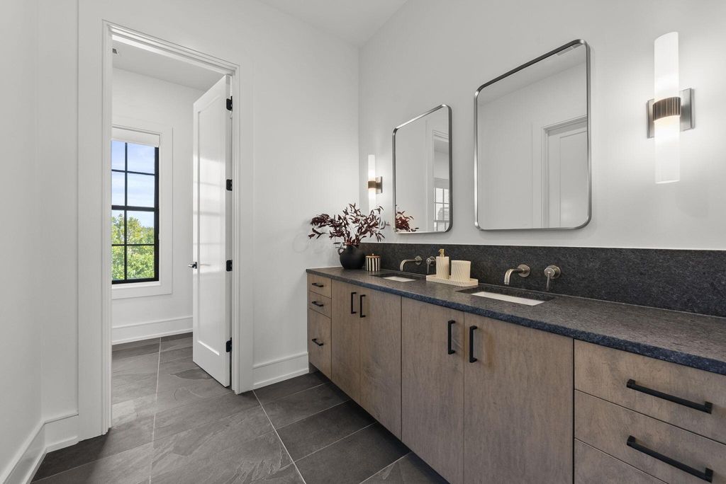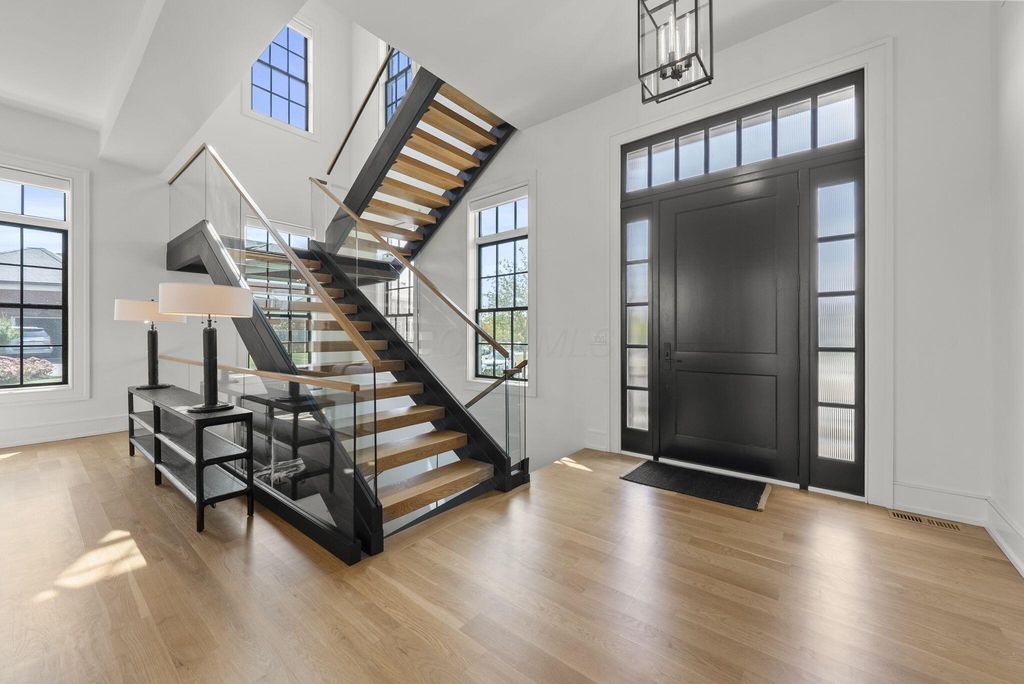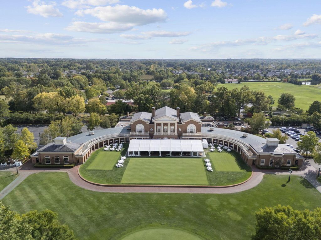 Experience timeless elegance with modern sophistication in this spectacular Georgian Manor, thoughtfully designed for both grand entertaining and everyday comfort. Completed in 2024, the residence offers a resort-style lifestyle with incredible outdoor living: pool, spa, full outdoor kitchen, and a dedicated pool house with half bath. A heated driveway and walkway provide ease of living during winter months, keeping snow and ice at bay. Inside, the home's expansive layout welcomes you with soaring ceilings and wide-open great room, dining, and kitchen spaces. The sleek chef's kitchen is outfitted with Wolf and Sub-Zero appliances, an oversized island, and a hidden scullery. A dramatic transition hall showcases a circular glass floor looking down to the temperature-controlled wine cellar, leading to a private office crowned by a vaulted cupola ceiling. Tucked away, a hidden bourbon room adds a unique touch of sophistication. The first-floor owner's suite is a private retreat with its own fireplace, spa-inspired bath, and a custom walk-in closet. Upstairs, three spacious bedrooms each feature their own en suite baths. The lower level is designed for entertainment and wellness, featuring a rec/media area with fireplace, a full theater room, bar, climate-controlled wine cellar, and a professional-grade gym with abundant storage. Perfectly situated on a picturesque lot overlooking a tranquil pond and the 18th fairway of New Albany Country Club, this home offers walkable access to the club's world-class amenities. A rare blend of architectural beauty and modern luxury, this is resort living at its finest.