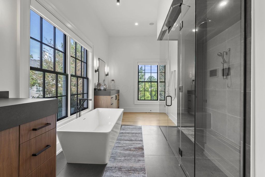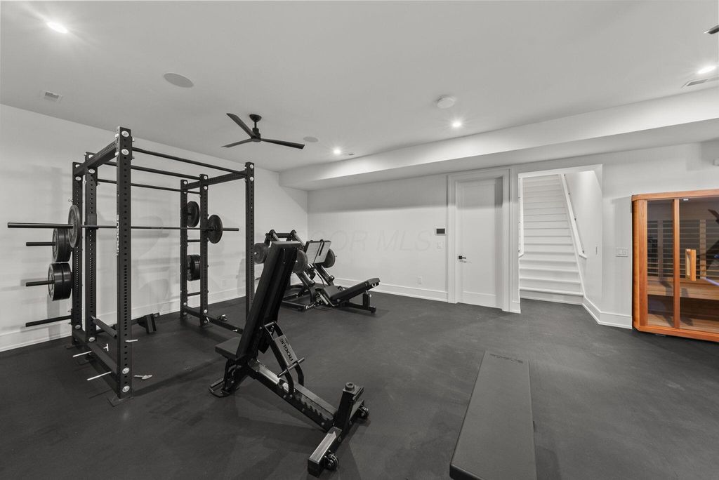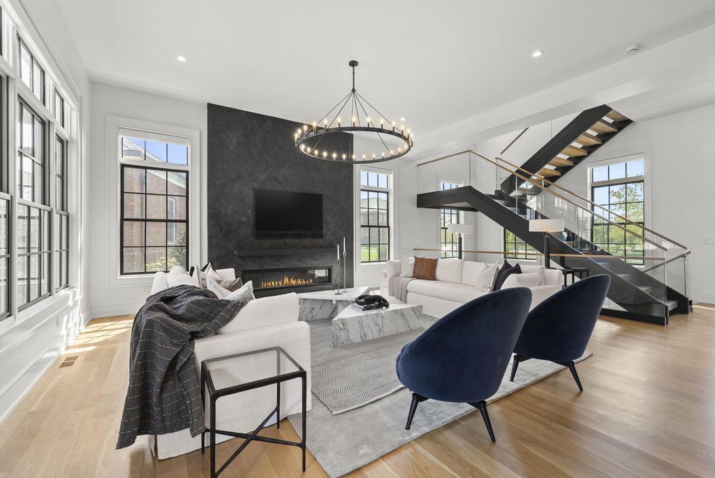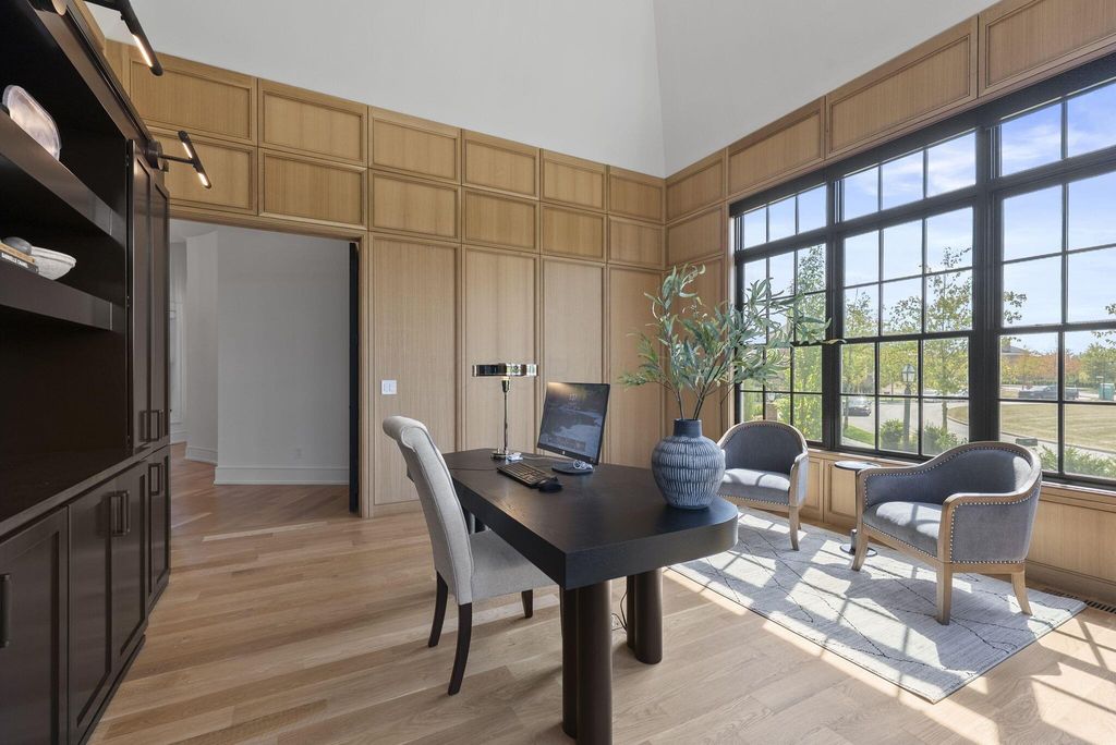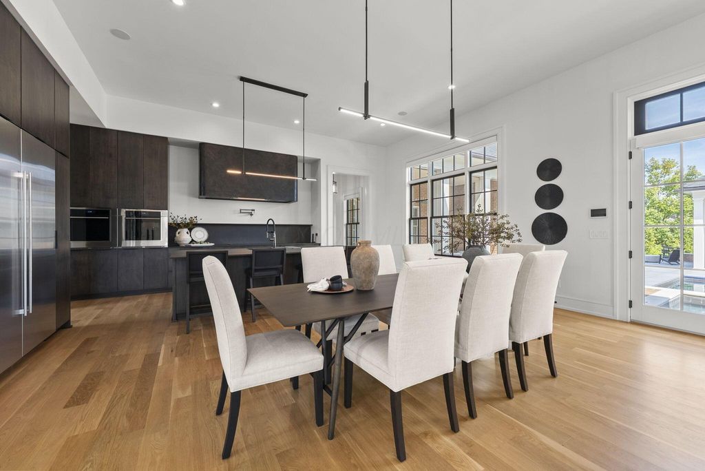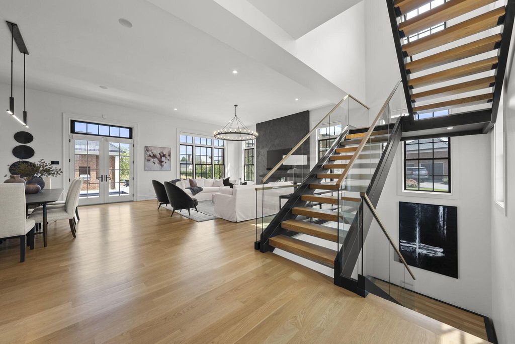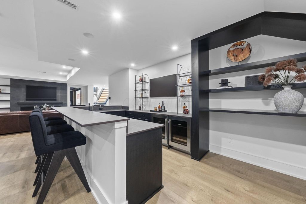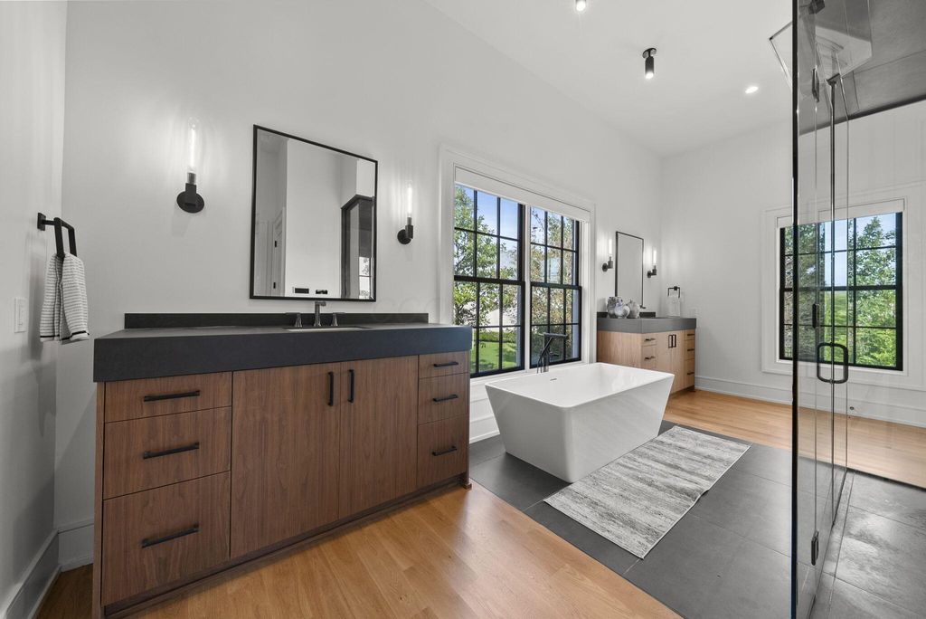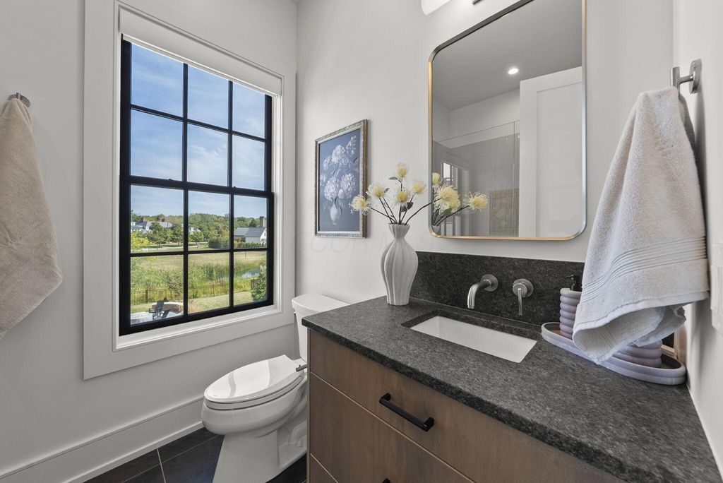 Experience timeless elegance with modern sophistication in this spectacular Georgian Manor, thoughtfully designed for both grand entertaining and everyday comfort. Completed in 2024, the residence offers a resort-style lifestyle with incredible outdoor living: pool, spa, full outdoor kitchen, and a dedicated pool house with half bath. A heated driveway and walkway provide ease of living during winter months, keeping snow and ice at bay. Inside, the home's expansive layout welcomes you with soaring ceilings and wide-open great room, dining, and kitchen spaces. The sleek chef's kitchen is outfitted with Wolf and Sub-Zero appliances, an oversized island, and a hidden scullery. A dramatic transition hall showcases a circular glass floor looking down to the temperature-controlled wine cellar, leading to a private office crowned by a vaulted cupola ceiling. Tucked away, a hidden bourbon room adds a unique touch of sophistication. The first-floor owner's suite is a private retreat with its own fireplace, spa-inspired bath, and a custom walk-in closet. Upstairs, three spacious bedrooms each feature their own en suite baths. The lower level is designed for entertainment and wellness, featuring a rec/media area with fireplace, a full theater room, bar, climate-controlled wine cellar, and a professional-grade gym with abundant storage. Perfectly situated on a picturesque lot overlooking a tranquil pond and the 18th fairway of New Albany Country Club, this home offers walkable access to the club's world-class amenities. A rare blend of architectural beauty and modern luxury, this is resort living at its finest.