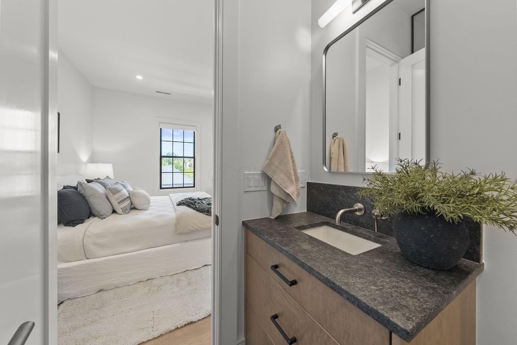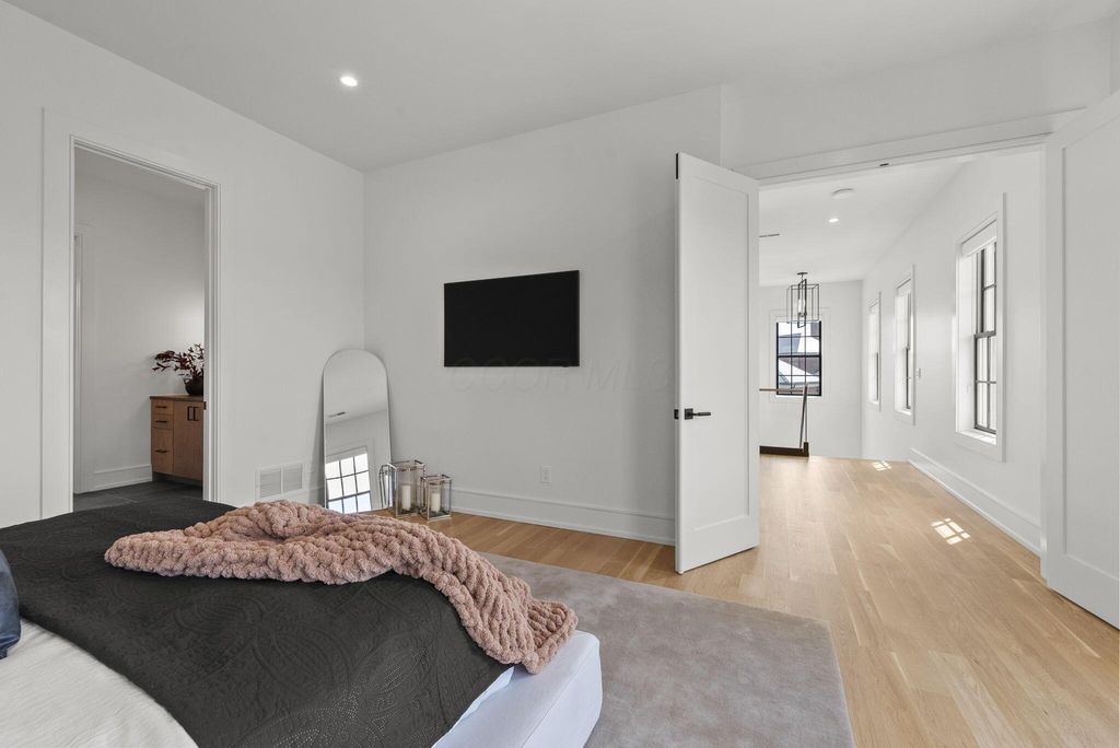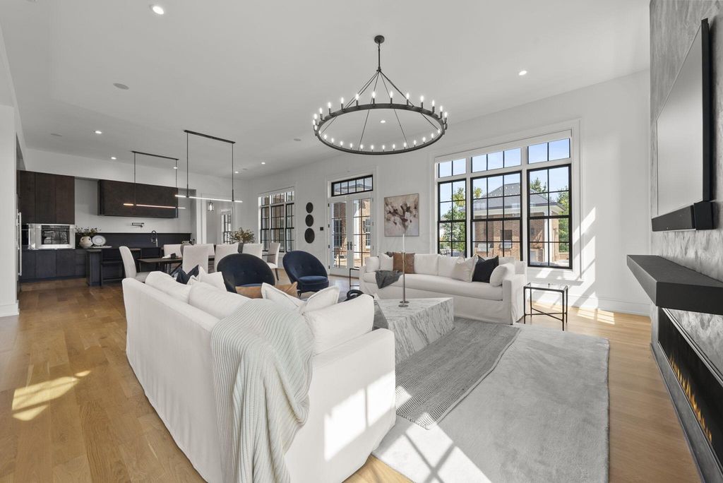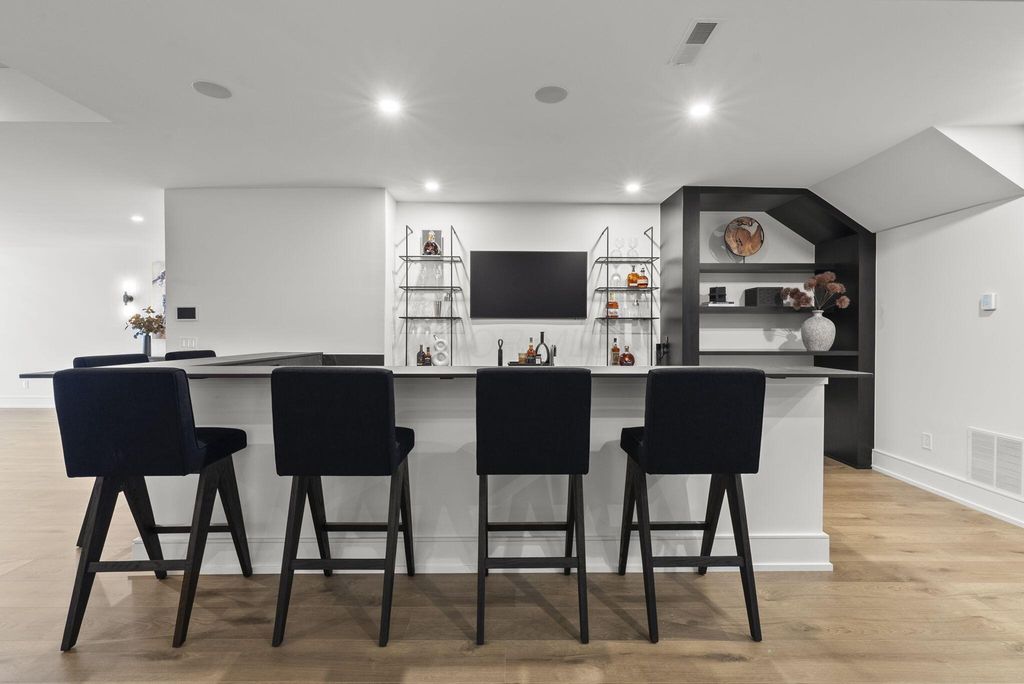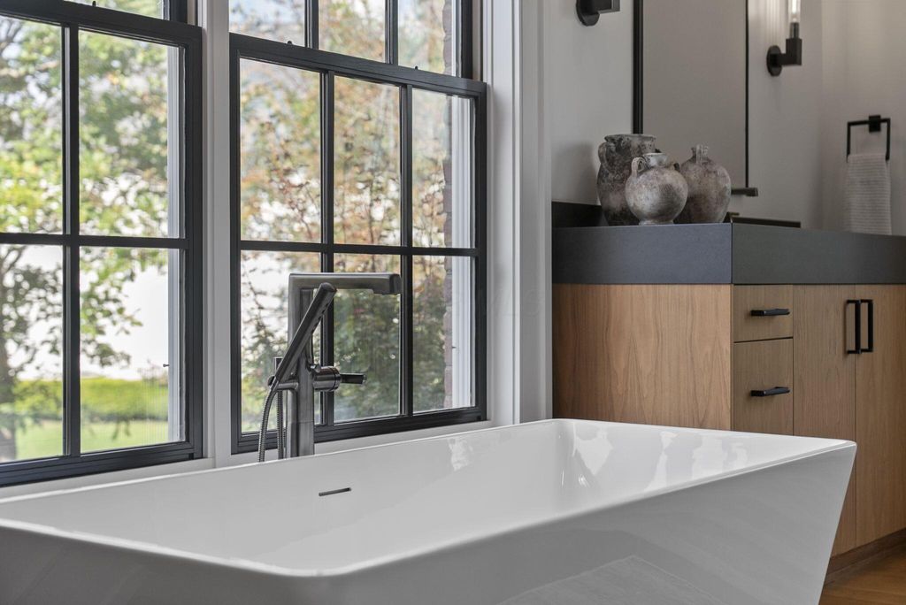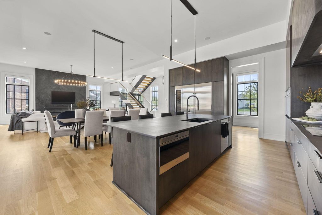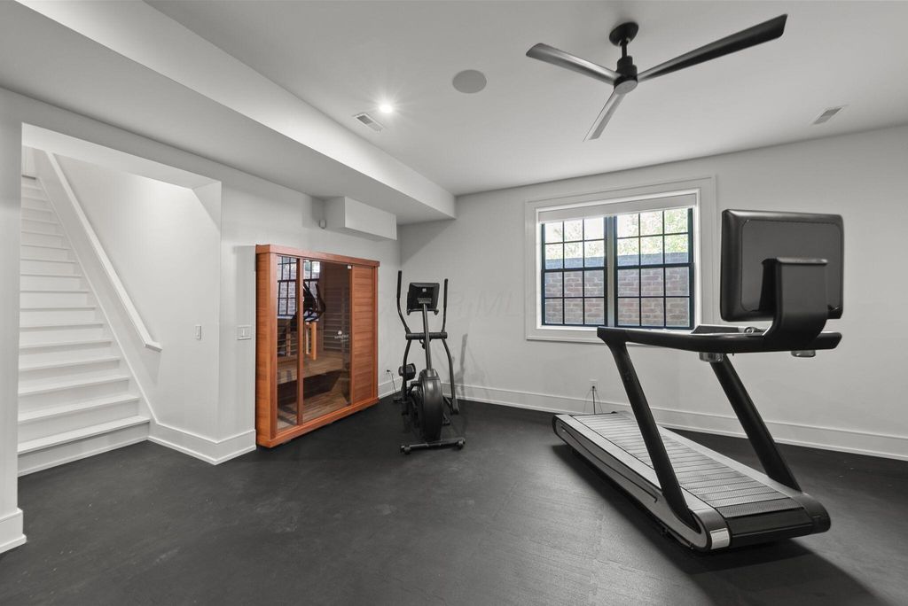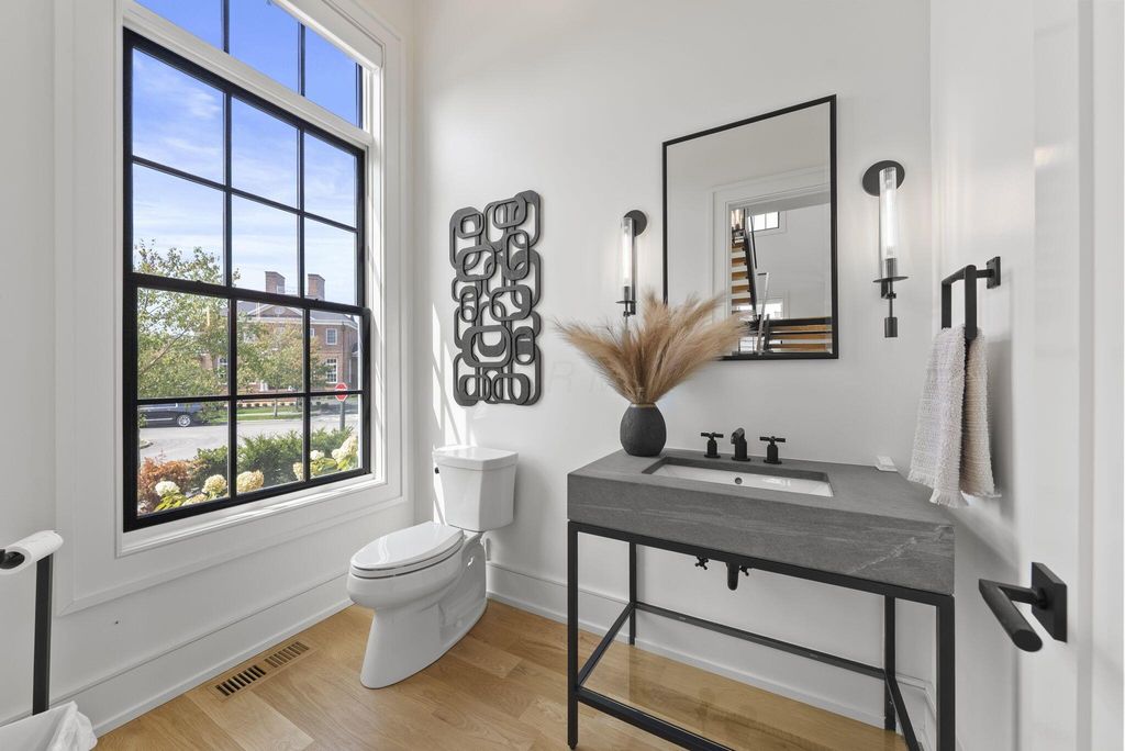 Experience timeless elegance with modern sophistication in this spectacular Georgian Manor, thoughtfully designed for both grand entertaining and everyday comfort. Completed in 2024, the residence offers a resort-style lifestyle with incredible outdoor living: pool, spa, full outdoor kitchen, and a dedicated pool house with half bath. A heated driveway and walkway provide ease of living during winter months, keeping snow and ice at bay. Inside, the home's expansive layout welcomes you with soaring ceilings and wide-open great room, dining, and kitchen spaces. The sleek chef's kitchen is outfitted with Wolf and Sub-Zero appliances, an oversized island, and a hidden scullery. A dramatic transition hall showcases a circular glass floor looking down to the temperature-controlled wine cellar, leading to a private office crowned by a vaulted cupola ceiling. Tucked away, a hidden bourbon room adds a unique touch of sophistication. The first-floor owner's suite is a private retreat with its own fireplace, spa-inspired bath, and a custom walk-in closet. Upstairs, three spacious bedrooms each feature their own en suite baths. The lower level is designed for entertainment and wellness, featuring a rec/media area with fireplace, a full theater room, bar, climate-controlled wine cellar, and a professional-grade gym with abundant storage. Perfectly situated on a picturesque lot overlooking a tranquil pond and the 18th fairway of New Albany Country Club, this home offers walkable access to the club's world-class amenities. A rare blend of architectural beauty and modern luxury, this is resort living at its finest.