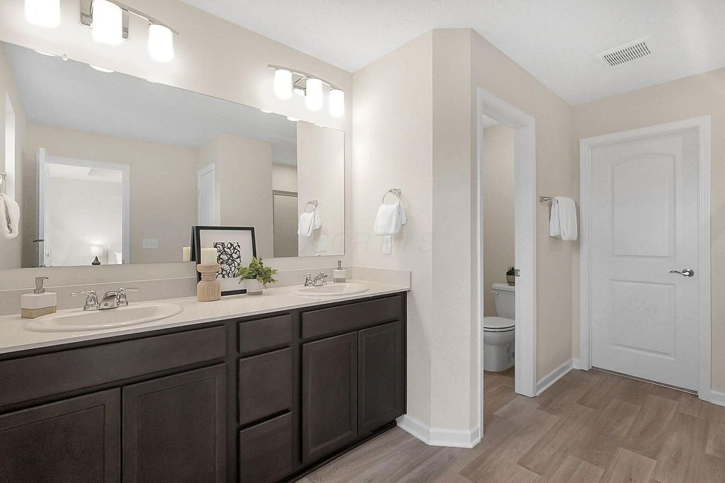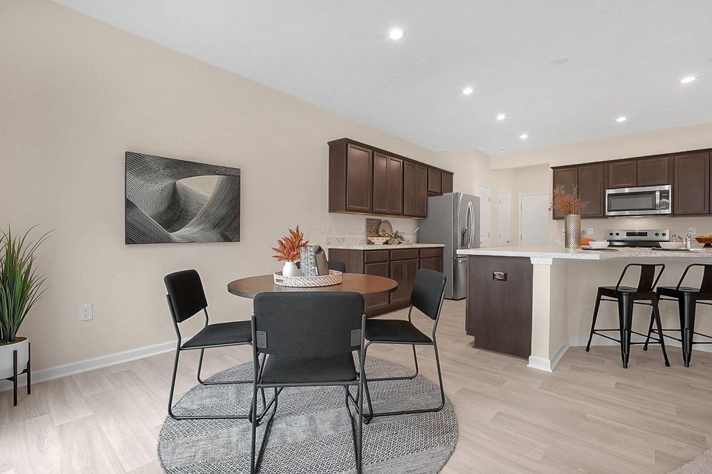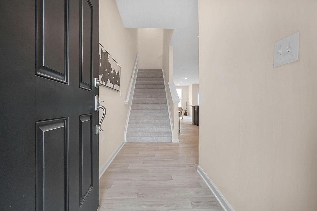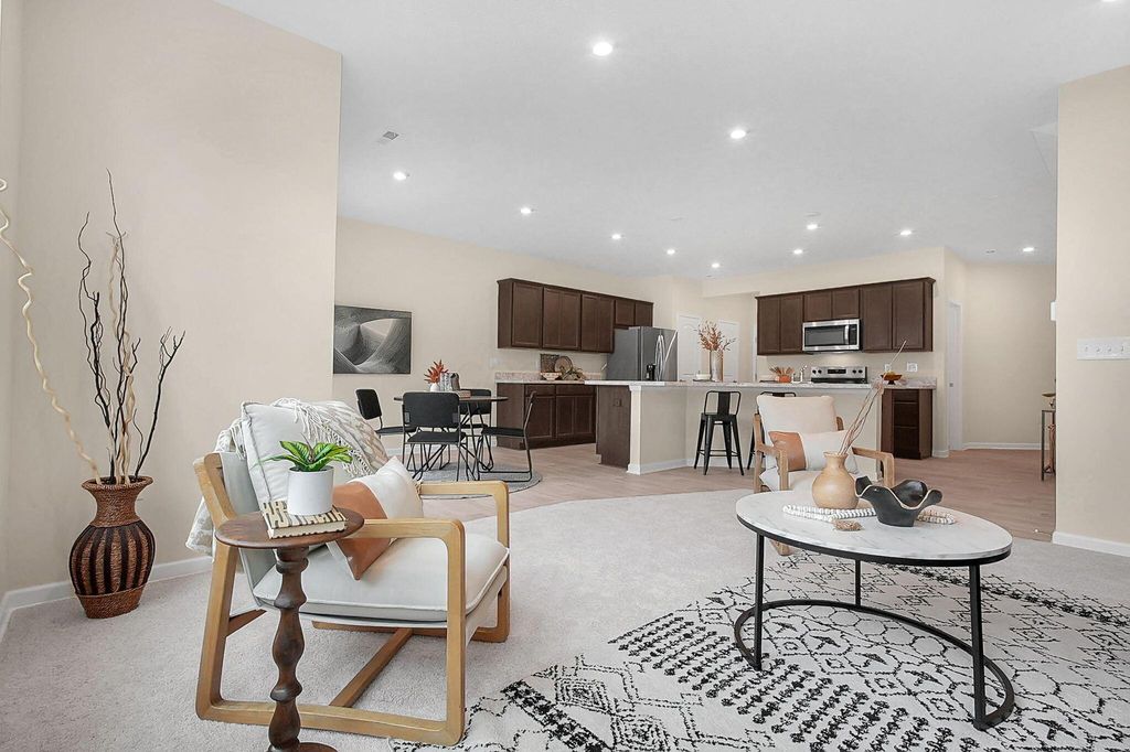 NOTE:Auditor sq ft is not correct. This home is closer to 1800 sq ft. This beautiful two-story home offers modern living with an open-concept design and thoughtful upgrades throughout. Step inside to find durable LVT flooring that flows seamlessly through the main level, creating a warm and inviting atmosphere. Located off of the 2 car garage is a custom built-in boot bench, perfect for organization. The heart of the home is the chef-inspired kitchen, showcasing a center island, sleek cabinetry, and abundant storage"”perfect for everyday meals and entertaining alike. Upstairs, retreat to the spacious primary suite featuring a walk-in closet, dual sinks, and a walk-in shower for your private oasis. The convenience of second-floor laundry makes daily routines a breeze. The concrete patio outback is perfect for outdoor enjoyment. With style, comfort, and function built into every detail, this new Pulte home is ready to welcome its first owners. HOA fee includes Spectrum internet and cable.