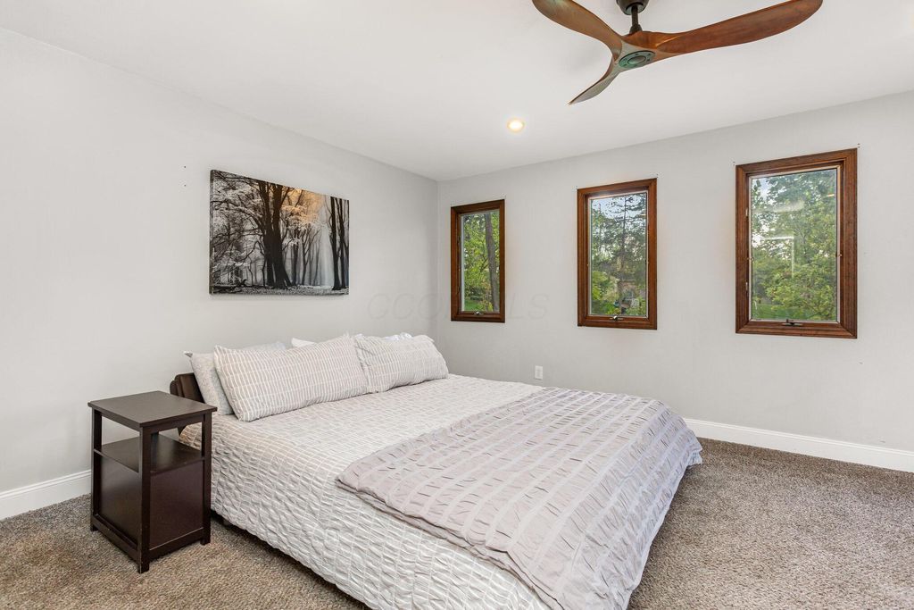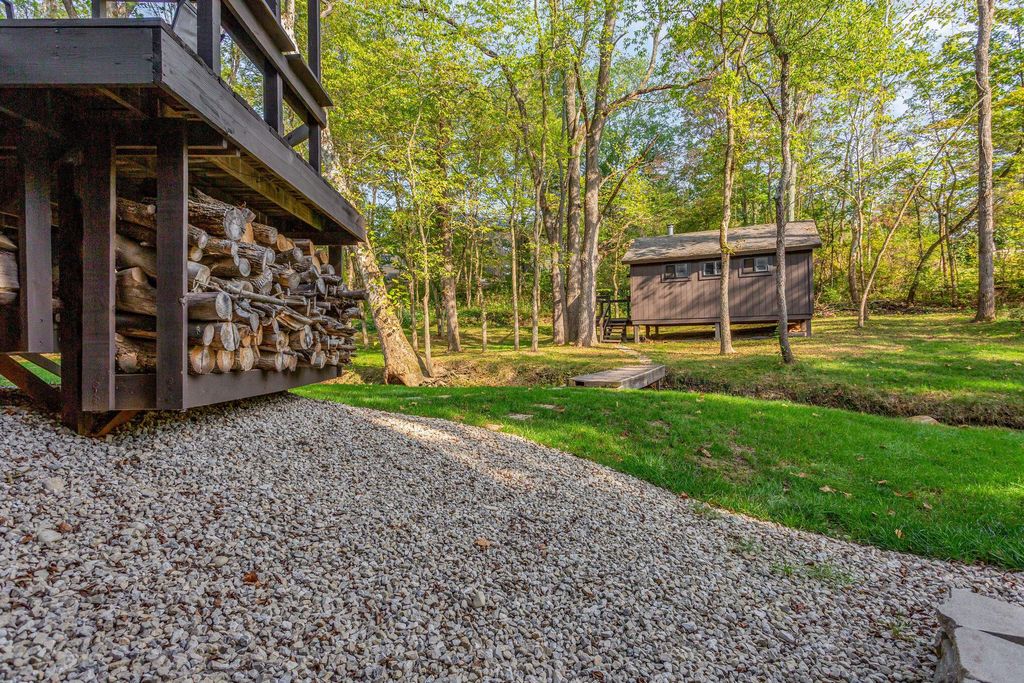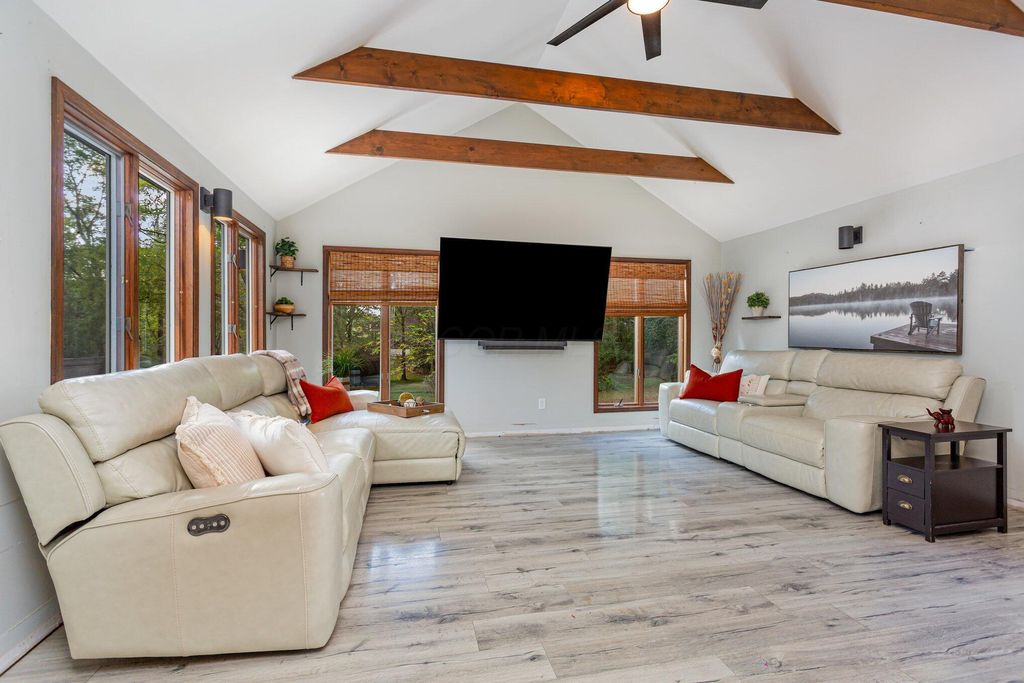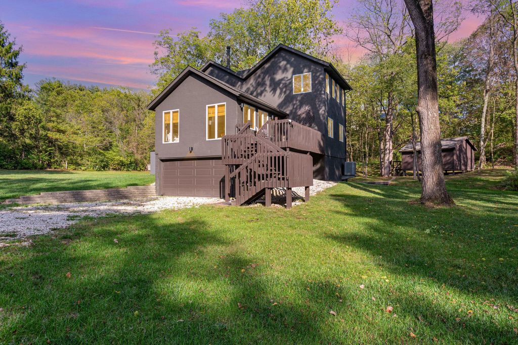 Online AUCTION, the RESERVE (Minimum Bid) is $360,000. The auction ends at 7:00 PM, Thursday, October 30th, 2025. Agents, please see 'A2A'. Don't shy away from the auction process"”we can show you how easy it can be! Charming 2-Story Home on 1.4 Acres in the Olentangy School District! This 3-bedroom, 2-bath home sits on a tranquil 1.4-acre lot, offering privacy and a beautiful natural setting. The great room features a vaulted ceiling with wood beams, creating warmth and character, while the spacious dining room is perfect for gatherings. The kitchen includes Corian countertops, a built-in range and stove, and plenty of cabinet space for storage. The first-floor bath is updated with tile flooring and a tiled tub surround. Convenient washer and dryer hookups are available upstairs, with the current laundry area located in the basement. Step outside and enjoy the serene back deck overlooking nature, with a charming stream and footbridge leading to a work shed complete with a wood-burning stove. The property also offers a large open side yard, perfect for recreation or gardening. Recent updates include a 20x40 patio with hot tub, exterior paint, new furnace, hot water tank, water softener, garage door & opener, several window replacements, kitchen appliances and more. This home combines rustic charm with modern updates in a tranquil setting. Please note: driveway is shared.