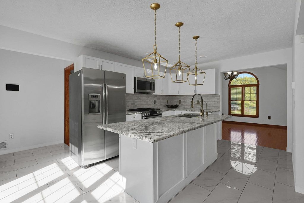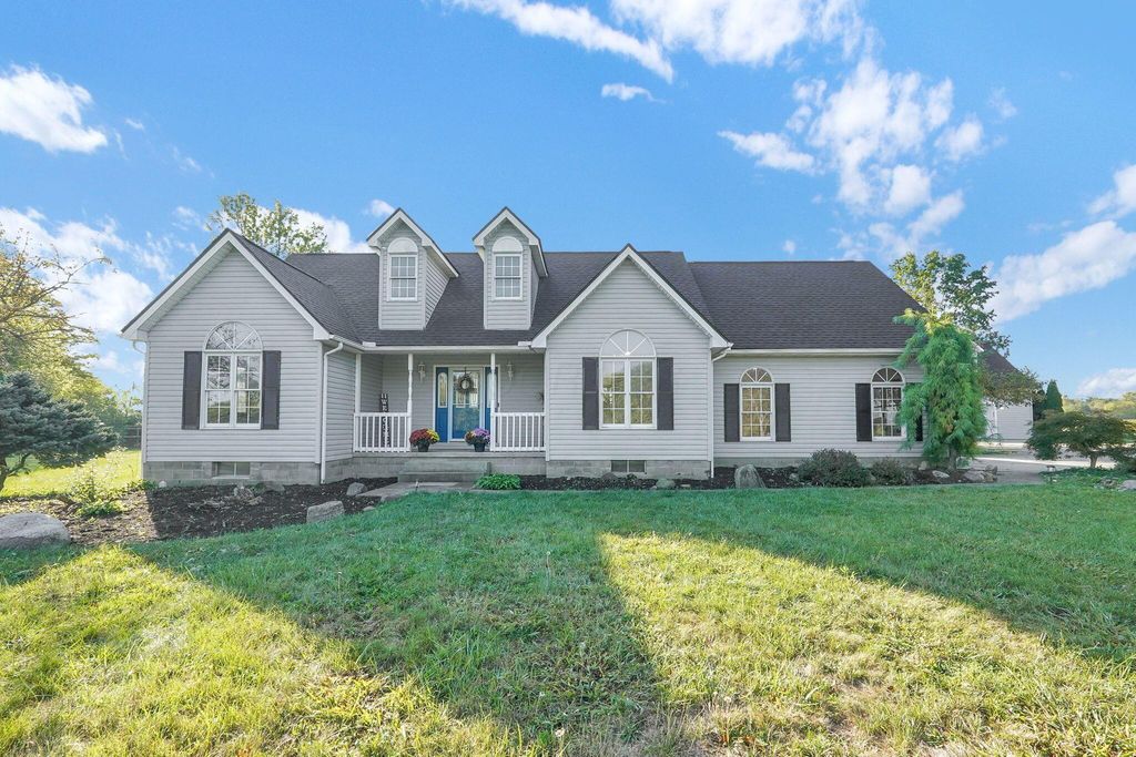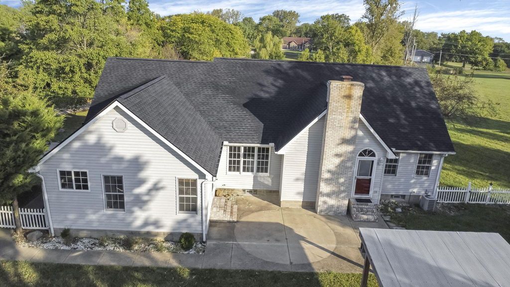 Open House (Tailgate Tour) October 4th from 1pm to 3pm, Welcome home to this gorgeous ranch nestled on nearly 5 acres, complete with a long, scenic driveway that leads you to a welcoming front porch perfect for relaxing evenings. Step inside the foyer and be greeted by soaring ceilings and a warm, light-filled living area accented by a striking fireplace. The heart of the home is the updated kitchen, offering granite countertops, a huge island, and plenty of space for gathering. The primary suite is a true retreat, featuring its own private walkout, a spa-like bathroom with a jetted tub, walk-in shower, and dual vanity bowls. Just off the kitchen is a second spacious living room, offering versatility for entertaining or cozy nights in. Across the home, you'll find two additional bedrooms and another beautifully updated full bathroom. The fully finished basement provides even more living space with a fourth bedroom, another full bath, a massive laundry area, and endless possibilities for a recreation or media room. Step outside and enjoy country living at its best: A detached two-car garage with a completely finished bonus room above"”perfect for a studio, office, or guest suite. A large concrete patio ideal for family gatherings and evenings around the fire. An extra outbuilding, perfect for storage or for anyone looking to embrace farm life.
