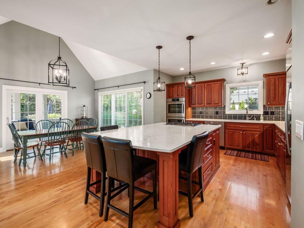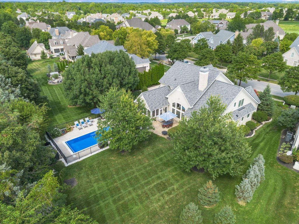 So many upgrades since purchase! Pull up the concrete drive and into this McVey custom built home. Vaulted ceilings and built in shelving throughout this gorgeous home. Kitchen and owner suite updated in 2020! The main level owner suite bath was remodeled and features a zero entry roll in shower w/quartz vanity. The kitchen has new quartz counters, new stainless steel Bosche appliances & updated lighting & opens to the screened in porch. Upstairs are three large bedrooms w/huge closets. The finished lower level has the 5th bedroom + a full bath, workout room, 2 egress windows. work space desk and still plenty of room for storage. The gorgeous pool (installed in 2020) is surrounded by trees for privacy. Ideally situated to the side of the lot allowing for plenty of greenspace to play!