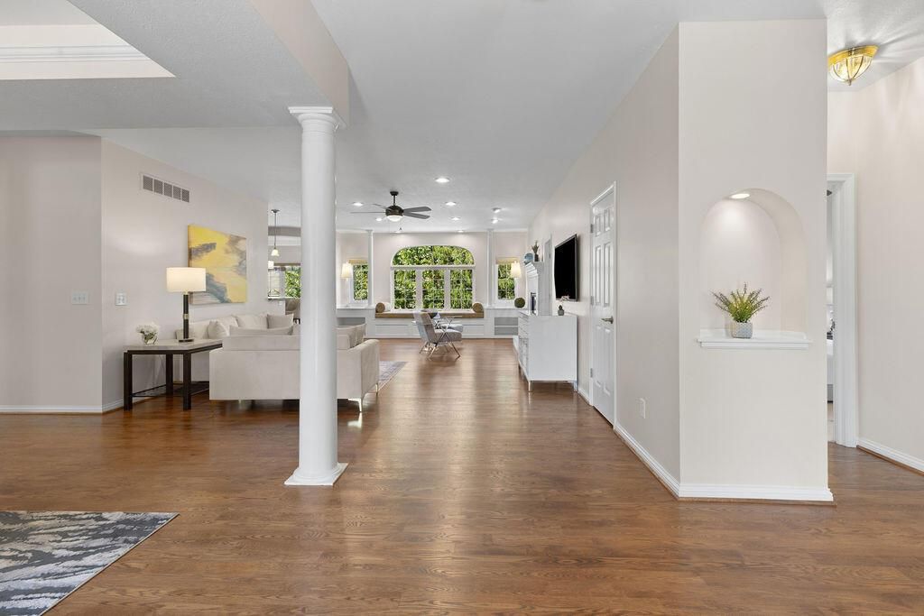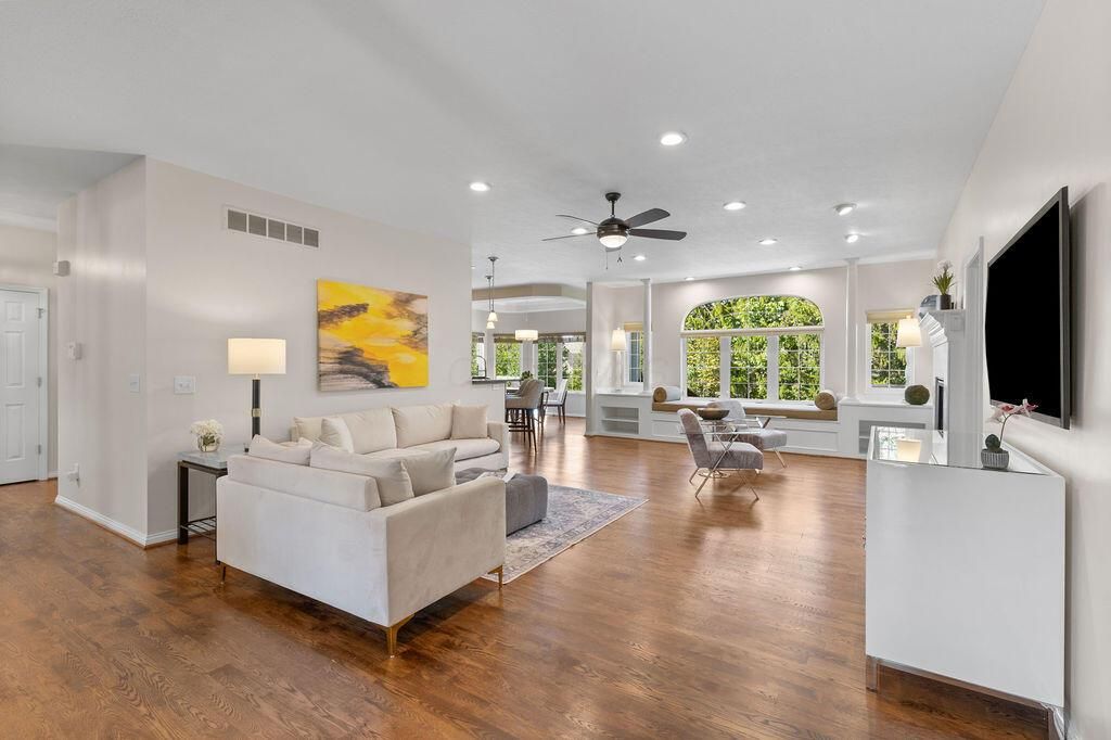 Beautifully maintained ranch home set on a quiet, private cul de sac with mature trees, just minutes to shopping, dining, parks, the airport, downtown, and New Albany. A light filled open layout centers on the great room with fireplace and flows to a generous den or office for work, hobbies, or extra lounge space. The kitchen features granite counters, a gas cooktop, double ovens, and a walk-in pantry. The private primary suite offers a tray ceiling and a spa style bath. Convenient first floor laundry adds everyday ease. A full lower level provides excellent storage or the option to create additional living space. Recent updates that add peace of mind include a newer roof, newer HVAC with furnace and AC, a new hot water tank, refreshed lighting and ceiling fans, and newer hardwood floors. Practical, low maintenance, and close to everything. This one checks all the boxes.