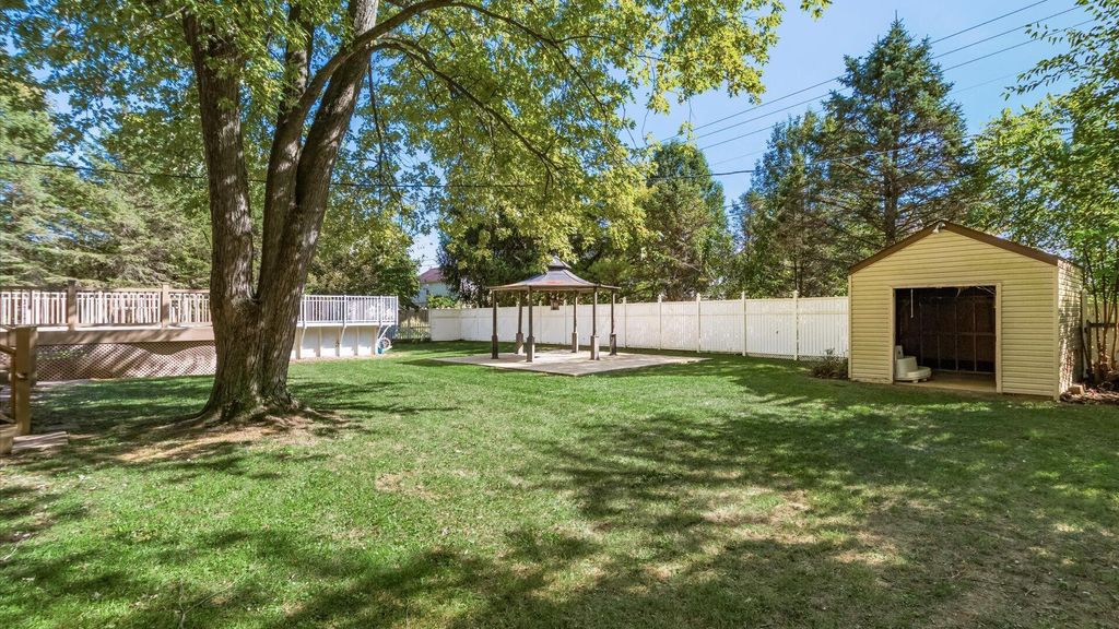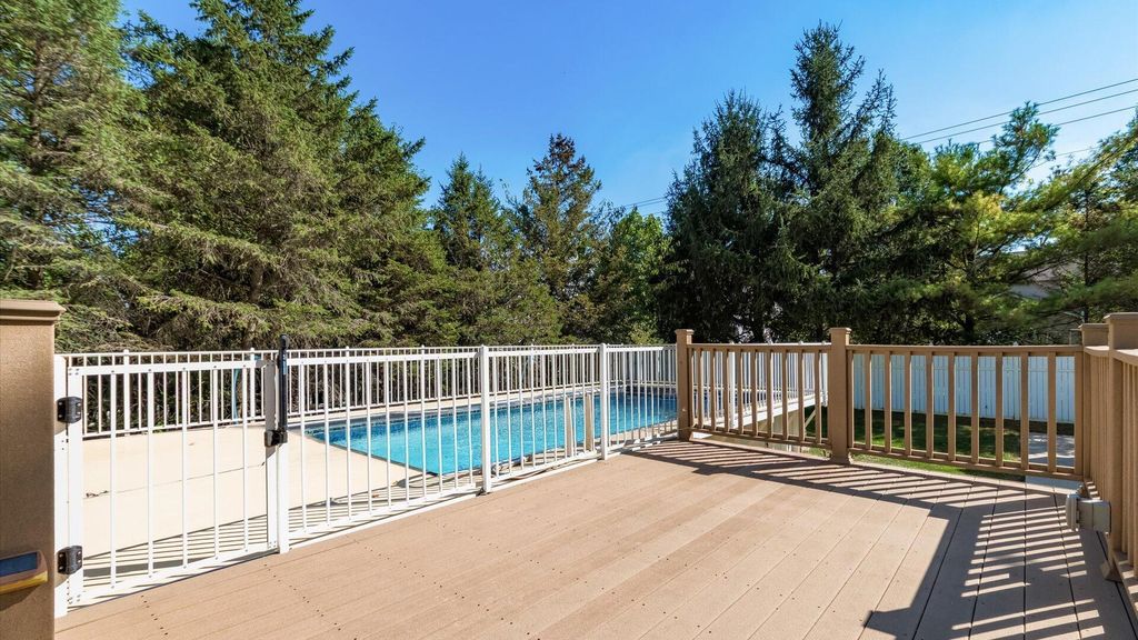 Look no further... this home is a perfect place to entertain family & friends. First time offered for sale and custom built for the original owner. Picturesque setting on a 1/2 acre lot situated among mature trees sitting nearly 115' off the road. This beautiful 2 story home features a covered front porch overlooking the peaceful front yard. Extra wide driveway offers ample parking for the pool party / bar-b-que in the fabulous fenced rear yard featuring an idyllic oasis with extensive multi level composite decking leading to the heated swimming pool and offers quick access to the 1/2 bath, 3 season's Room w/ ceramic tile floors, vaulted ceiling w/ sky lights and the 480 sq. ft. concrete patio with gazebo. The interior offers an open floor plan with lots of natural light in the Kitchen and Dining Rm. and features oak raised panel cabinets, doors & flooring. Adjacent family room with a brick raised hearth fireplace. First floor laundry, 1/2 bath and front to back Living room complete the first floor. Upstairs offers 4 bedrooms and 2 full baths. Primary suite features a large walk in closet and private 'en suite. The lower level could be great rec area featuring poured walls and approx 800 sq foot ready to be finished.