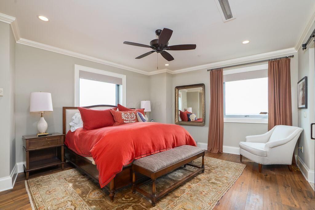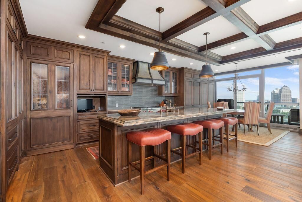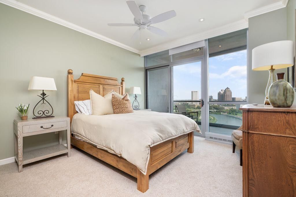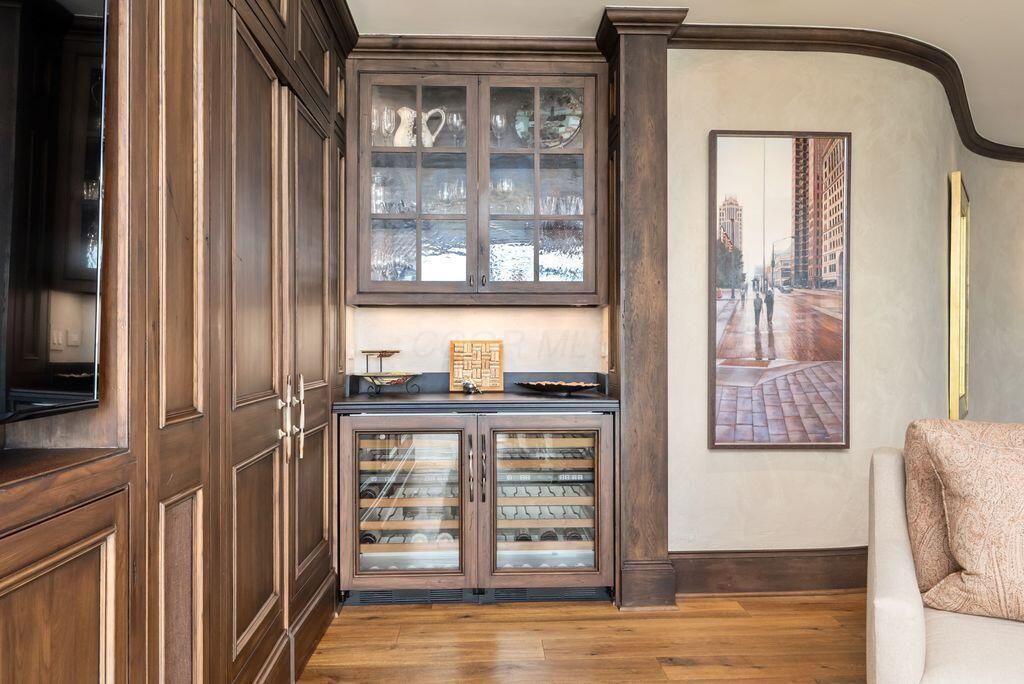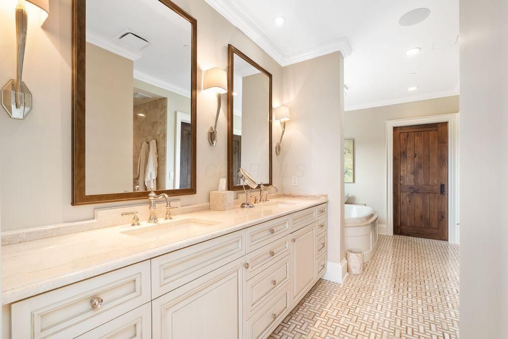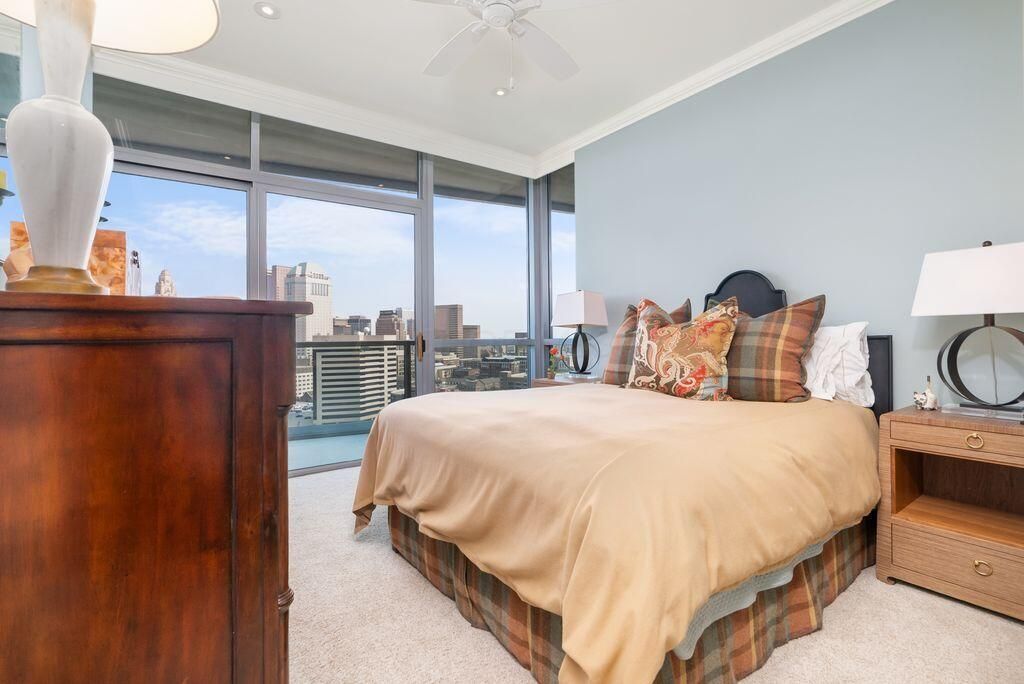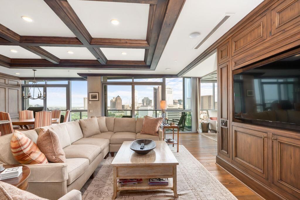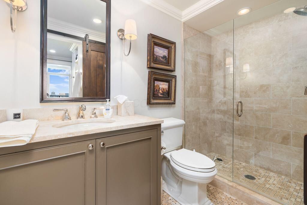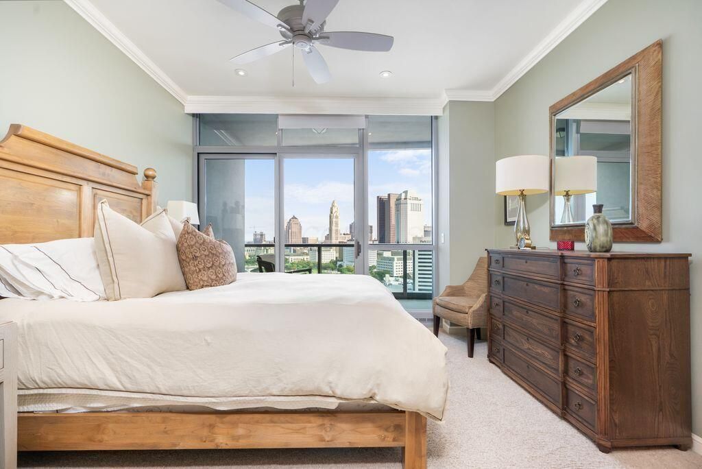 Absolutely immaculate, one-of-a-kind penthouse in the full-service Miranova building - located in the heart of downtown Columbus! No detail was overlooked in the buildout of this custom 3,100 sqft residence sprawling across the entire eastern corner of the 22nd floor. Three spacious bedrooms w/ensuite bathrooms, a den and two living rooms - one with gorgeous coffered ceilings w/matching built-ins & a wet bar - and the other with two walls of windows & a stone gas-log fireplace - both open to the Chef's kitchen that features an oversized island, Wolf range w/custom hood, paneled SubZero fridge & a walk-in pantry w/coffee station. Entry to the primary suite is through wood-paneled double doors and features a den/ seating area and a spa-like bathroom w/double sinks, a soaking tub walk-in shower & access to the laundry room. Enjoy breathtaking views of the Columbus skyline & Scioto River from every room or your private 42ft balcony! Plus, an enclosed two-car garage. Miranova amenities include: 24/7 doorman & concierge services, multiple resident lounges, fitness facility, swimming pool, guest apartment & so much more!