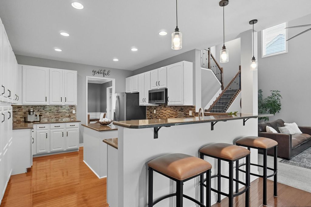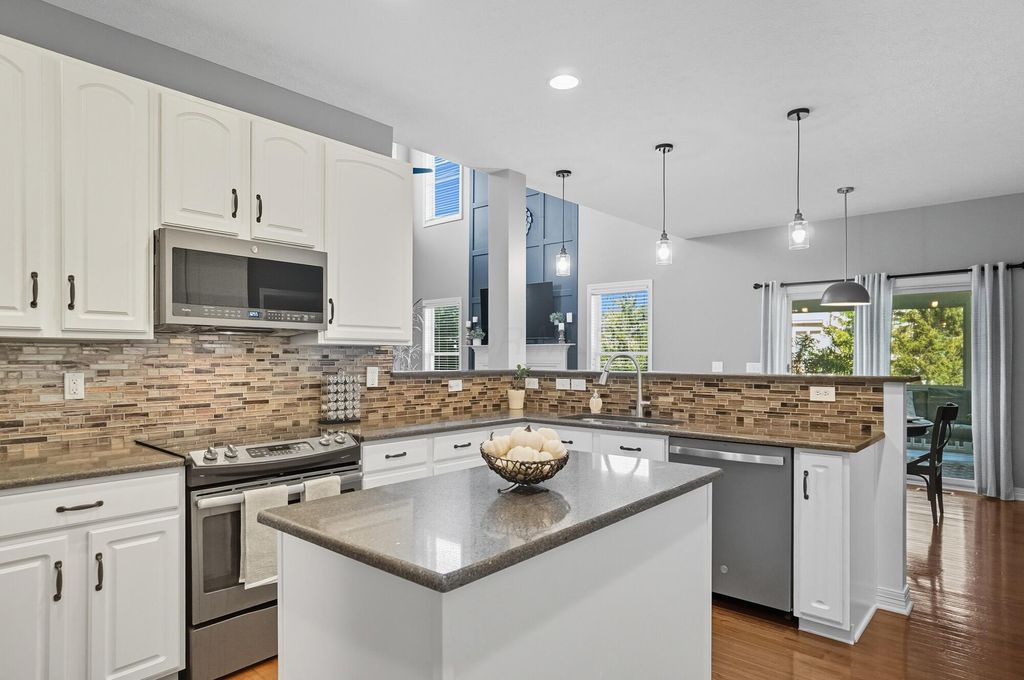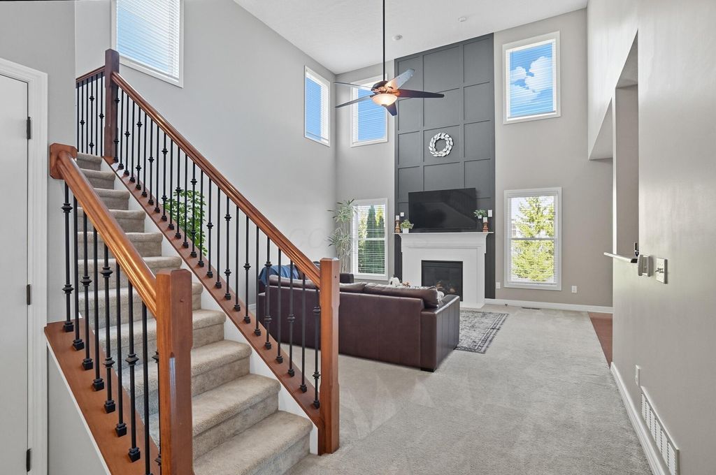 Welcome to this beautiful 4 bedroom, 2.5 baths open concept home with soaring cathedral ceilings! The home is conveniently located in a nice community with a pool, basketball courts, park sidewalks and schools. The home suits today's lifestyles! It offers high end finishes throughout, including hardwood floors., custom woodwork, built ins, glass tile backsplash, granite counters in kitchen & baths, an extra deep garage and a full basement which is already plumbed for a bath. The main level includes a den with built in desk and bookshelves, dining room with wainscoting and crown molding & a two-story great rm. with a feature wall and gas log fireplace. The kitchen offers tons of storage and counterspace along with a center island, granite countertops, new dishwasher, glass tile backsplash and slate appliances. A first-floor utility room too. The upstairs offers a versatile large loft which could be another home office or place to relax. There are 4 bedrooms and 2 full baths. The owner's suite has vaulted ceilings, a deluxe bath with a shower, soaking tub, double sinks and a walk-in closet. The other rooms are a nice size with excellent closet space. The full basement has sturdy built in shelves and tall ceilings with plenty of potential for additional finished space. It currently is being used daily for a play area, workout area and TV room. Outside enjoy the newly screened in porch, brick paver patio and the spacious yard!