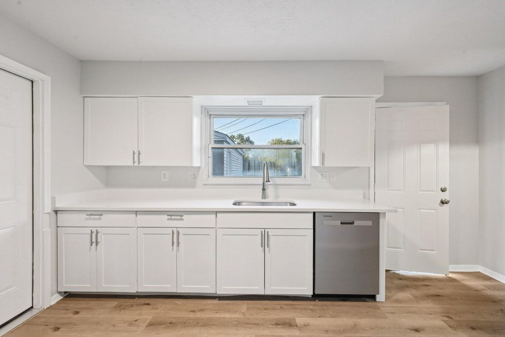 Looking for a remodeled ranch at an affordable price??? This beauty sits on a HUGE .23 acre lot and offers 925 sf, 3 large bedrooms, 1 bath, 1.5 car garage, spacious back patio, and a fenced yard. The stunning kitchen boasts white cabinets, quartz countertops, stainless steel appliances, and modern fixtures. Recent updates include modern bath (w/ new shower surround, toilet, & vanity), new roof, vinyl windows, newer HVAC/WH, new flooring, updated electric/lighting, fresh int/ext paint, pristine landscaping, and more. Don't miss out on this one!! No FHA due to 90 day flip rule