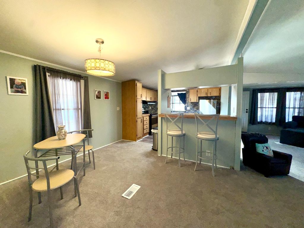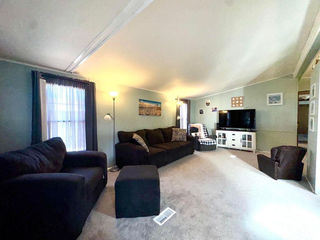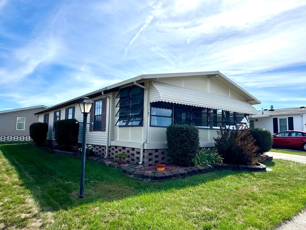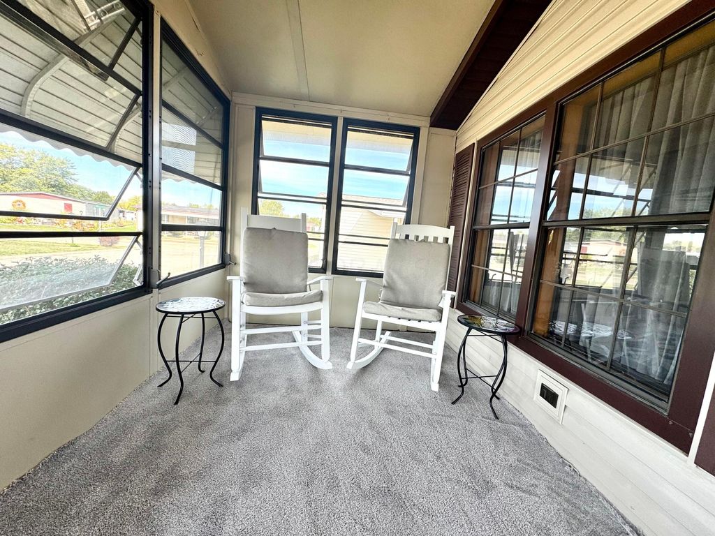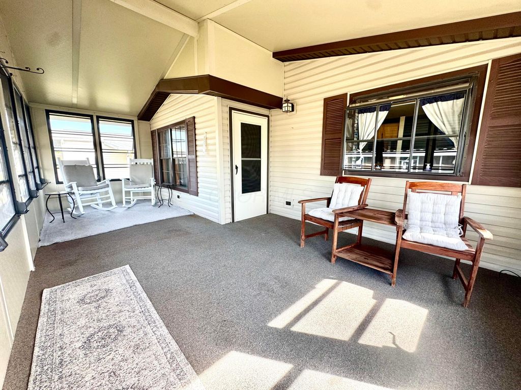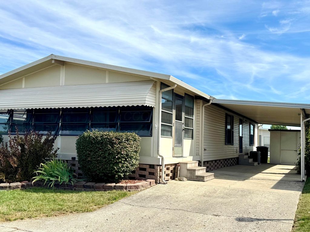 Welcome Home to Enchanted Acres. This well cared for 55+ community is a perfect place to settle in and call home. The spacious and beautiful screened porch welcomes you into this tastefully decorated home, offering an open concept floor plan fully applianced kitchen, breakfast bar and dining area. A grand owners en suite offers a large closet and additional storage. The spacious 2nd bedroom is adjacent to the full hall bath, laundry/mud room will lead you to the rear door out to the covered concrete patio, off street parking & storage shed. Gorgeous mature landscaping surrounds this beautiful home. Fresh paint throughout, new H20 tank, Call for your private showing today! More affordable than most rents in the area. All offers are contingent upon park approval.