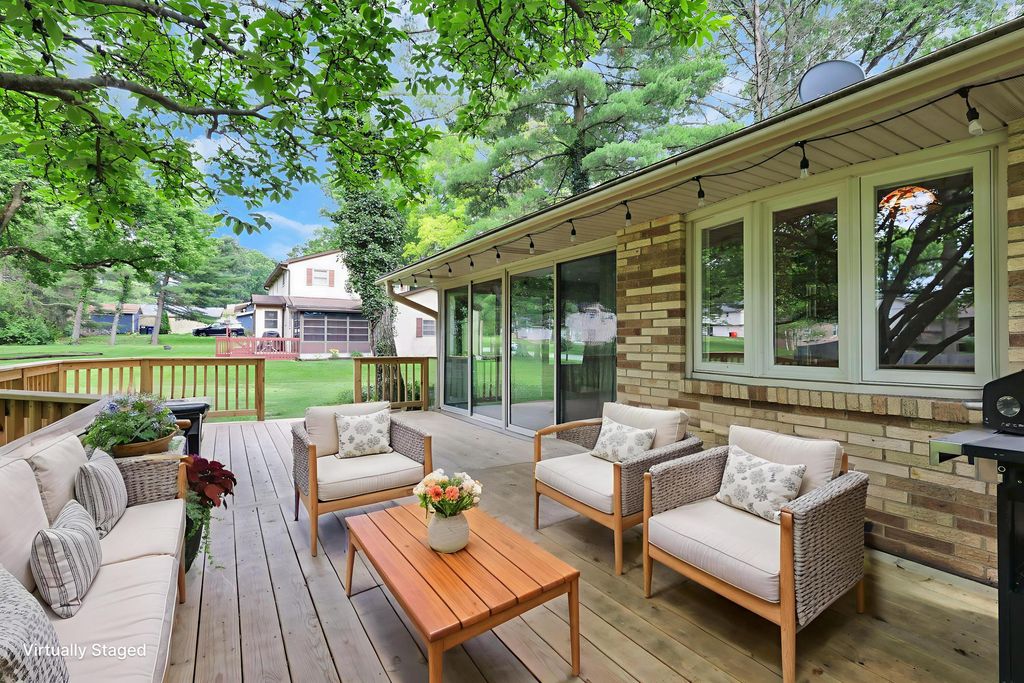 Come discover a true gem in the Canyon, Laurel Canyon, that is! This former Parade of Homes four-level split 3 bedrooms, 2.5 bath offers timeless character, thoughtful updates, and flexible living spaces, set on nearly half an acre in this distinctive community, where every home is unique, lots are spacious, and mature landscaping creates a warm, established feel. As you enter, you're welcomed by an open and inviting main level featuring a dining area and a living room with a cozy fireplace and beautiful original hardwood floors. The kitchen with an additional eating space sits just off the dining room area, making it easy to stay connected while cooking and/or entertaining. The hardwood floors continue to the upper level, leading to 3 comfortably sized bedrooms and 2 full baths. Down one level, the large family room offers new LVT flooring, a second fireplace, wet bar, half-bath, and walkout access to a private patio perfect for entertaining. One more level down, enter into a bonus room that leads to glass doors opening to a quiet office space with built-in bookshelves. In addition to the home's expansive layout, just off the kitchen, the bright Florida room leads to a sizeable deck and backyard, offering a flexible space for dining, relaxing or entertaining year-round. This Laurel Canyon beauty blends warmth, space, and charm in a setting that truly feels like home!