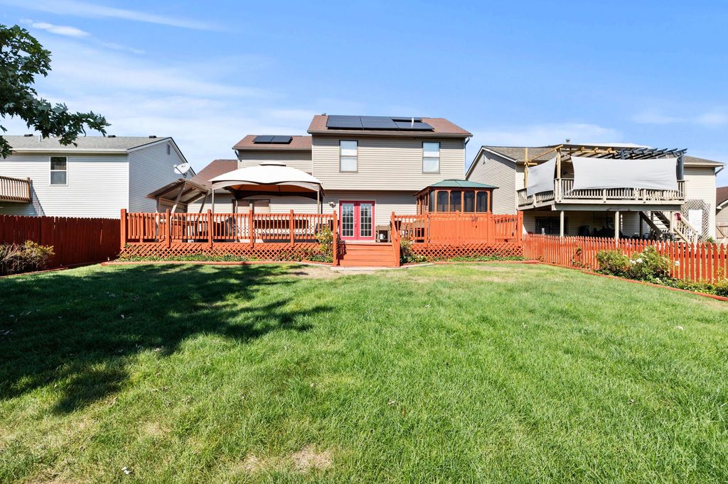 Wow! Immaculately maintained 4-bedroom, 3.5-bath home with an attached 2-car garage in Hamilton Local Schools, all with Columbus taxes! From the moment you walk in, you'll be greeted by gleaming hardwood floors on every level and an upgraded chef's kitchen featuring granite counters, stainless steel appliances, and under-cabinet lighting on dimmers. Upstairs, you'll find four spacious bedrooms filled with natural light and thoughtful built-ins, creating the perfect blend of comfort and function. The finished lower level expands your living space with a full bath, glass block windows, and the flexibility for a 5th bedroom or home office. Entertain with ease in the traditional floor plan that flows out to a large deck with gazebo and outdoor kitchen, plus a hot tub overlooking the fully fenced backyard making it a true backyard retreat. Major updates bring peace of mind: HVAC (2016), hot water tank (2019), roof (2012), solar panels (2020 that are paid in full!). The home is also wired for a generator, ensuring reliability when you need it most. Additional highlights include a whole house fan, hot/cold water in the garage, upgraded floor joists, and a 3-car driveway for extra parking. This home offers the perfect mix of style, efficiency, and functionality "” designed for both everyday living and unforgettable entertaining. Don't miss your chance to make 1097 Rendezvous Lane your new address!
