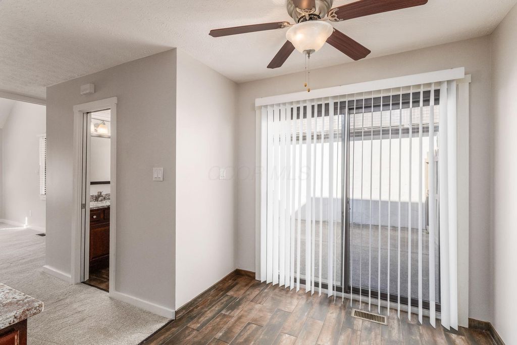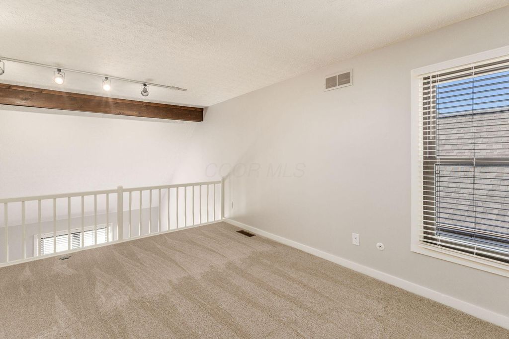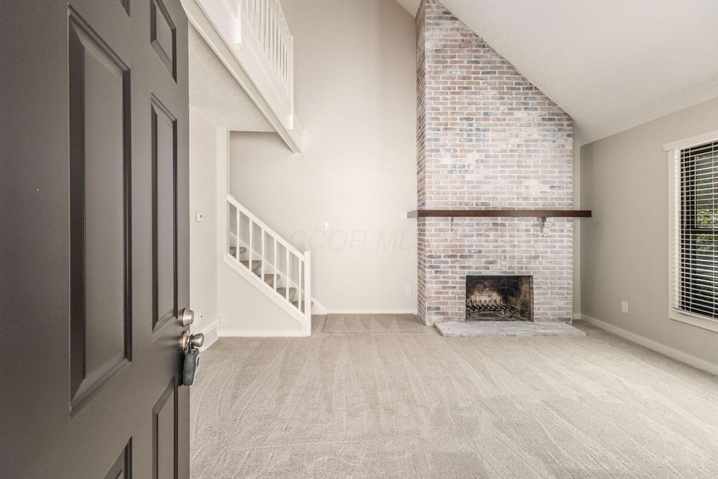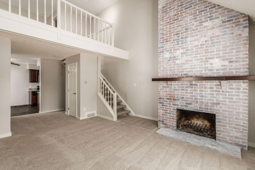 Fantastic end unit in the newly developed Edinburgh Condominiums! Nearly everything is new in this vaulted one bedroom condo. Walk into the vaulted great room with new carpeting. The brick floor to ceiling fireplace was whitewashed and is ready for the cool fall evenings. The main level half bath has been updated. Walk into the kitchen w/new stainless steel appliances, tile flooring, & a sliding door to the private patio! Upstairs is a a large loft bedroom with an updated bath and and entire wall of closets. Maintenance free living in a perfect Dublin location!