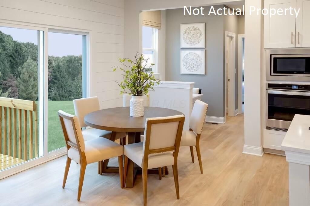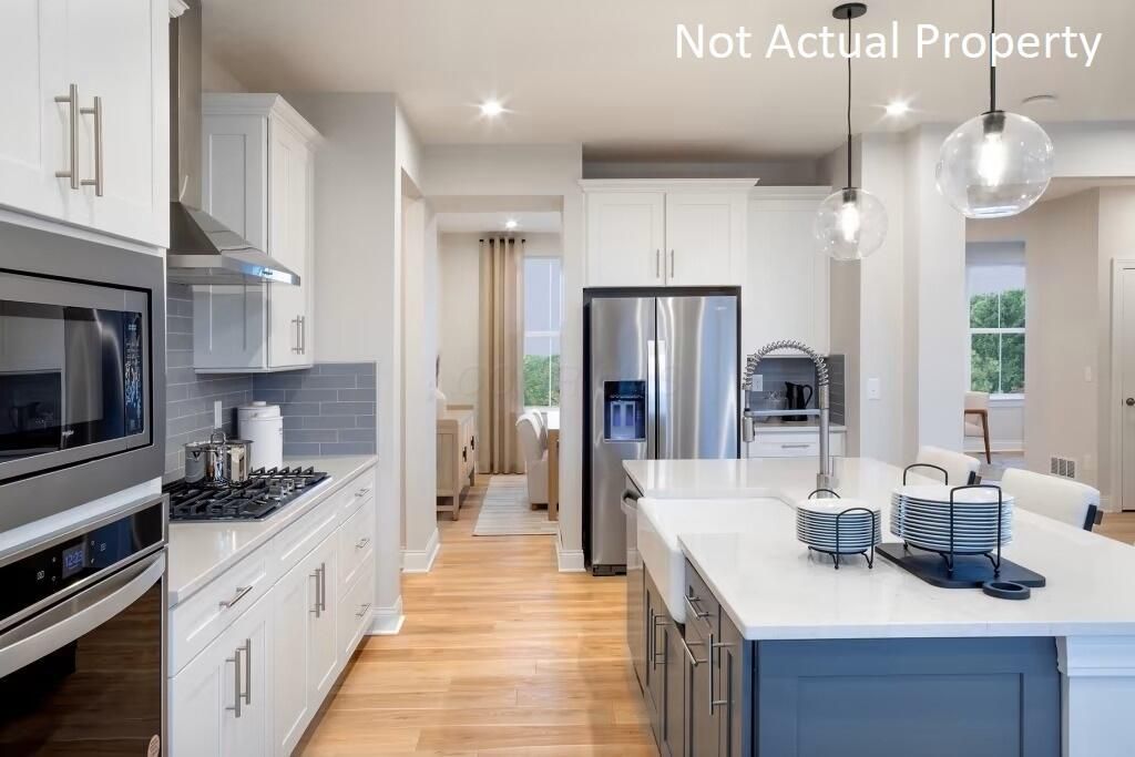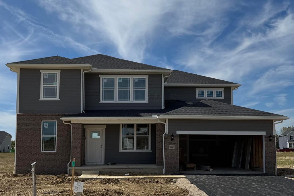 ESTIMATED COMPLETION BY THE END OF OCTOBER. This is a spectacular new 5 bed 4.5 bath home in Homestead at Scotts Farm. The gourmet kitchen has built-in stainless Whirlpool gas appliances, dana white purestyle cabinets, calacatta gold quartz counters, catch ice gloss frost tile backsplash, an upgraded stainless legend sink with a sleek moen faucet, beautiful sloane pendant lighting, a large island with space for seating, planning center and a spacious walk in pantry for storage. The owners suite has a private bath with a double bowl vanity, warm gray walk in tile shower, enclosed toilet area, linen closet and a great walk in closet. An add'l 3 beds with walk in closets, 1 private bath, 1 hall bath with a double bowl vanity and a large multi use loft. A 1st floor guest suite with a private bath and walk in closet, an eating space, great room, formal dining space, versatile flex space with french doors, laundry area with a utility sink, powder room, boot bench and a 2 car garage with storage space. Full 9' basement with rough in plumbing and an egress window. Beautiful luxury vinyl plank flooring throughout most of the main level. Brushed nickel finishes and fixtures. White rail and wrought iron spindles. Smart home features included. Window coverings included. Great location, close to US-33 and SR-42, with quick access to I-270 and many everyday conveniences like groceries, banking, pharmacies, dining and more. Interior photos are of a model, not the actual home.