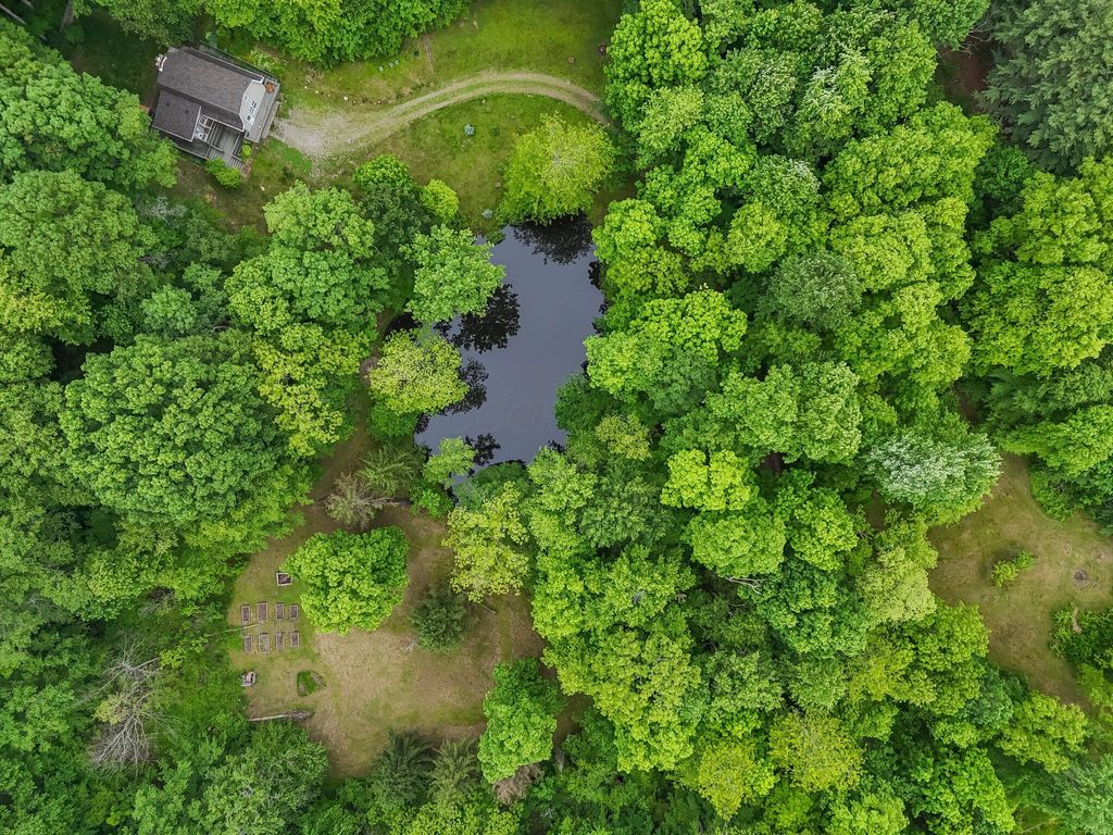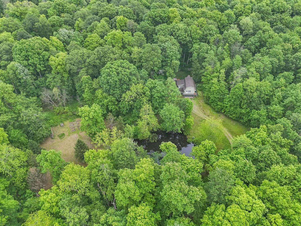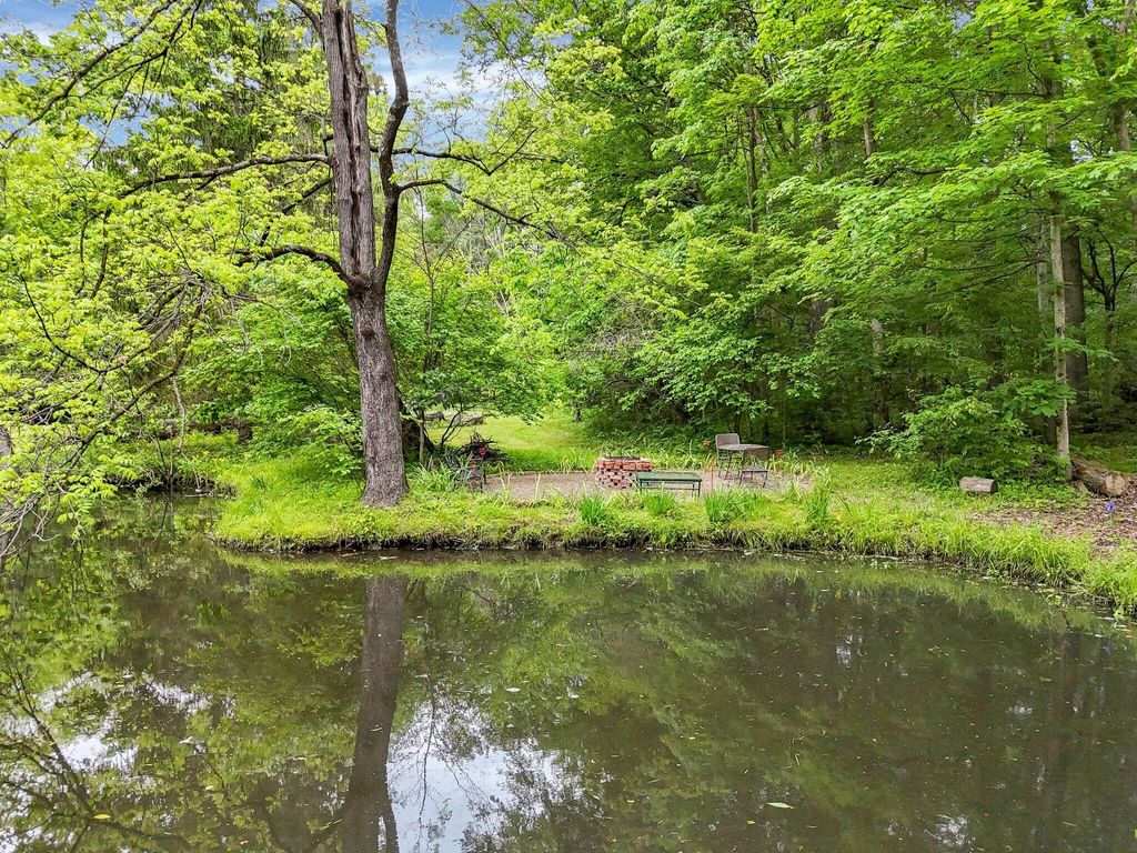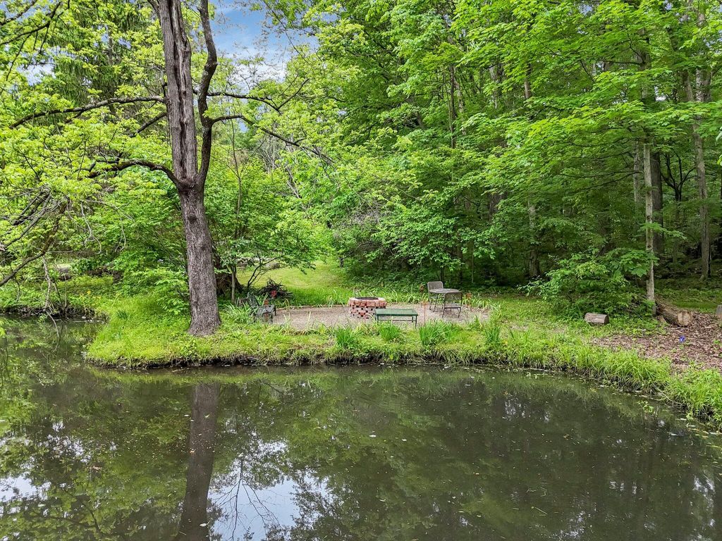Calling all nature lovers & homesteaders! This property is the perfect canvas for creating your dream oasis, complete with a fenced orchard, raised garden beds, a large pond, & acres of serene wooded land. From the moment you arrive, the winding, tree-canopied drive sets the tone"”you'll be in love before you even set eyes on the charming 1,500-sqft barn-dominium style home. Inside the two-story layout offers 3 bedrooms & 1 full bath. The main level features an open-concept living room and kitchen with quartz countertops and a cozy cabin-like feel. A wood-burning fireplace anchors the living space, creating the perfect spot for gatherings. The primary bedroom & bath are conveniently located on the first floor, while two additional bedrooms upstairs provide room for family, guests, or even a home office. Built into the hillside, the lower level includes a two-car garage, laundry/mudroom, & extra storage. Recent upgrades add peace of mind and comfort, including a brand-new roof (2025) & high-efficiency minisplit zone heating and cooling system (2022) that complements the original baseboard heat. Multiple decks & balconies surround the home, giving you plenty of choices to enjoy your morning coffee with a view. By the pond, a stone BBQ and firepit area invite you to host friends and family while soaking in the natural surroundings. The land itself is rich with opportunity"”walnut, paw paw, pear, & peach trees, open clearings, raised beds for gardening, walking trails, and even a chicken coop with run. Whether your passion is homesteading, evenings by the water, or simply exploring your own wooded acreage, this property delivers. Despite its private feel, the home offers quick access to major routes including I-70, Broad St, US Rt 40 & SR 161, making it easy to reach Columbus & all of Central Ohio's amenities. Move-in ready as a retreat, flexible enough for expansion, and versatile enough to shape into your dream estate"”this is a rare opportunity you won't want to miss!