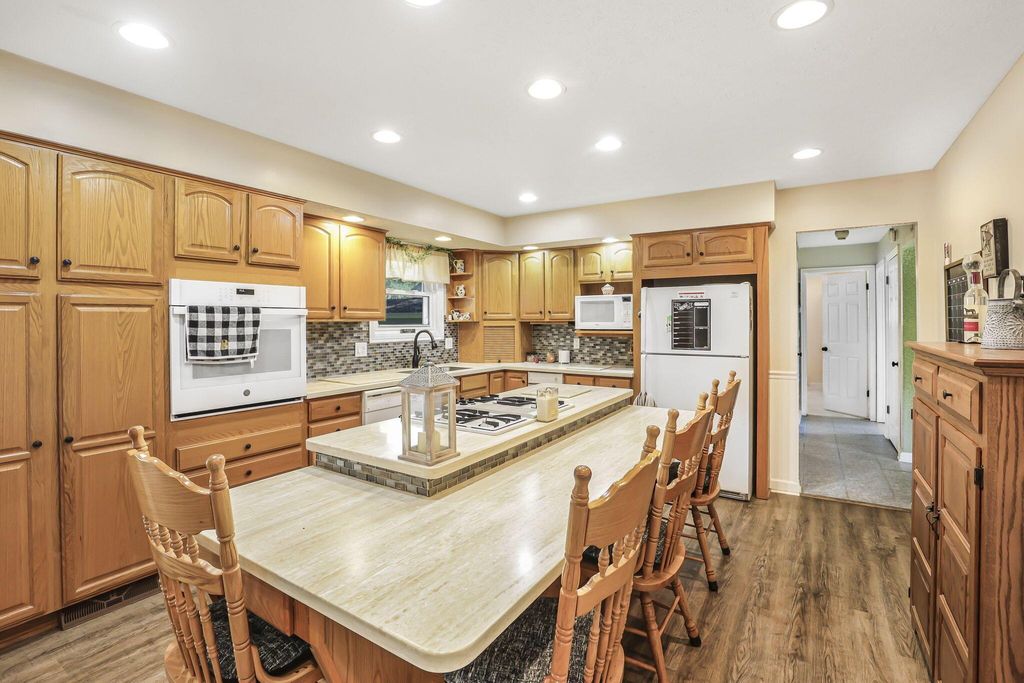 Calling all buyers who have car collections or motorcycles, RVs, trailers or who just want to have a really cool 'she shed' or 'man cave'. Welcome Home to this 4 bedroom, 2 bath home with attached 2 car garage on nearly an acre in Beechwood Trails! There is a fabulous detached 24' x 36' enclosed and volume ceilinged outbuilding with a 12' x 36' covered 'lean to' that currently houses a 35' 2023 RV - that is also for sale. The cape cod style home features beautiful luxury vinyl floors floors in the living and dining rooms and an updated cook's kitchen with a huge island plus an eating area. Walk out the sliding glass door to a composite deck with railing and steps to grade overlooking the beautiful .92 +/- acre back yard. Primary bedrooms on both floors with updated full baths on both. Mud room off kitchen leads to the 2 car attached garage that is heated by its own furnace and is adorned with hot and cold water spigots. Finished, poured wall basement with gas log fireplace in the rec room. COME SEE THIS FABULOUS PROPERTY THIS SUNDAY AT THE OPEN HOUSE - OCTOBER 5TH - FROM 2-4.