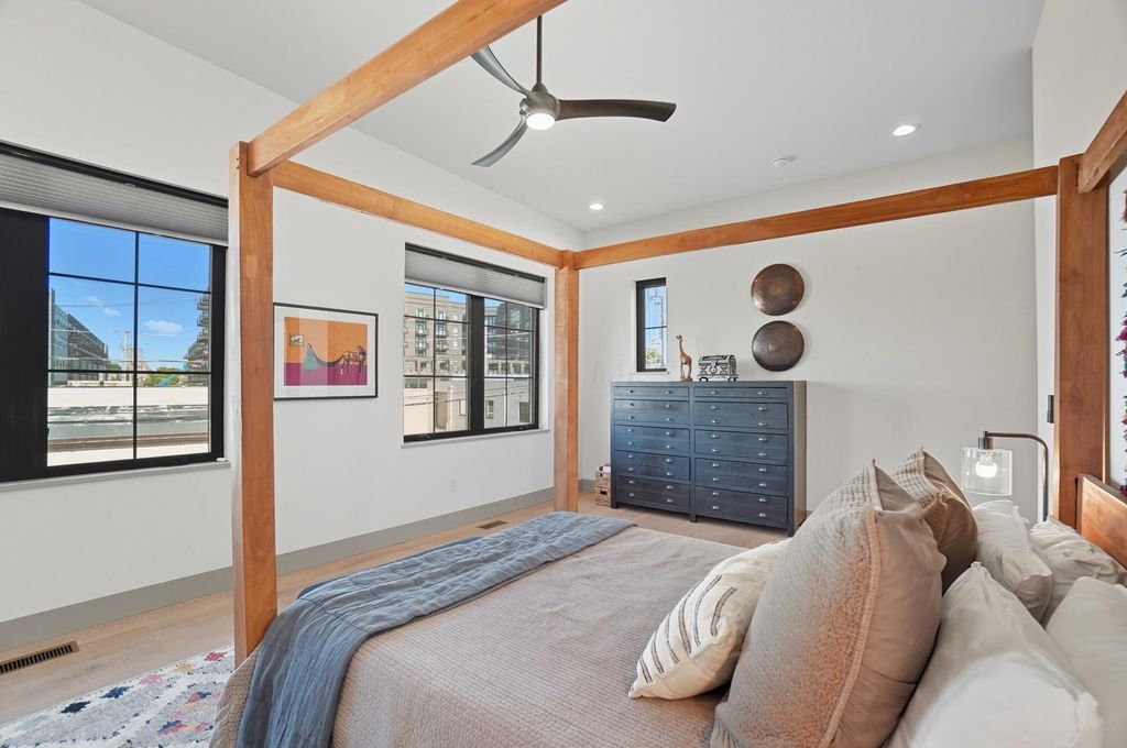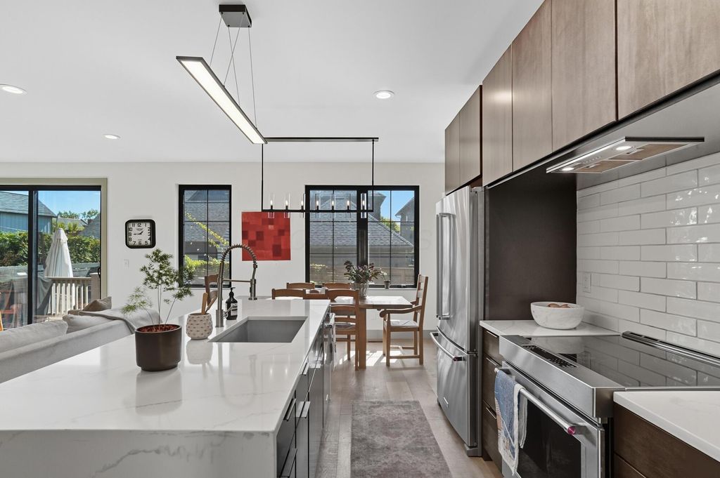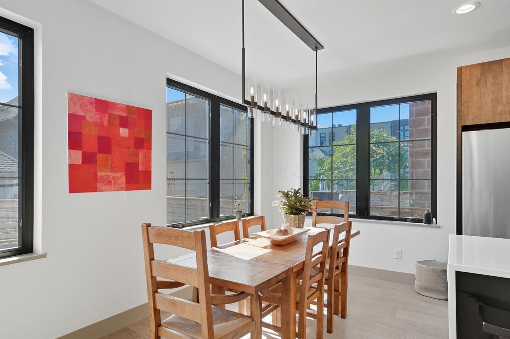 Experience the perfect blend of modern design and urban sophistication in this stunning property. Over 3,000 square feet of thoughtfully designed open living space, highlighted by soaring ceilings and oversized warehouse-style windows that flood the home with natural light. Boasting 4 spacious bedrooms and 3.5 luxurious bathrooms, every detail in this home is elevated with quality finishes and contemporary flair. The gourmet kitchen is a true showstopper, featuring sleek dark cabinetry, white quartz countertops, a waterfall island with seating for four, high-end stainless appliances, and designer lighting. Perfect for entertaining or everyday living. The open-concept layout seamlessly connects the kitchen, dining, and living areas, creating a bright and inviting space ideal for gatherings. Just beyond, a comfortable living room with clean modern lines provides the perfect place to unwind. Retreat to the expansive primary suite with vaulted ceilings, custom walk-in closet, and a spa-inspired ensuite bath. Stylish design choices and wide plank hardwood floors continue throughout the home, ensuring a cohesive and elegant aesthetic. Enjoy the convenience of a large 2-car attached garage and the peace of mind that comes with a 15-year, 100% tax abatement on the structure"”a rare and valuable opportunity in one of Columbus' most desirable neighborhoods. Located just moments from the vibrant shops, restaurants, and galleries of the Short North, this home offers both style and unbeatable value in a prime urban setting.