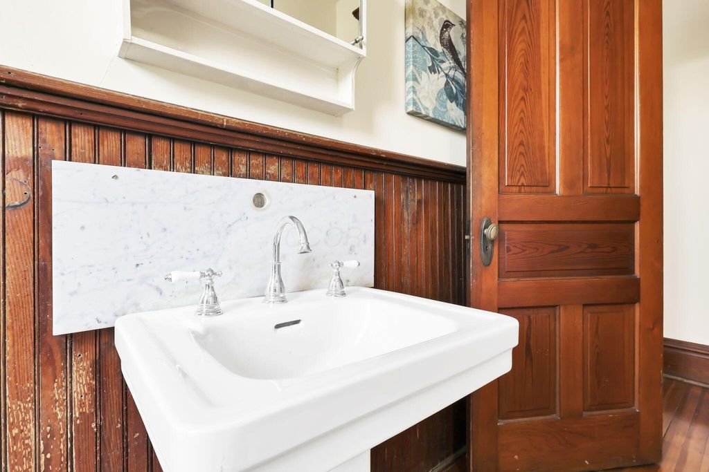 This gorgeous 3 story, 3477 square foot, 121 year-old brick beauty on a huge lot needs only you to make it complete. There is so much space here that you might not see your cat for a week. There is so much historic charm and character here, you may change jobs to insure you work from home. The splendid living room does a lot of the heavy lifting when it comes to living - but which first floor room will you make your living room? Which will be the library? Which will be your parlor? Your office? Do you need all four of these big bedrooms? Maybe one will be your office, craft room, media room, game room. Maybe you'll make one into the luxurious master bathroom you've always dreamed of. And that third floor - Oh My, it's gigantic and could be your family's family room, rec room, dance hall. Can you find the secret 2nd stairway? They don't make them like this anymore. Built in 1904 by John Hina and his construction company, this house is solid, solid, solid. You get maintenance free brick with a continually updated slate roof and stone foundation. You'll love everything about this home, from the intricate and stunning original fireplace mantels/surrounds to the gleaming original oak floors, to the huge wraparound lemonade front porch. This home has it all. Why do you get so much move-in ready house for so little money? Well, you're gonna want to make some updates - we've priced that in. You can't build this kind of architecture and details in the living spaces in 2025 but you can make some modern updates. You're going to want your own modern kitchen, maybe update the baths, throw in some new windows, maybe build a garage in your spacious backyard. Better you do it the way you want it then some flipper. One thing you won't have to worry about is the heat - a new boiler was installed just four years ago. Come take a look at this beautiful home, you'll fall in love with the house, the location, the block and the Old Oaks community. Sells AS-IS.