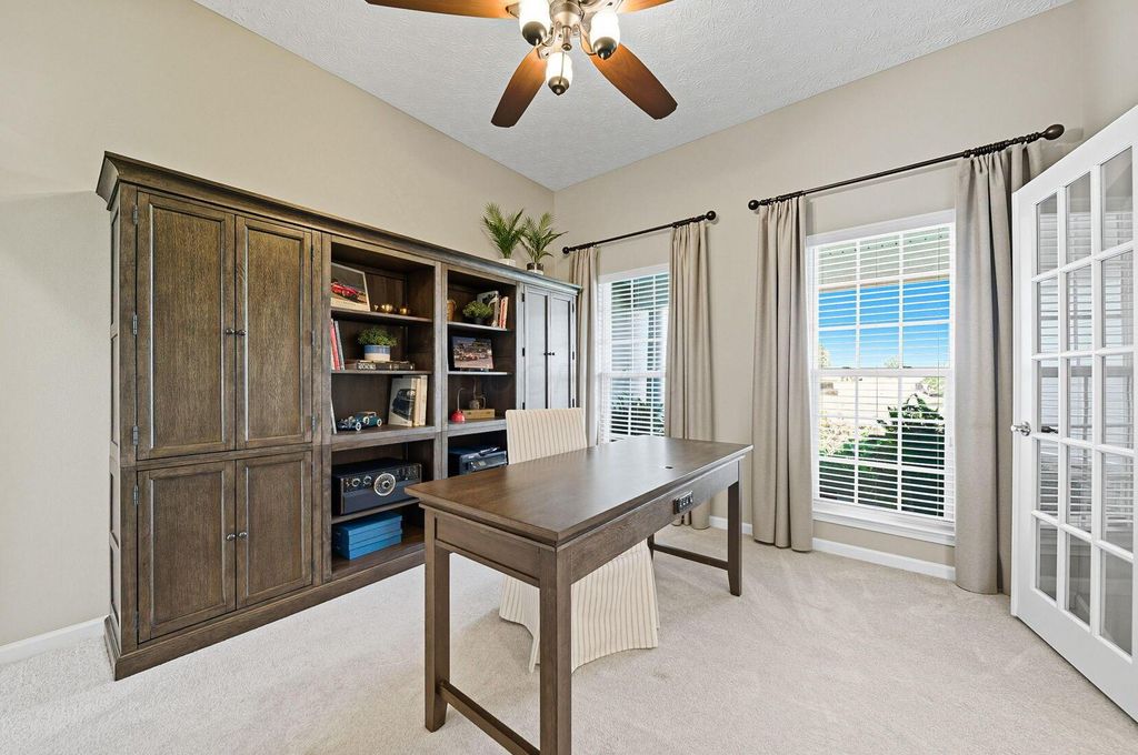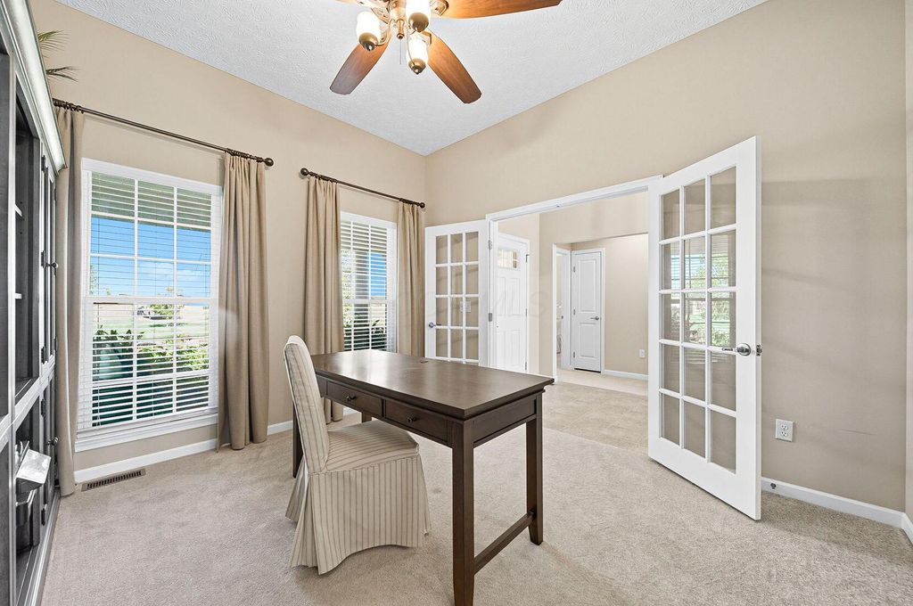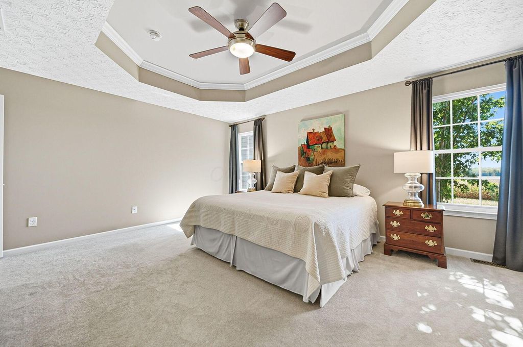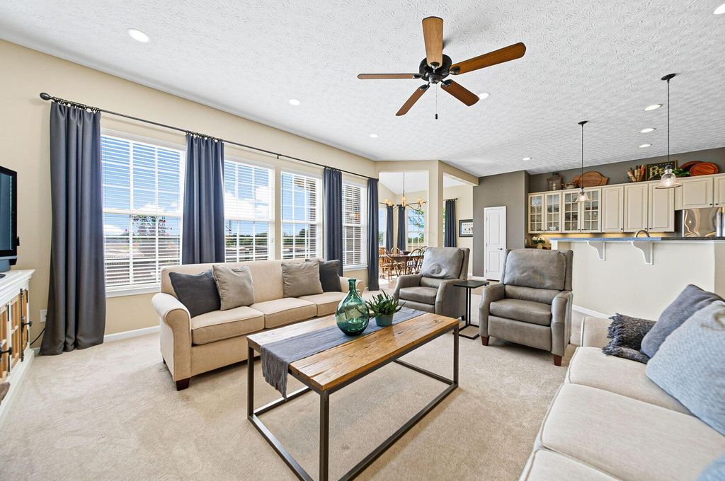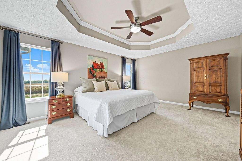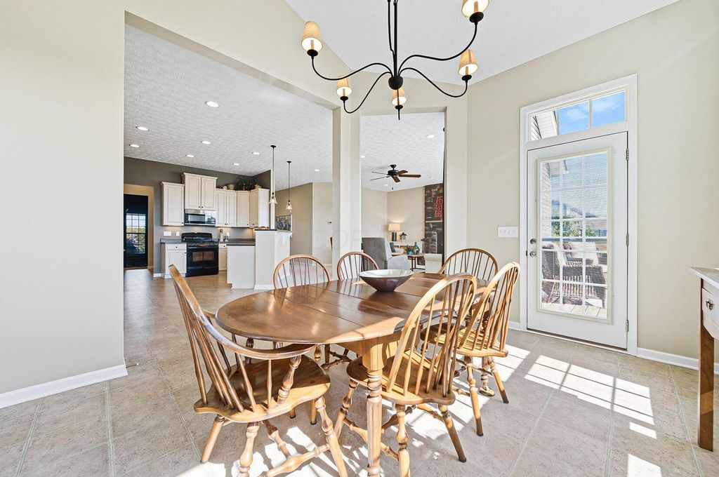Welcome to York Gate Estates, where quiet convenience meets single-floor living on a picturesque one-acre lot. This 3-bedroom, 2.1-bath ranch offers nearly 4,000 square feet, including a completely finished lower level with remarkable light and versatility. At the heart of the home, the kitchen features 42'' cabinets and opens to the dining and family rooms, which together provide a wall of windows that flood the space with natural light. A door leads from the dining room to the deck, where you'll enjoy expansive views of the backyard, pine-lined privacy, and farm fields that ripple like waves in the breeze. The owner's suite includes two closets, a dual vanity, and a shower with bench seating. Downstairs, the open rec room is filled with natural light from a wall of windows"”perfect for entertaining, relaxing, or playing pool. A large half bath with laundry hookups and a dog wash station adds convenience, while a nearby nook is ideal for a future bar area. Ample storage keeps life organized. Outside, summer fireworks sparkle in every direction, and everyday sunsets are framed by peaceful fields. All of this just minutes from shopping, schools, all while nestled in the comfort of a sidewalk-lined neighborhood. Don't delay"”schedule your showing in this beautiful home ASAP!