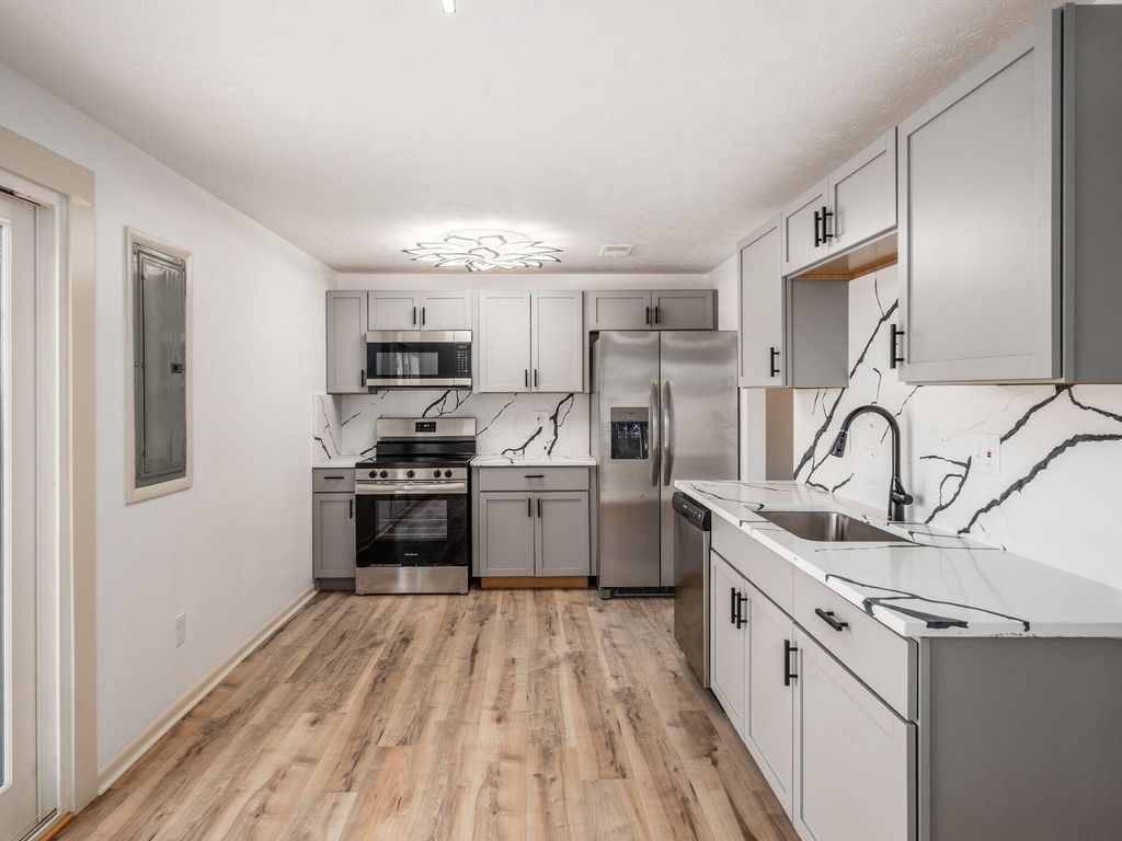 This spacious two story home with one car garage and a large backyard is a must see! Tastefully updated throughout with fresh paint, new flooring, new kitchen with stainless steel appliances and quartz, remodeled bathrooms, spacious bedrooms, modern lighting and much more! Easy to see and move in ready!
