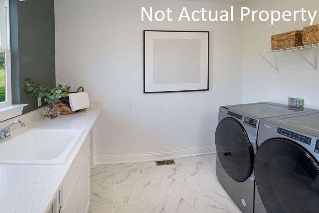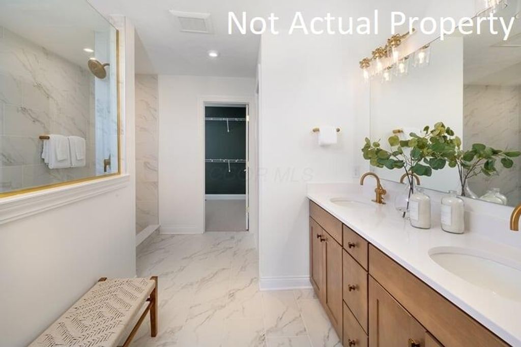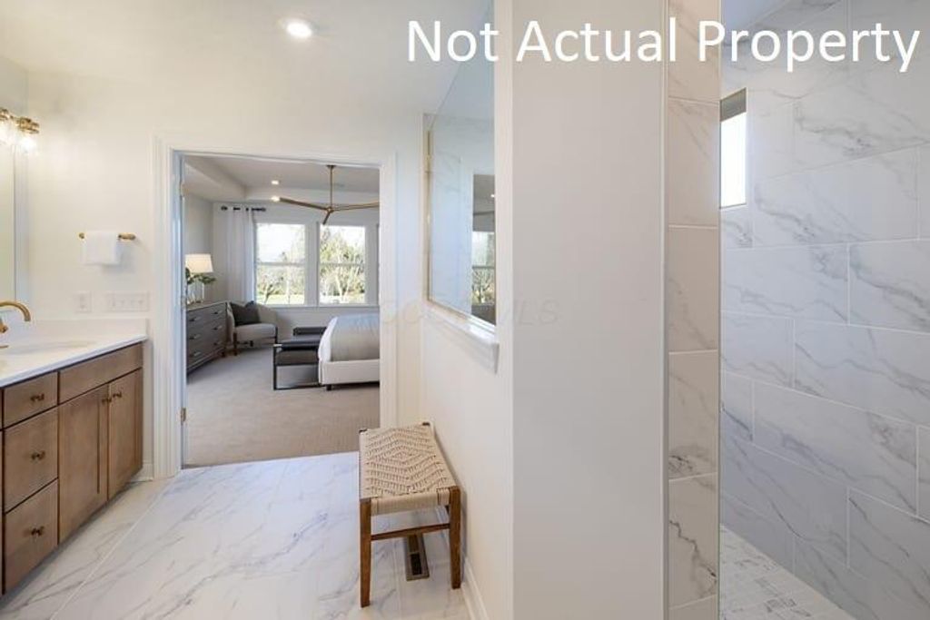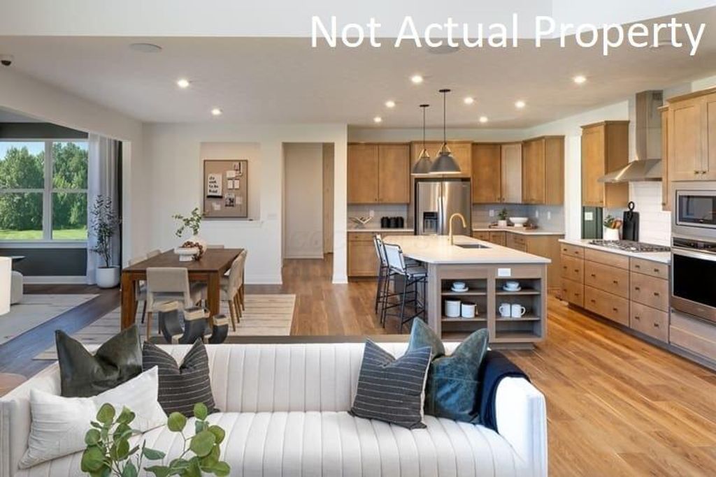 ESTIMATED COMPLETION BY THE END OF DECEMBER. This is a spectacular new 4 bed 3.5 bath home in Berlin Bluffs. The gourmet kitchen has built-in stainless Whirlpool gas appliances, landen maple white cabinets with 42'' uppers and a convenience package, miami vena quartz counters, gray gloss tile backsplash, an upgraded stainless legend single bowl sink, spacious island with space for seating, crosby pendant lighting and a walk in pantry for storage. The owners suite has a beautiful tray ceiling, separate owners retreat space, spacious walk in closet, linen closet and a private bath with a double bowl vanity, blanco maple quartz counter, enclosed toilet area, warm gray walk-in tile shower and a separate soaking tub. An add'l 3 beds with walk in closets, 1 jack-n-jill bath with a double bowl vanity, 1 hall bath and a large multi use loft. A two-story great room with a bianco white marble surround fireplace and white kenwood mantel, an eating space, formal dining space, flex space with french doors, boot bench at the entry, powder room, planning center and a 1st floor laundry with tilden purestyle white cabinets, miami vena quartz counter and a utility sink. A 3 car side load garage. Full 9' basement with rough in plumbing and an egress window. Smart home features included. Beautiful white rail and wood spindles. Luxury vinyl tile flooring throughout most of the main level. Brushed nickel finishes and fixtures. Easy access to everyday conveniences like shopping, banking, dining and more. Close to recreation such as the Glenross Golf Club and Alum Creek State Park. Interior photos are from a model, not the actual home.