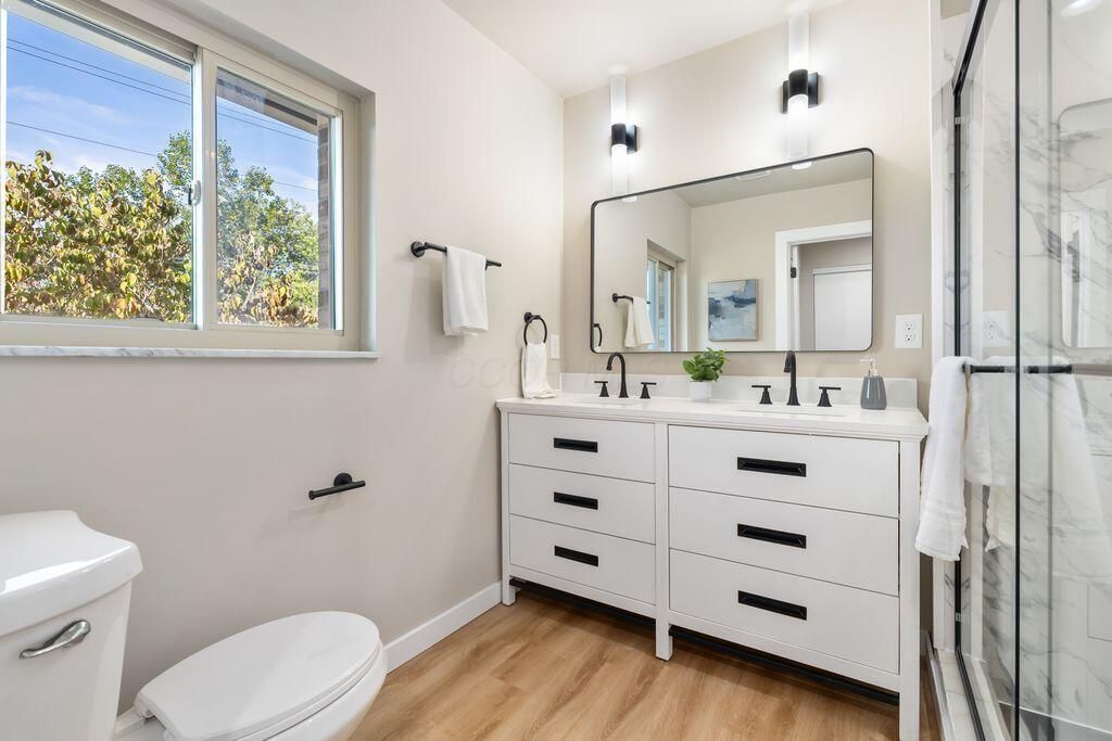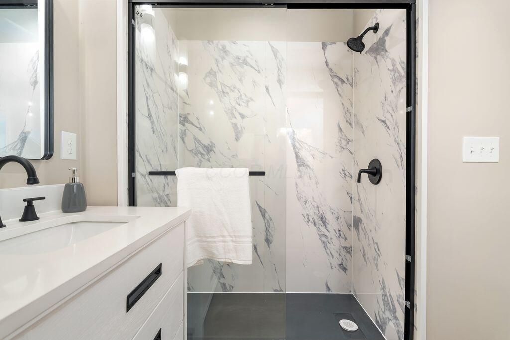 Step inside this stunning 5-bedroom, 3.5-bathroom home where modern updates and timeless character meet. The heart of the home is a fully remodeled kitchen featuring sleek quartz countertops, an island for gathering, and brand-new stainless steel appliances, all opening seamlessly into the dining area. Just beyond, the soaring cathedral ceilings and expansive windows in the living room create a bright, airy retreat with views of the fenced backyard. The main level also offers the convenience of first-floor laundry and flexible living spaces designed for both everyday comfort and entertaining. Upstairs, the private primary suite features a walk-out balcony and a beautifully remodeled bath with a double vanity and walk-in shower, providing a spa-like experience at home. Four additional bedrooms offer plenty of space for family, guests, or home offices. The lower level extends your living space with a partially finished basement that includes a bedroom, full bathroom, and open recreation areas"”perfect for a media room, playroom, or guest suite. Step outside to enjoy the fenced-in yard with a patio and storage shed, ideal for weekend barbecues or gardening. With a 2-car attached garage, updated finishes throughout, and easy access to shopping, dining, and major routes, this home balances style, function, and location. Modern touches, natural light, and thoughtful updates make this property truly move-in ready. SEE A2A REMARKS REGARDING GLASS REPLACEMENT.