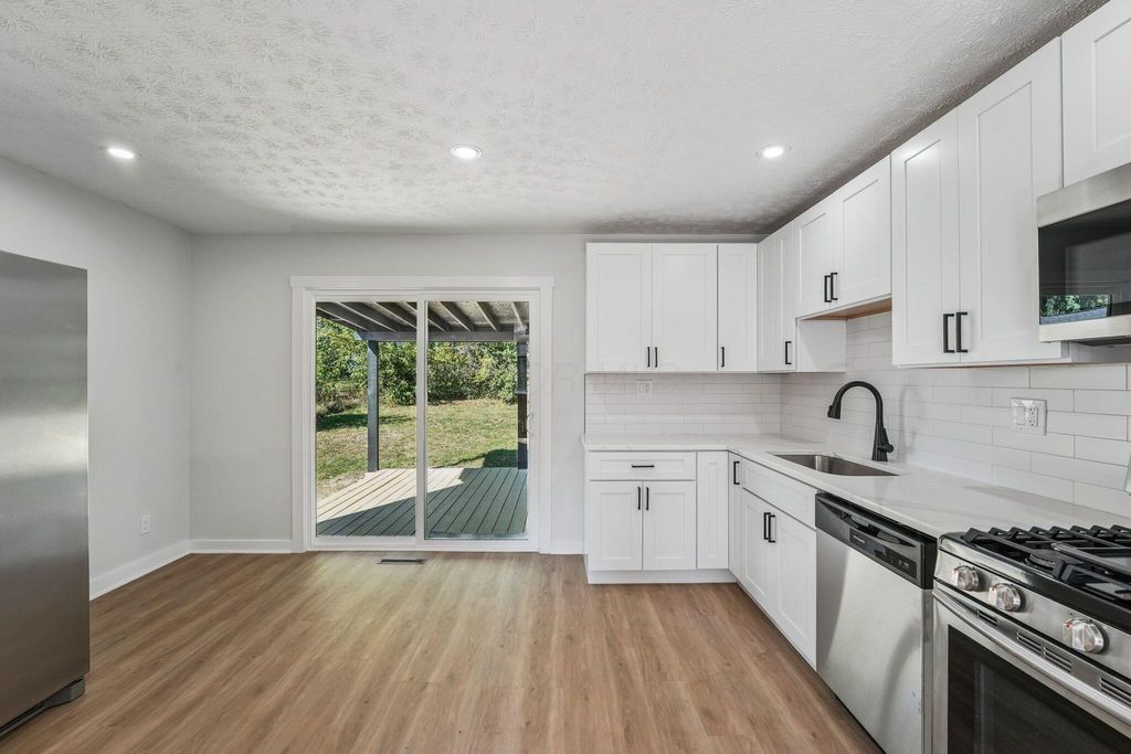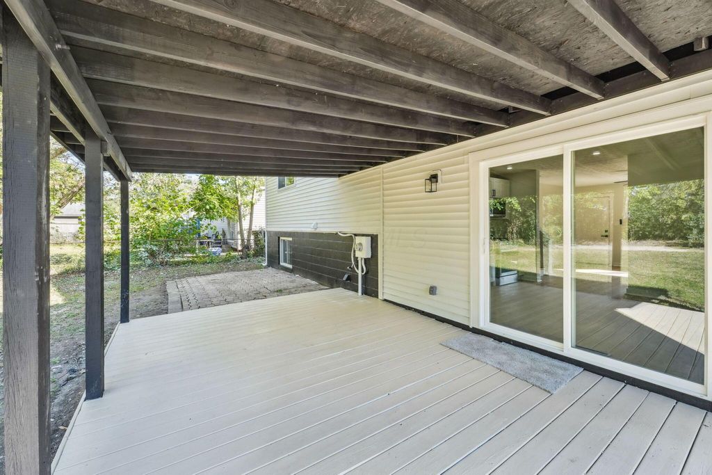 Meticulously renovated and move-in ready, this home features stylish floors and modern lighting throughout. The kitchen shines with quartz countertops, elegant new cabinets, and premium stainless steel appliances. Both bathrooms are fully updated with chic vanities and contemporary tiling. Extra living space on the lower level is perfect for family, entertaining, or a large home office. Step out to a covered deck for relaxing or gatherings. Conveniently located just minutes from Easton, Columbus' premier center for shopping, dining, and entertainment, as well as Metro Parks and Columbus Municipal Golf Course. This home offers everything in an unbeatable location!