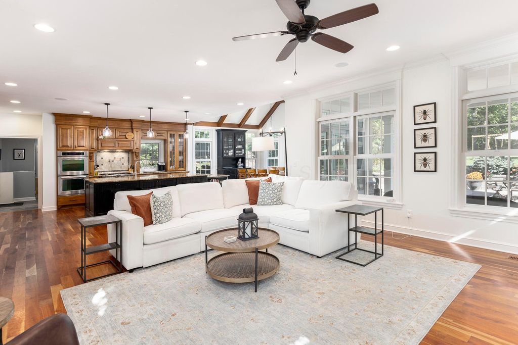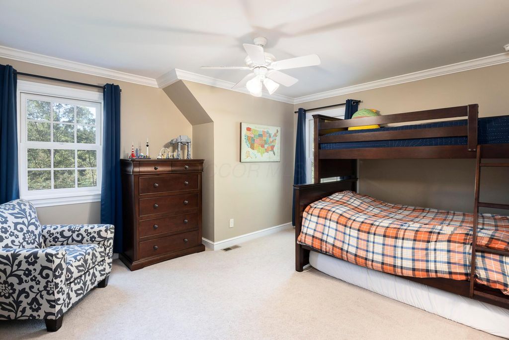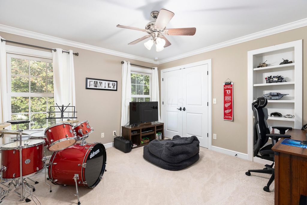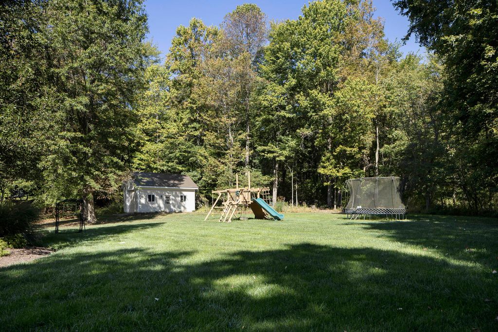 Tucked away in the picturesque Rose View neighborhood, this Granville home sits on a serene 2-acre lot backing to 40 acres of protected nature preserve with scenic walking trails. Just minutes from downtown Granville, schools, and commuter routes, it offers privacy, natural beauty, and convenience. Designed for everyday living and effortless entertaining, the outdoor space is a true highlight. Enjoy the covered patio, fire pit, and expansive yard overlooking the wooded reserve. A shed with a garage door provides extra storage, and a generator ensures year-round peace of mind. Inside, the open-concept layout features a spacious living area, kitchen with large center island, and bright dining space flowing seamlessly for casual or formal gatherings. A private office and oversized mudroom add function and flexibility. Upstairs includes three bedrooms, featuring a generous owner's suite with dual closets, soaking tub, and walk-in shower, plus a versatile flex room that can serve as a bedroom, home office, or playroom. The finished basement adds versatility with a bedroom, full bath, bar, and dedicated exercise room. An oversized 3-car garage completes the home with ample space for vehicles, storage, and projects.