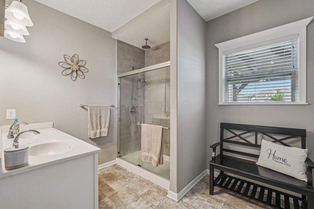Nearly New 4BR/3BA Ranch with Upgrades Galore! This beautifully designed one-story home features a spacious and modern floor plan loaded with all the extras.The stunning chef's kitchen boasts quartz countertops, a large island with seating, soft-close drawers, gas cooktop, and double oven"”perfect for entertaining. Enjoy the cozy great room with a stone fireplace and luxury vinyl plank flooring in main areas, including the primary suite. Large dining area. Accessibility features include 36' interior doors and wide hallways. Bullnose corners and framed windows add elegant touches throughout. The 10x12 sunroom overlooks a fenced backyard complete with a 16x10 shed, custom paver patio, and pergola. Enjoy sunsets from the front porch or travel on the path across the street to get to downtown GC! Huge Finished lower level includes a full bath, wet bar, and egress window, offering great space for guests or recreation. Oversized 2.5 car garage with bump-out for extra storage. This home is move-in ready and better than new!