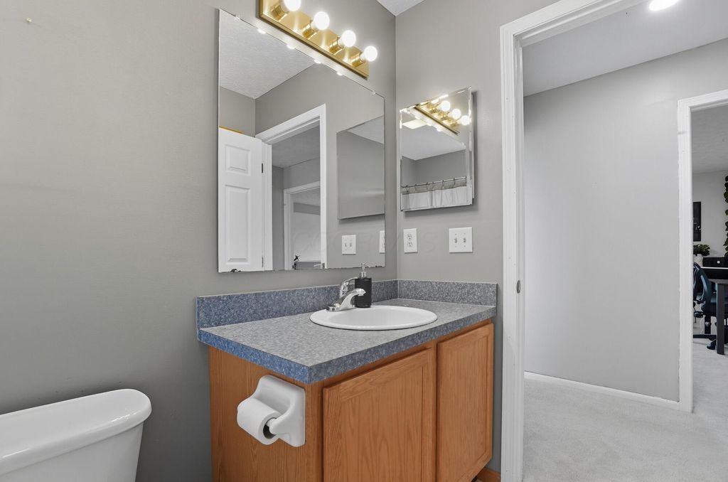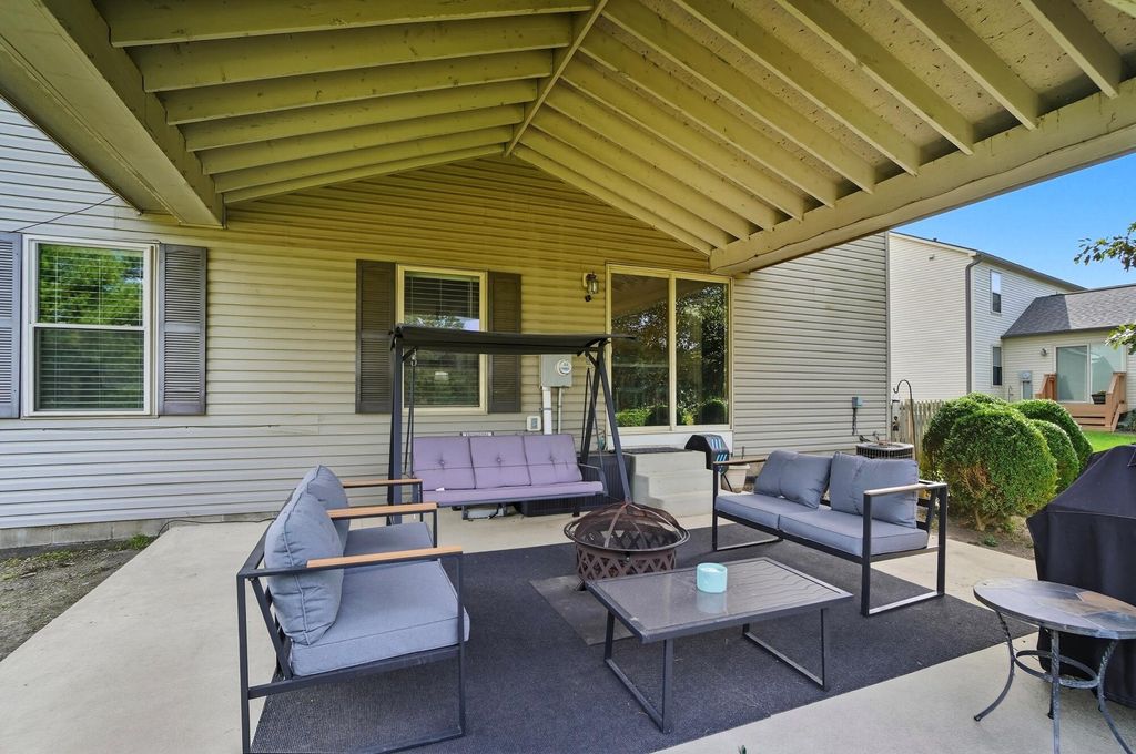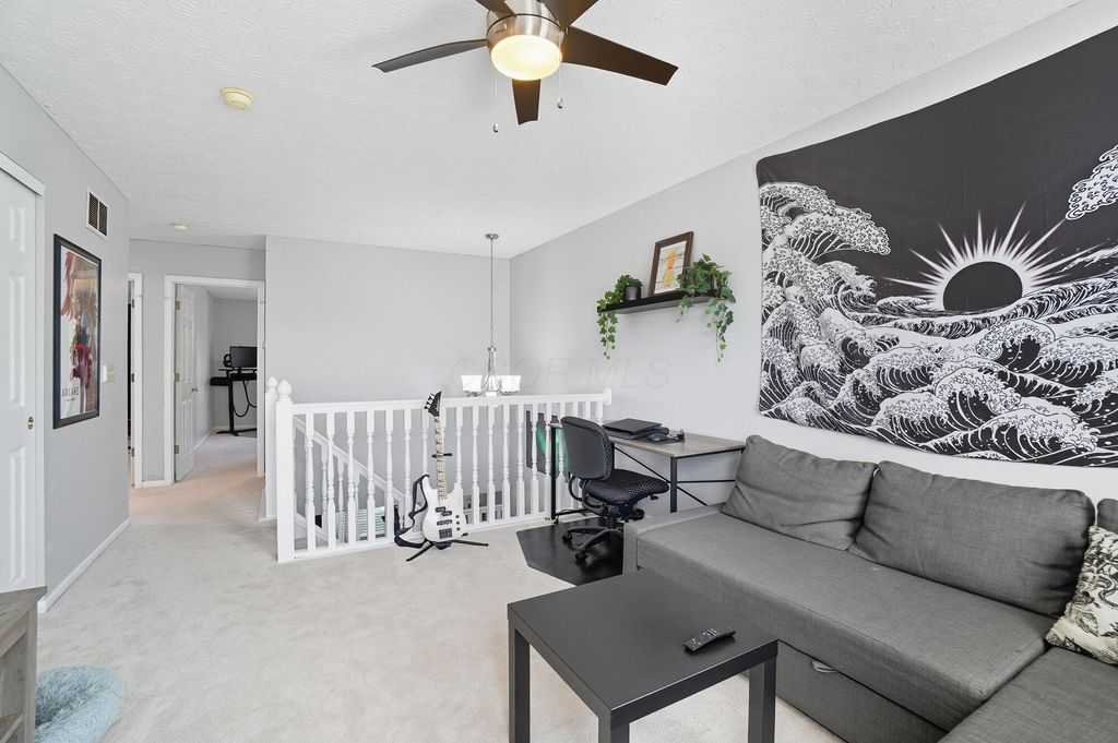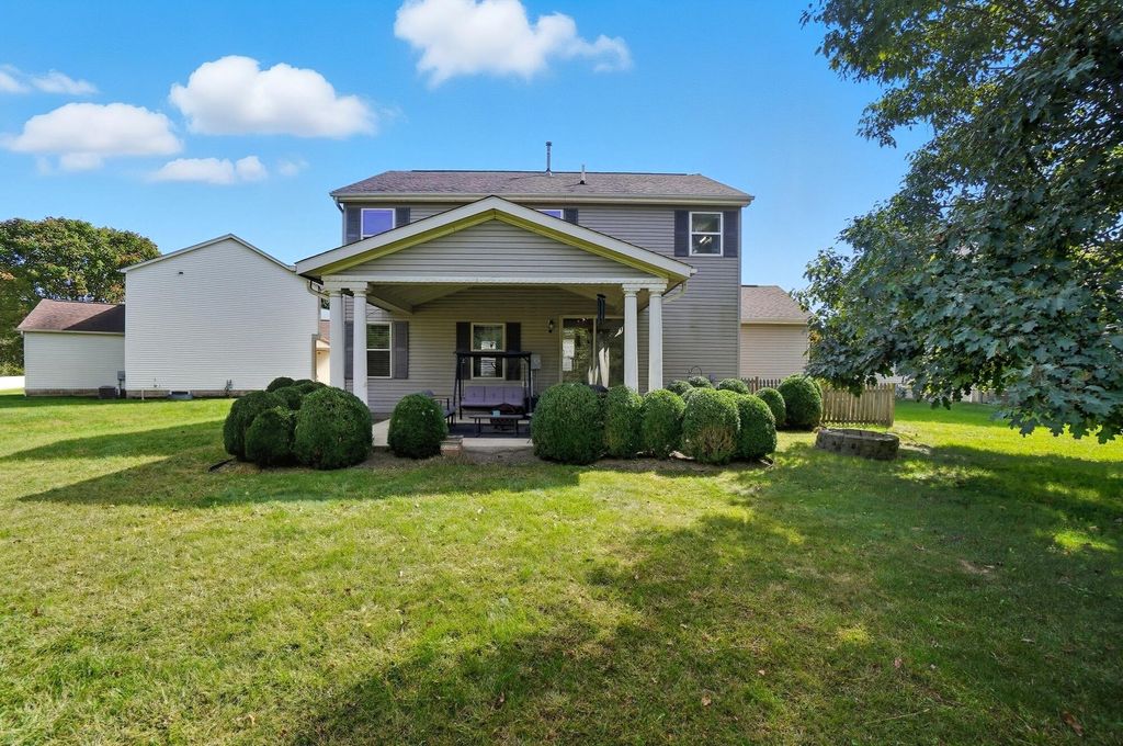 Beautifully updated 3-bedroom, 2.5-bath home in the desirable Heritage Ponds subdivision. This property features an open-concept main level, spacious family and dining areas, and an eat-in kitchen with plenty of natural light. Upstairs offers three large bedrooms plus a versatile loft. The finished basement with bar, styled in Circleville Tiger colors, creates the perfect space for entertaining. Recent improvements include: newly insulated attic with TAP pest-control insulation (R-49, lifetime transferable warranty), brand-new premium carpet, six-panel white doors, ceiling fans in living areas and primary suite, recessed lighting, fresh paint throughout, updated fixtures, new water softener, reverse osmosis tap, germicidal bulb in HVAC for air purification, and a new dishwasher. Enjoy outdoor living on the covered porch overlooking the pond, complete with two firepits. Additional highlights include a two-car garage, central air, and a cul-de-sac location. Conveniently located within minutes of downtown Circleville and the annual Circleville Pumpkin Show. Come in and fall in love with Pecan Place.