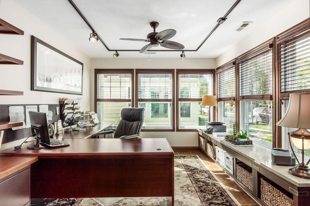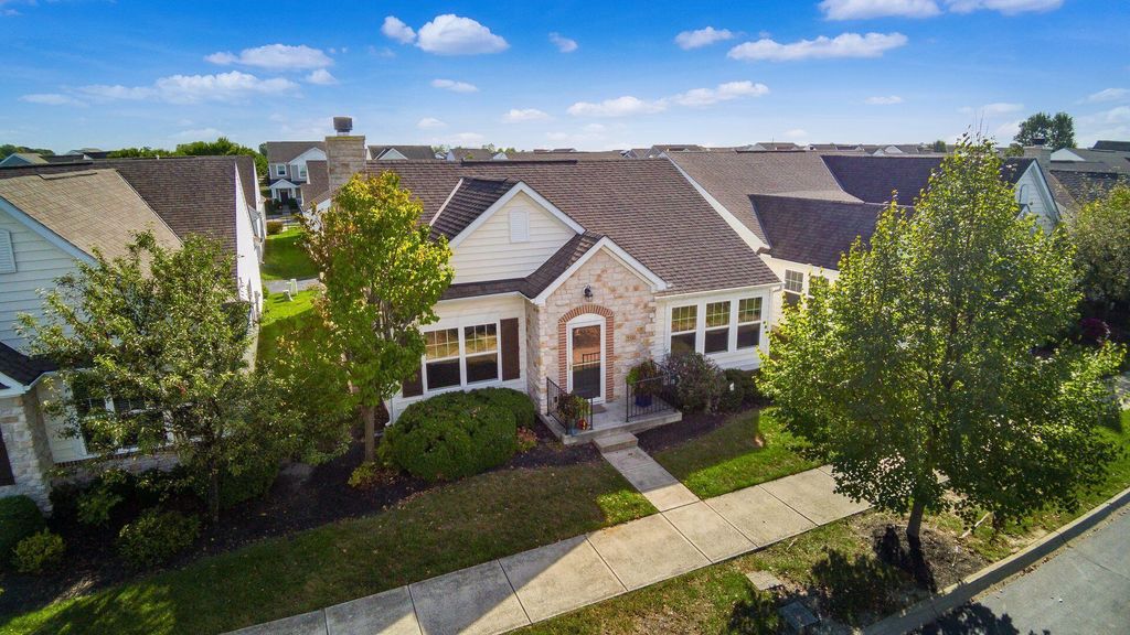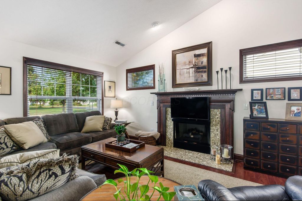 IMPRESSIVE! Immaculate, stylish, and move-in ready! This free-standing condo offers the perfect blend of open living and low-maintenance lifestyle in the sought-after Grand Reserve community. Step inside to an inviting kitchen featuring generous granite counters, abundant cabinetry with under-cabinet lighting, pantry, and stainless steel appliances"”including a new microwave and disposal (2024). The kitchen seamlessly overlooks the dining area and spacious great room, where a cozy gas fireplace with a handsome mantel and engineered plank floors set the stage for comfortable living and entertaining. A bright four-season room with tile flooring and walls of windows is ideal as a sunroom or home office. The utility room adds convenience with 42'' cabinets for extra storage. The primary suite is a retreat with vaulted ceilings, walk-in closet, and private bath boasting a double vanity and oversized shower. The second bedroom also features a walk-in closet. Both closets are enhanced with Closets By Design custom organizers. Thoughtful upgrades include engineered wood flooring, solid wood doors, granite counters in both baths, ceramic tile floors, plantation wood blinds, and larger baseboards. The extra-deep garage is a dream with five custom 3'x74'' storage cabinets. New HVAC in 2024 (Lennox system with WiFi programmable thermostat) ensures efficiency and comfort. Enjoy the best of community living with your private pool and clubhouse (exclusive to the 56 Grand Reserve homes), plus access to an additional pool, clubhouse, walking paths, and more"”all in a fantastic Dublin location!