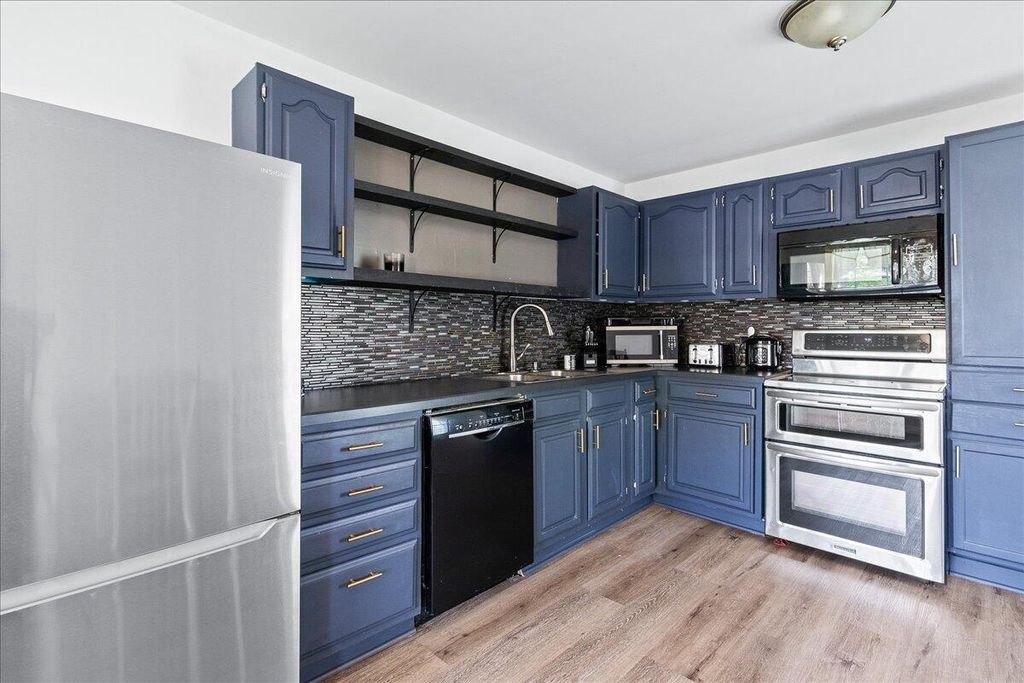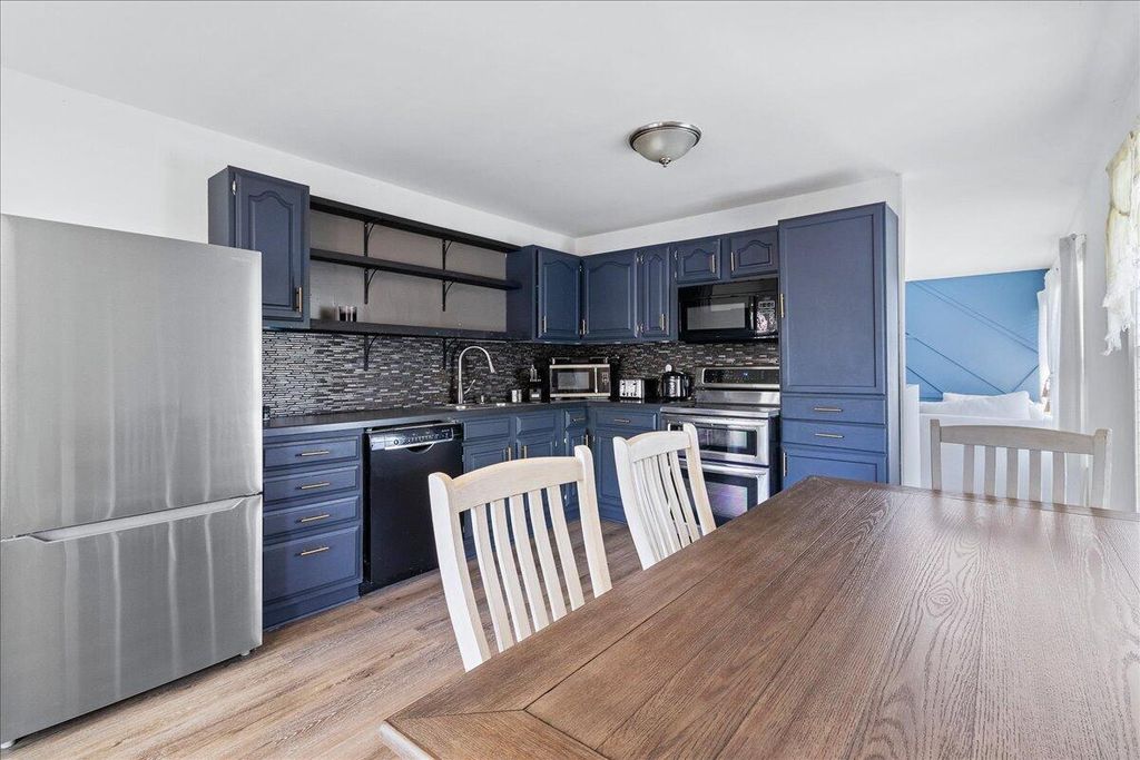 Move in ready two level on a .55 acre lot with mature trees! Main level offers a bright living room, updated kitchen with LVP flooring, three bedrooms, and two full baths. The walkout lower level adds a family room, 4th bedroom, laundry, and access to the oversized 2-car garage with workbench. Enjoy a spacious patio, plenty of parking, and a private wooded backdrop.