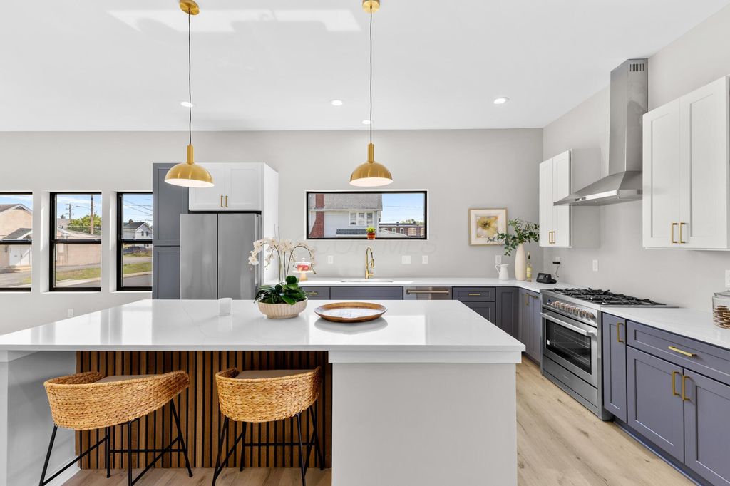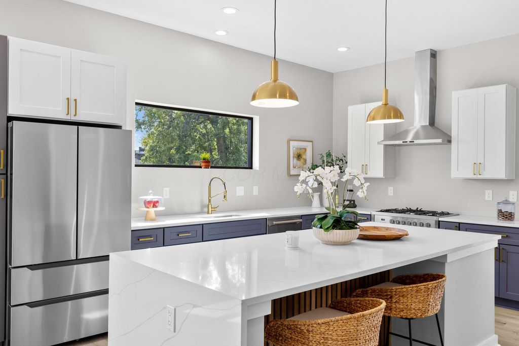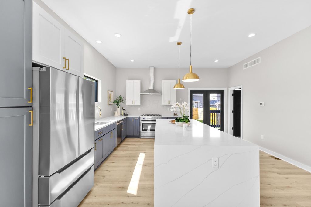 STUNNING CUSTOM NEW BUILD OFFERING MODERN LUXURY AND EXCEPTIONAL DESIGN! THIS LIGHT-FILLED HOME FEATURES AN EXPANSIVE OPEN FLOOR PLAN WITH SOARING CEILINGS AND DESIGNER FINISHES THROUGHOUT. GOURMET KITCHEN SHOWCASES A LARGE WATERFALL MARBLE QUARTZ ISLAND, TWO-TONED CABINETRY, AND HIGH-END STAINLESS STEEL APPLIANCES INCLUDING RANGE, REFRIGERATOR, DISHWASHER, MICROWAVE, HOOD & WINE REFRIGERATOR. SPACIOUS OWNERS SUITE WITH VAULTED CEILINGS, LUXURIOUS SPA-LIKE BATHROOM, AND CUSTOM WALK-IN CLOSET. FINISHED LOWER LEVEL WITH WET BAR, WINE REFRIGERATOR, SUNKEN ENTERTAINMENT AREA PERFECT FOR HOSTING AND FOURTH BEDROOM. ENJOY A LARGE FENCED YARD, FRONT PORCH, 2-CAR GARAGE, AND 2ND-FLOOR LAUNDRY ROOM. WALKABLE TO LOCAL RESTAURANTS AND JUST MINUTES TO CHILDREN'S HOSPITAL AND DOWNTOWN COLUMBUS. *** 15-YEAR 100% TAX ABATEMENT *** A RARE OPPORTUNITY TO OWN THIS NEW CONSTRUCTION HOME IN SUCH A PRIME LOCATION!!!